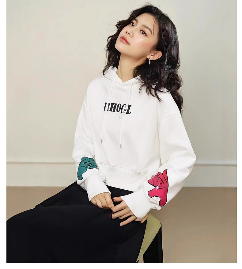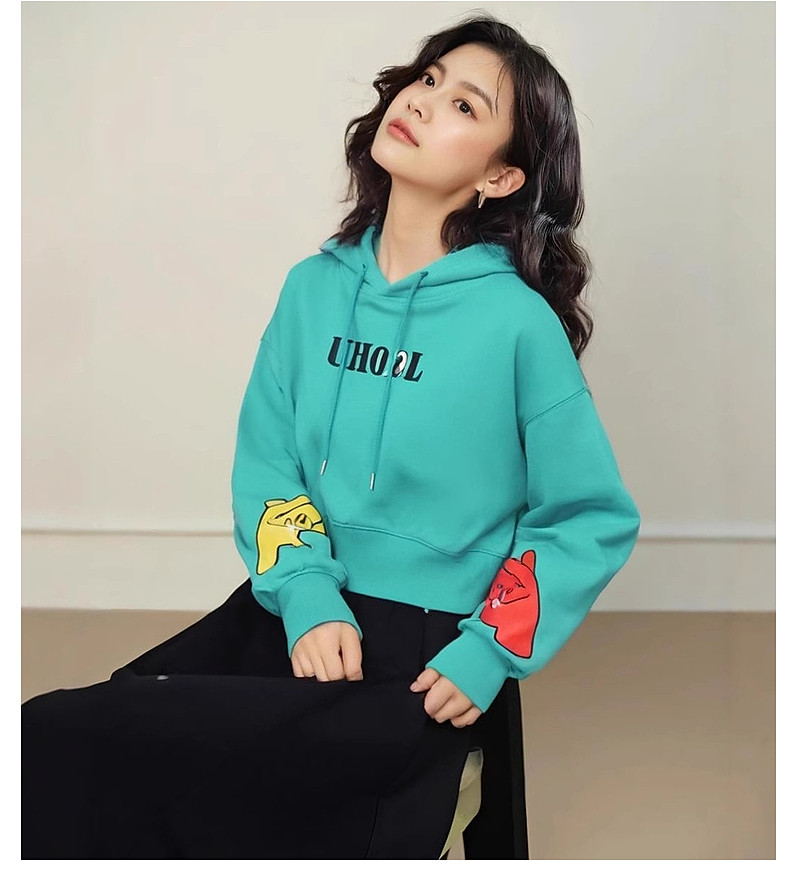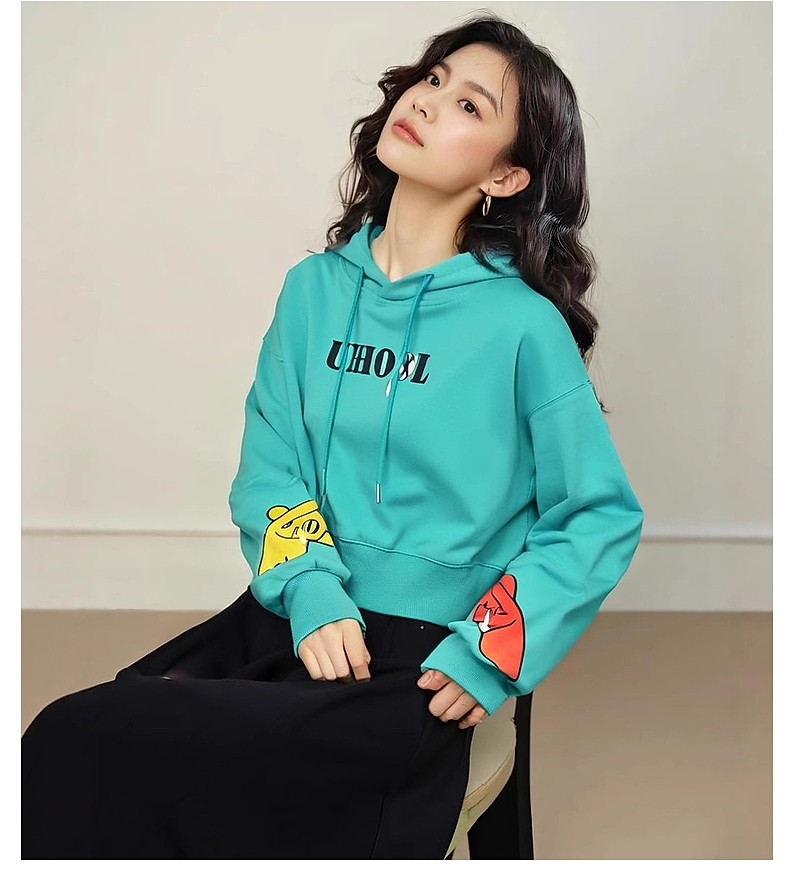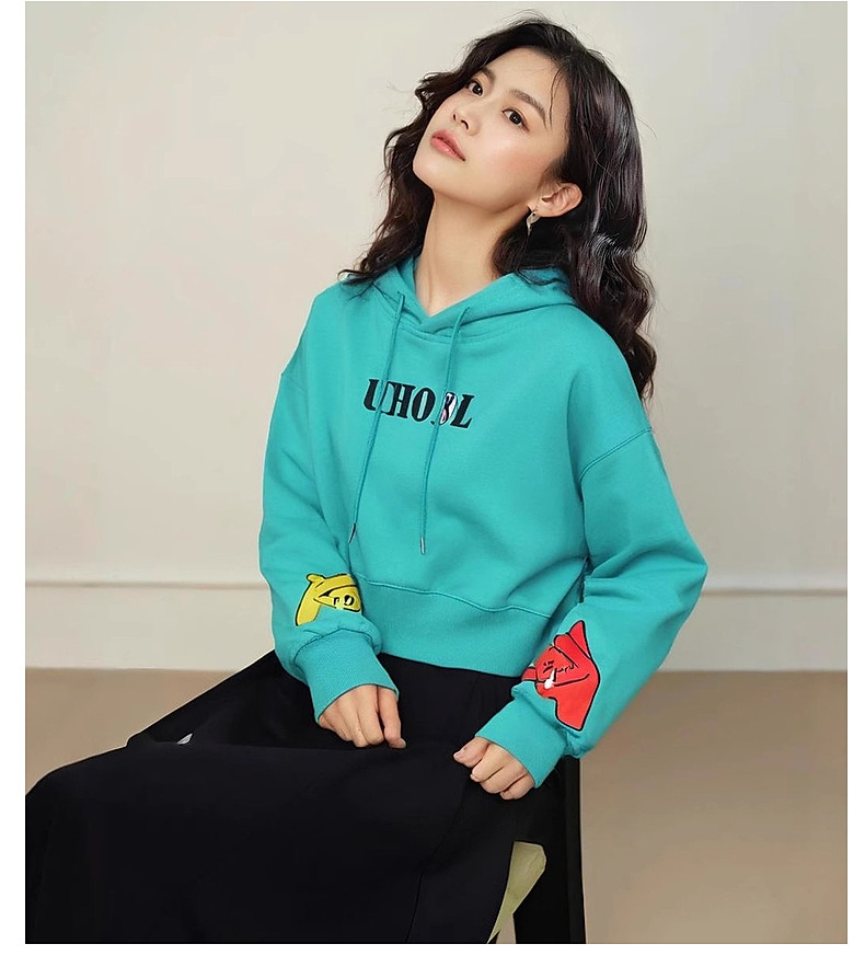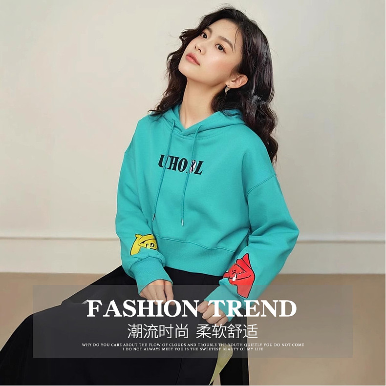 Lockeres, hoch tailliertes, kurzes Sweatshirt-Damen-Kapuzenoberteil 2025 Frühling und Herbst neue Mode, modische blaue Jacke für kleine Männer