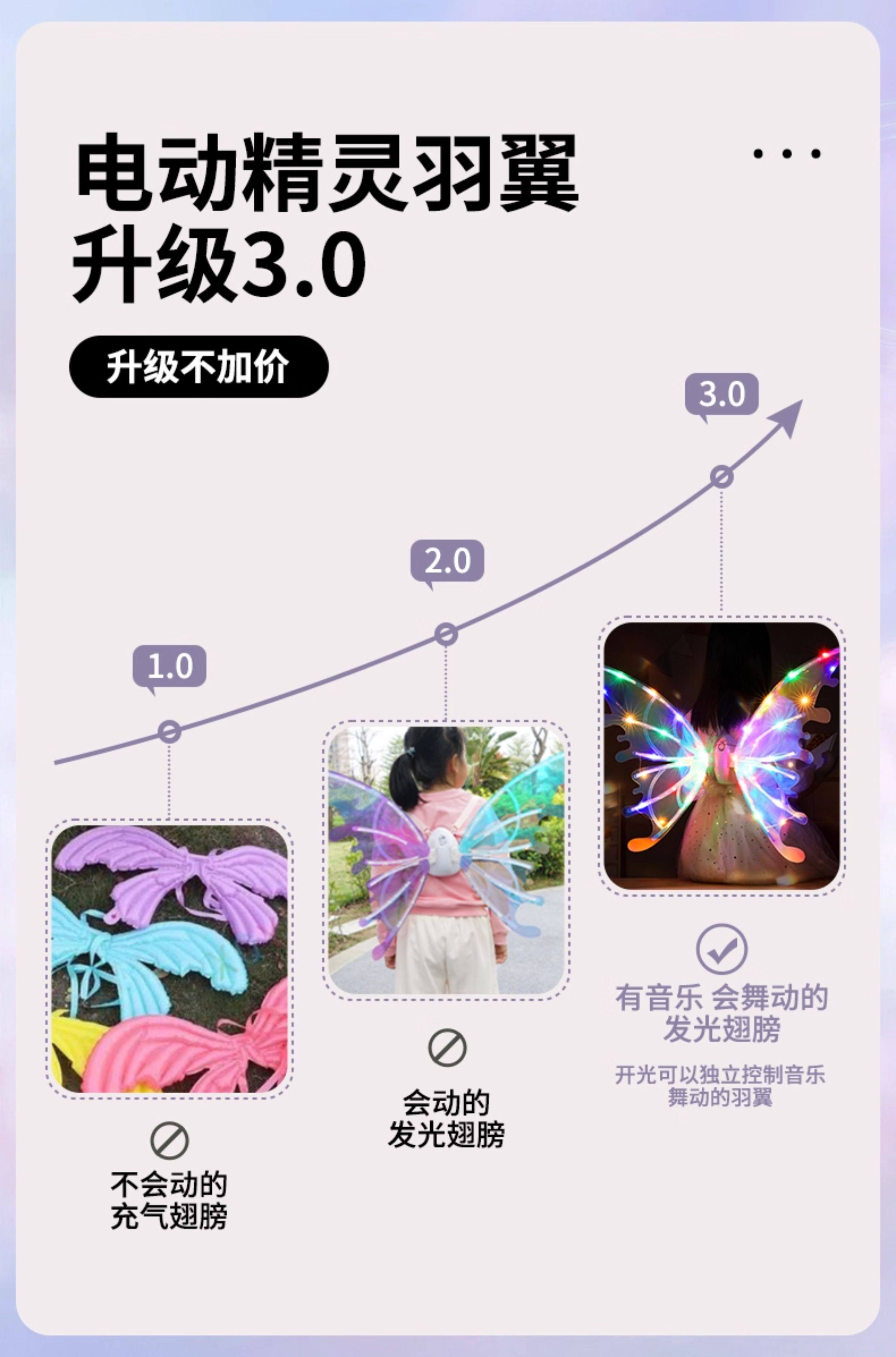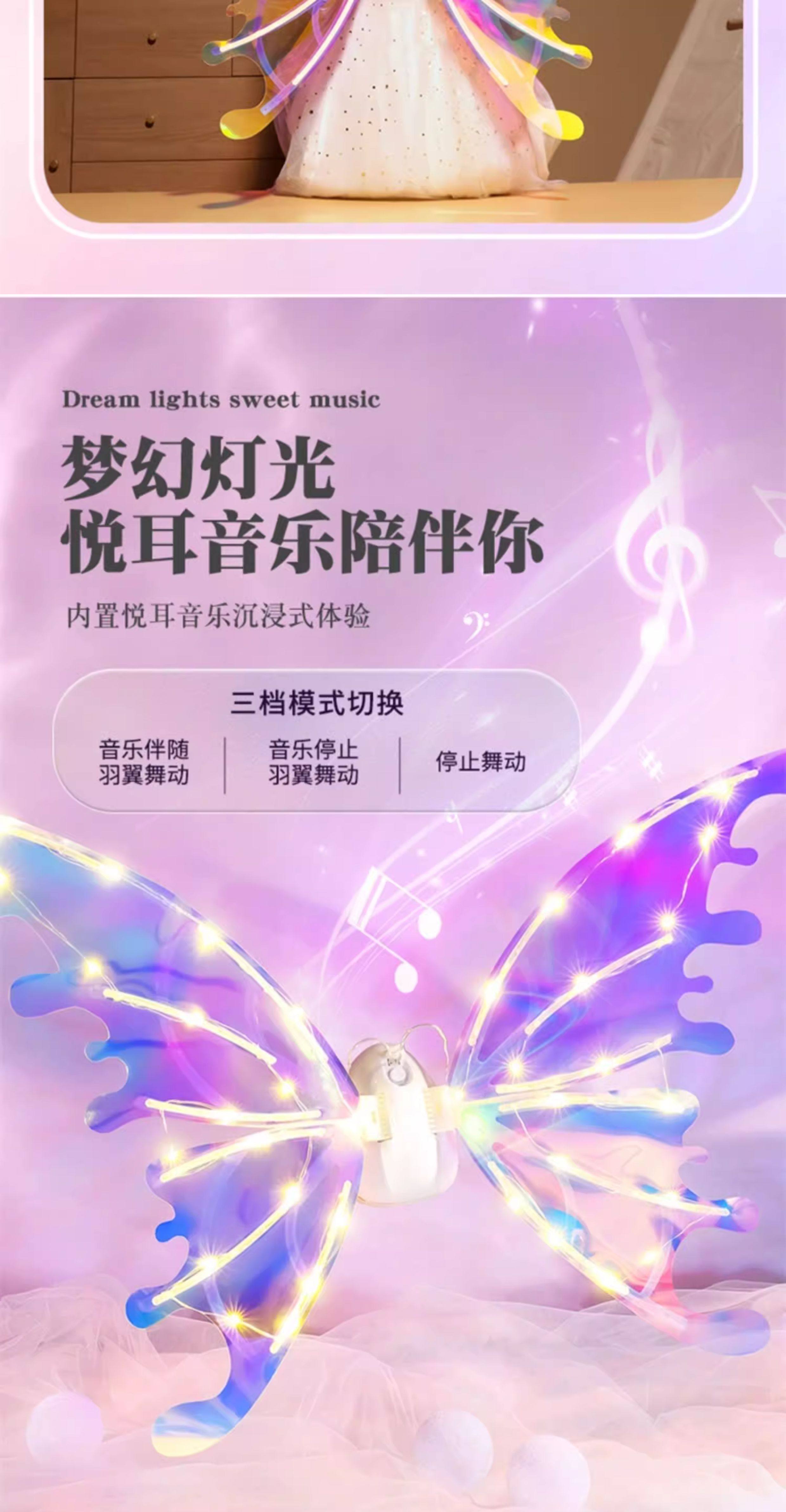 Color Classification Rechargeable Version[Warm Light Version]Glowing Electric Wings (Gift Box + Music and Lighting + Sound Effects Can Be Turned Off).,Rechargeable Version[Warm Light Version]Glowing Electric Wings (Gift Box) + Magic Wand + Crown.,Rechargeable Version[Lantern Version]Glowing Electric Wings (Gift Box + Music and Lighting + Sound Effects Can Be Turned Off).,Rechargeable Version[Lantern Version]Glowing Electric Wings (Gift Box) + Magic Wand + Crown