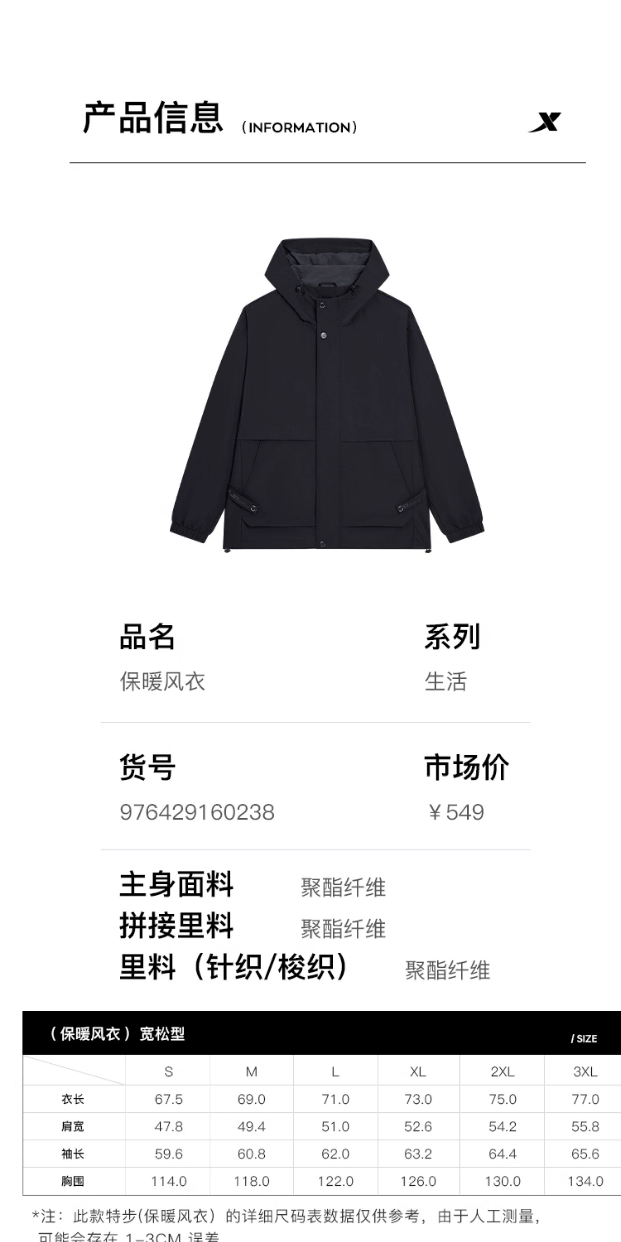特步未来构想梭织厚外套男2025春季新款运动夹克风衣976429160238