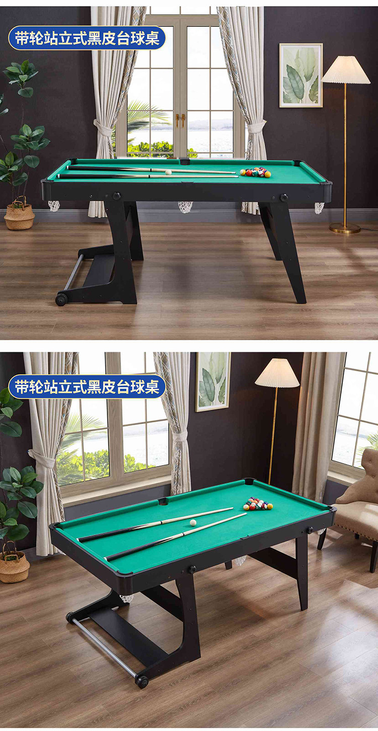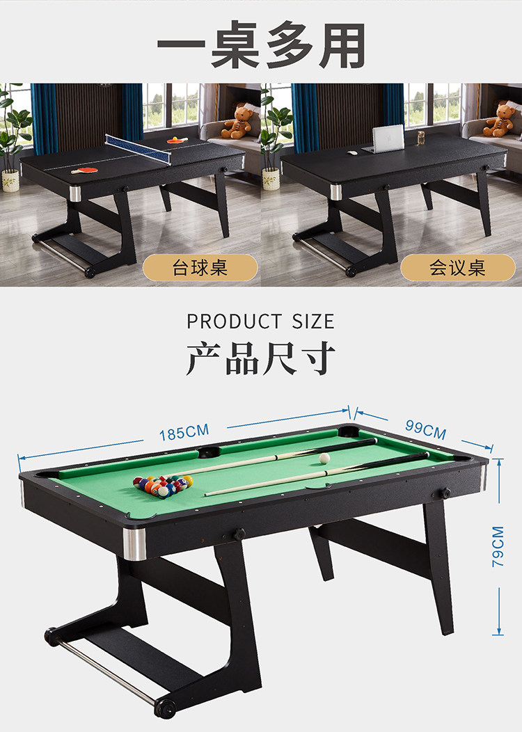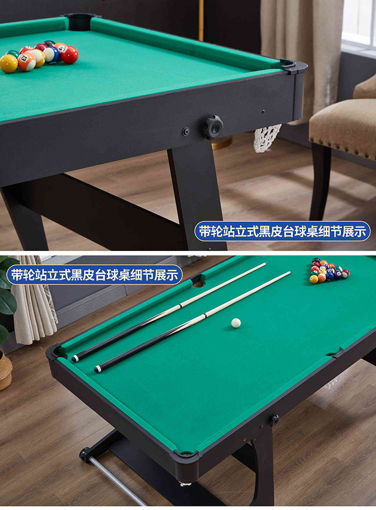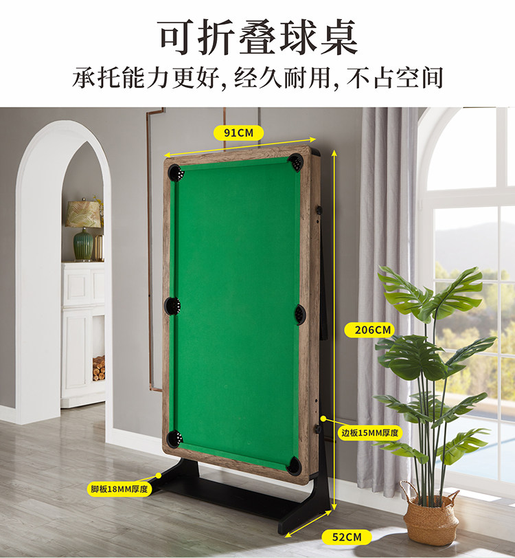 Zusammenklappbarer, multifunktionaler, kleiner Billardtisch für den Haushalt, für Studenten, Erwachsene, Innenkinder, schwarz, acht amerikanische Billardtische