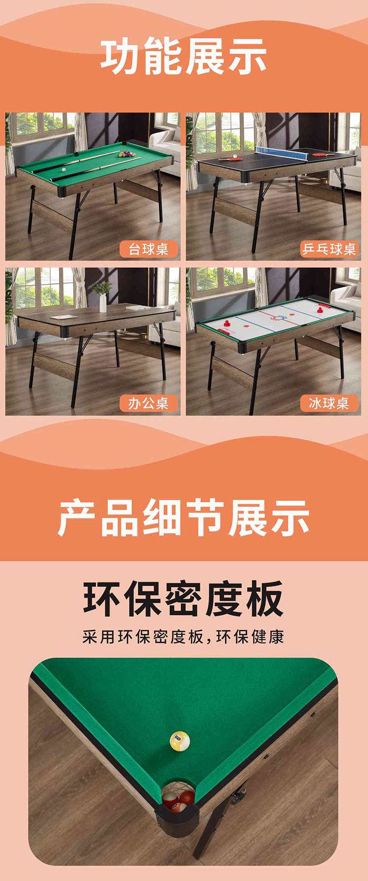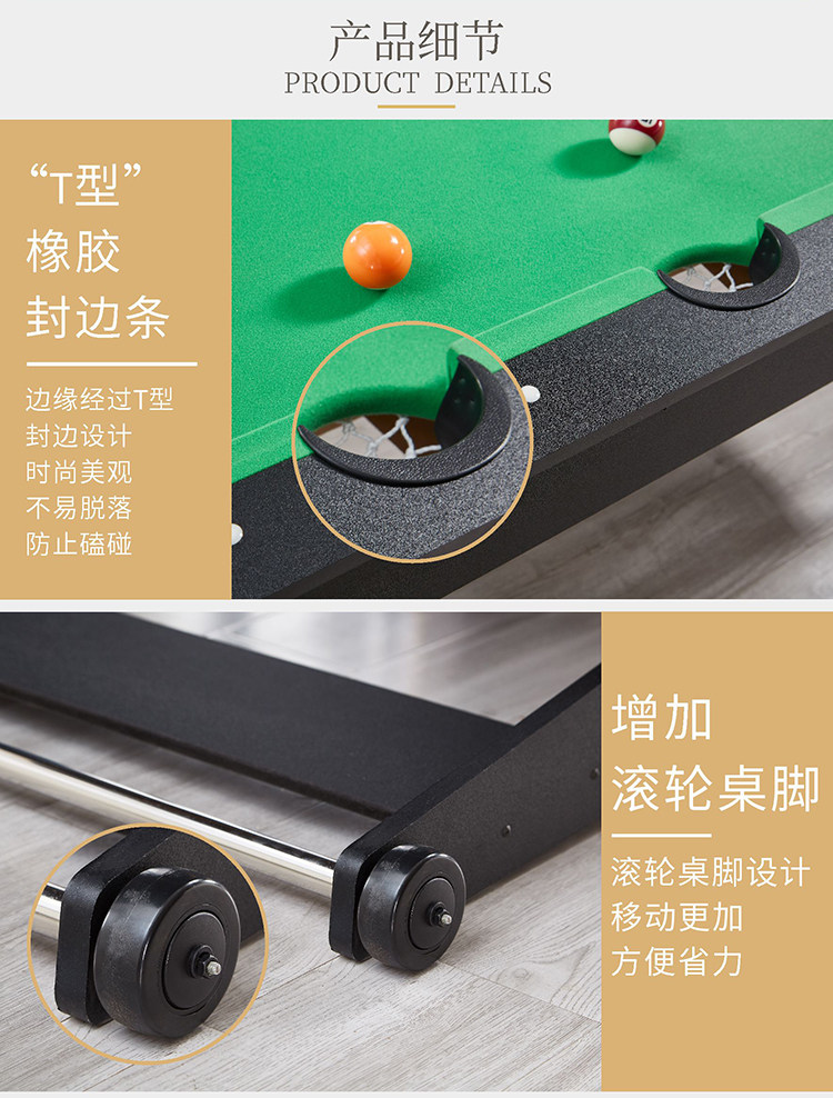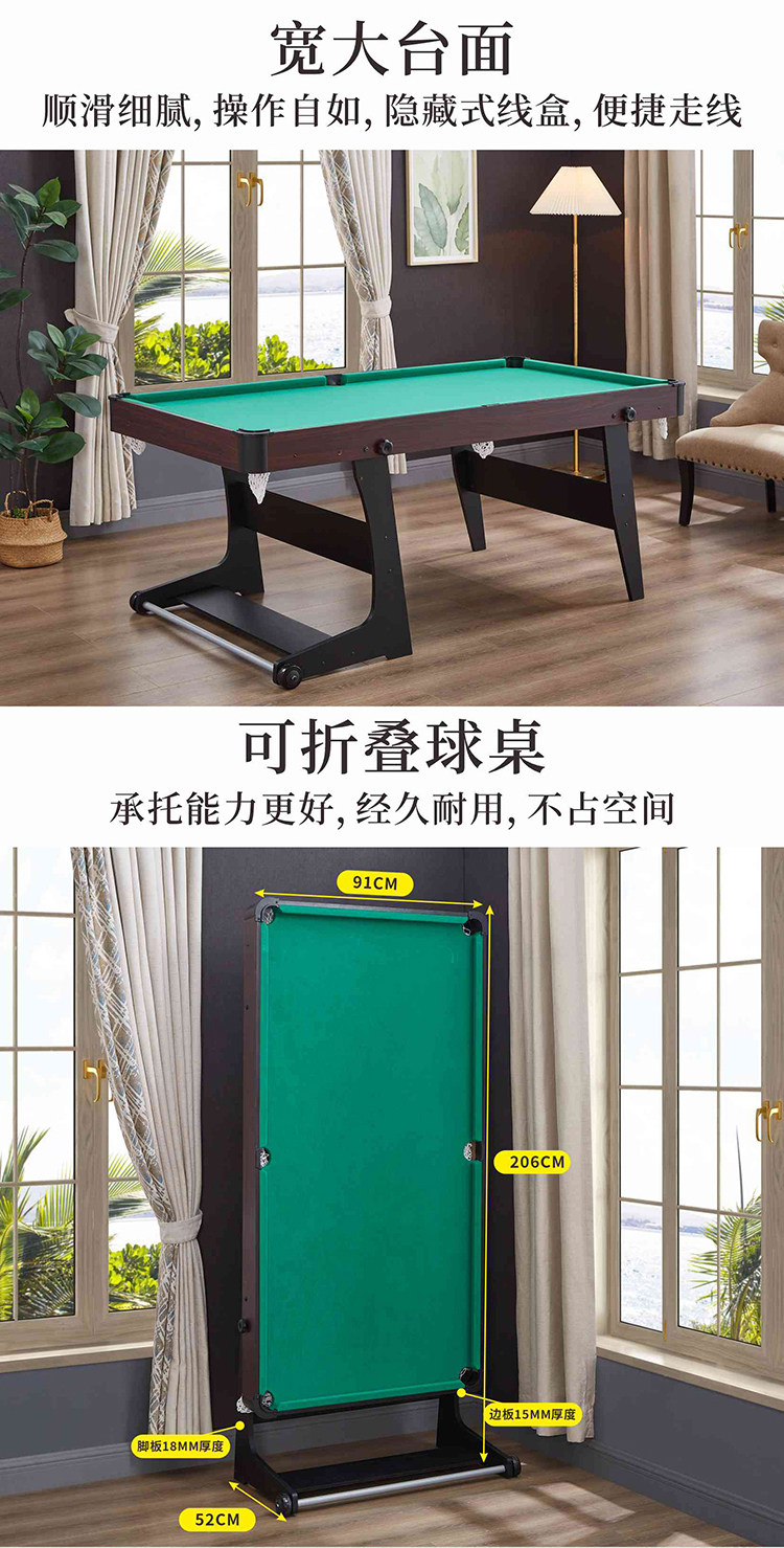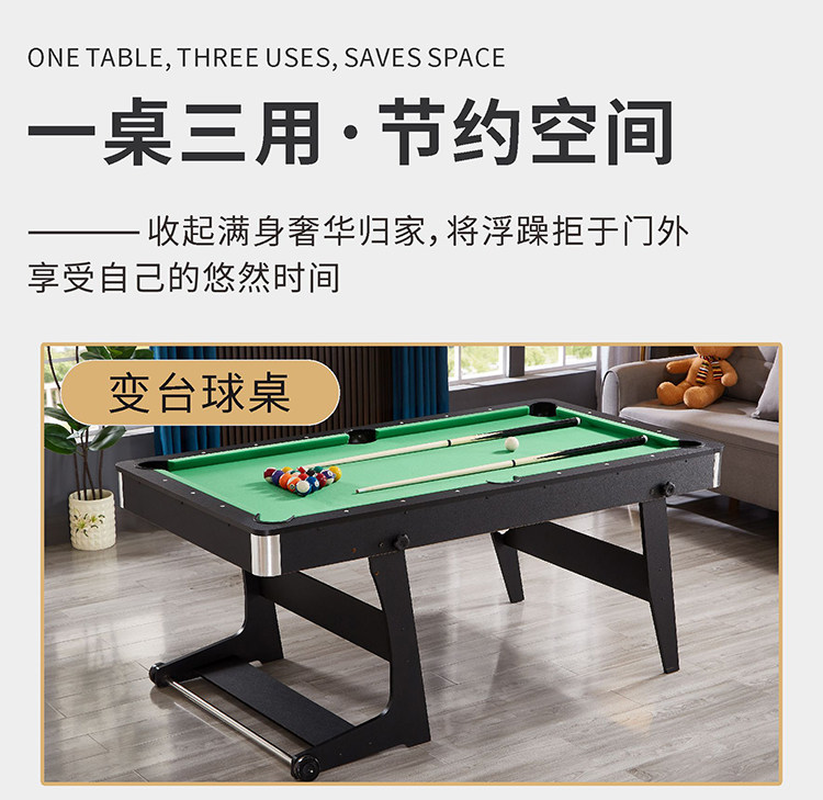 Zusammenklappbarer, multifunktionaler, kleiner Billardtisch für den Haushalt, für Studenten, Erwachsene, Innenkinder, schwarz, acht amerikanische Billardtische