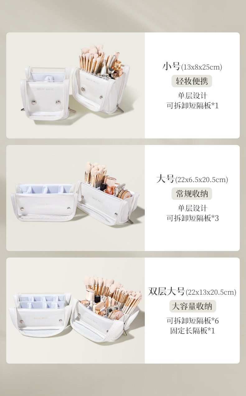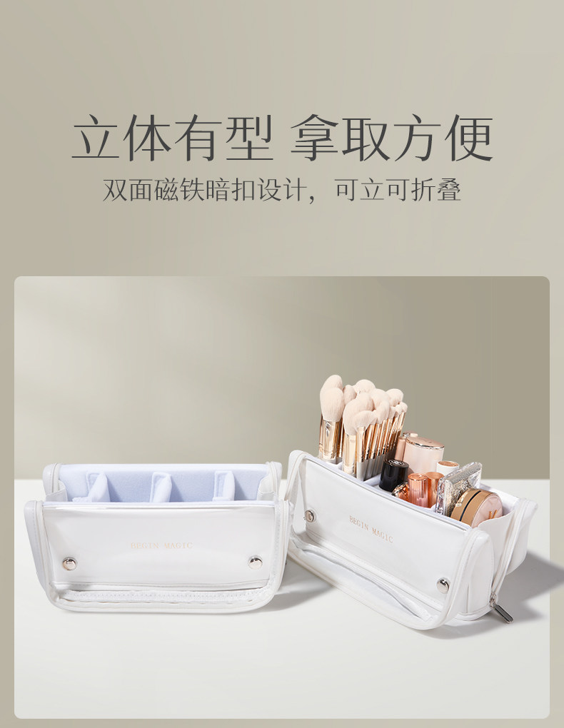 Сумка для хранения кистей для макияжа Beginmagic, большая вместимость, портативная, профессиональная, для путешествий, прозрачная, вертикальная, складная, KCZDB