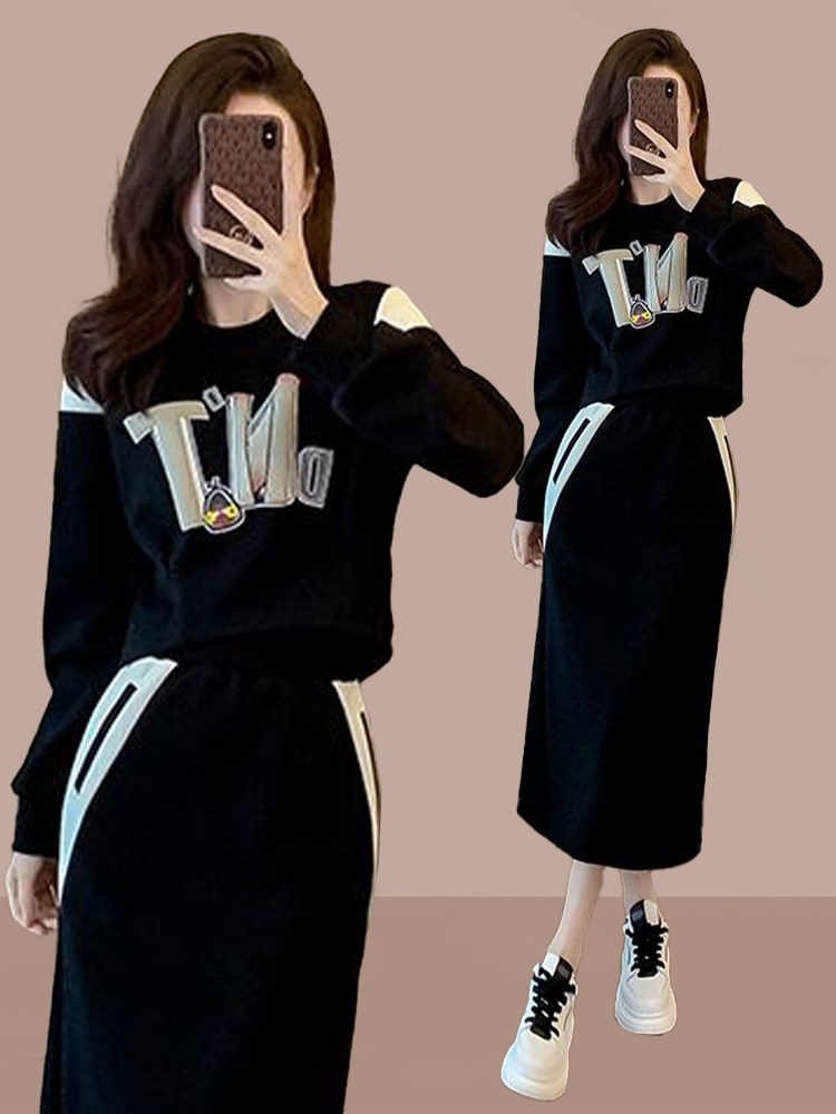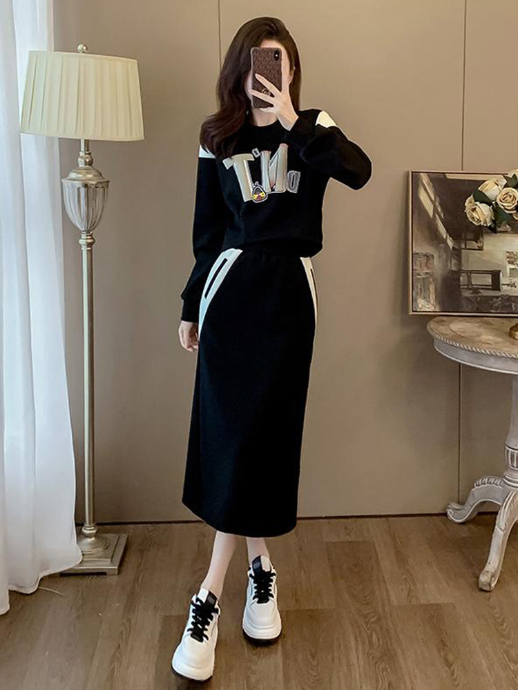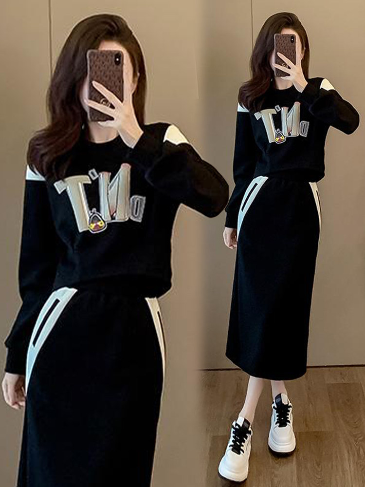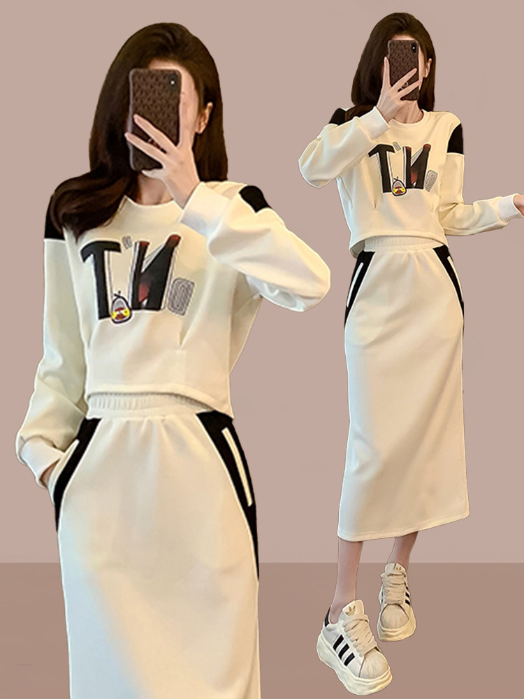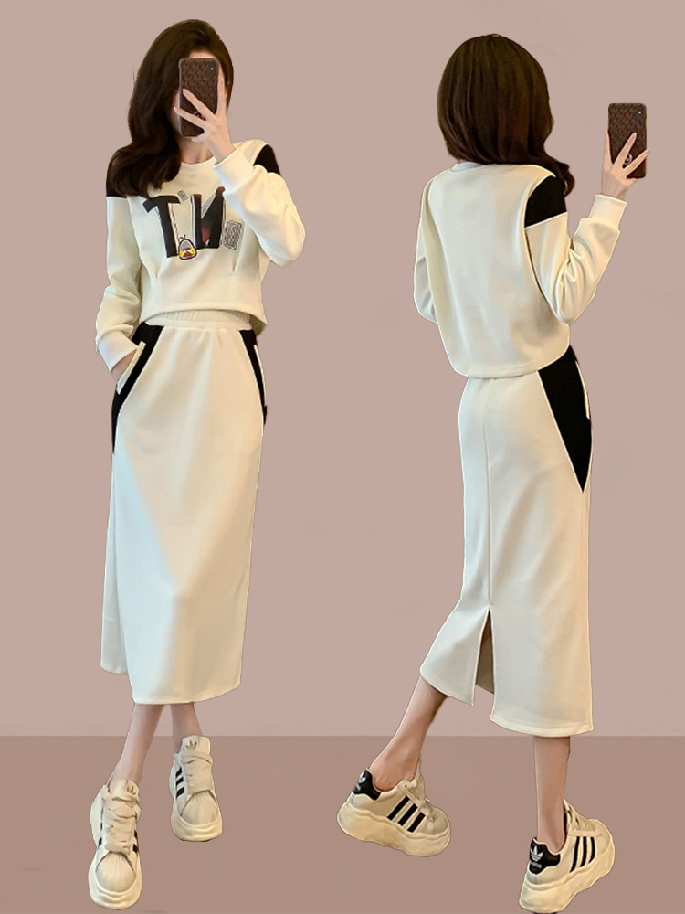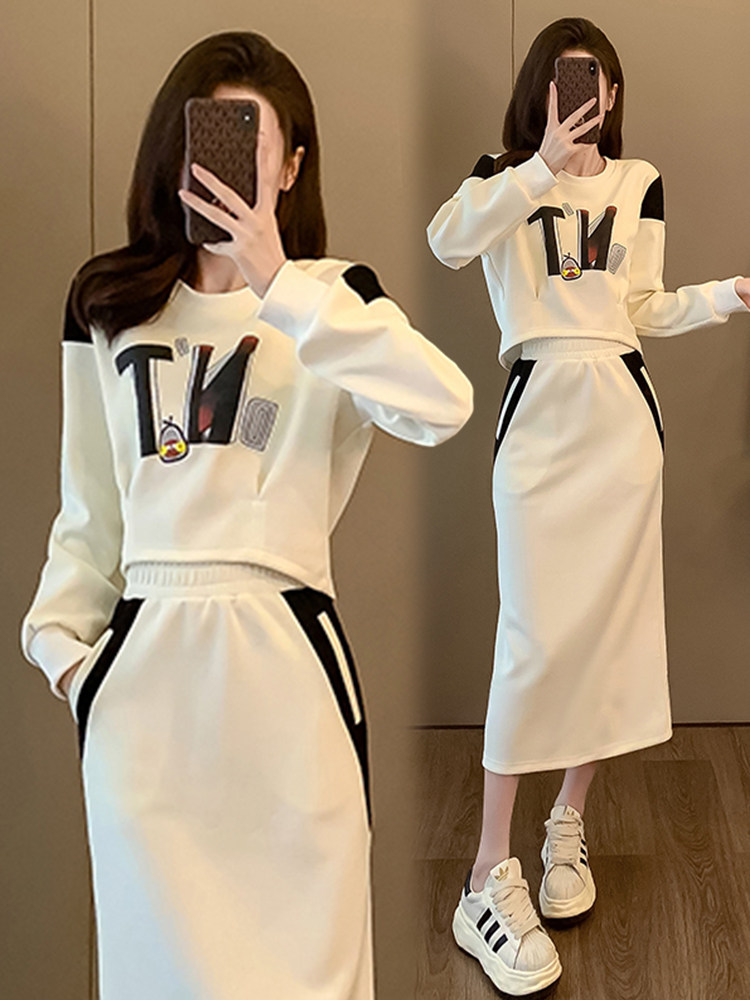 Two-Piece New Set, Popular Spring and Autumn Fashion, Korean Style Casual and Simple Women's Clothing, Skirt and Sweatshirt