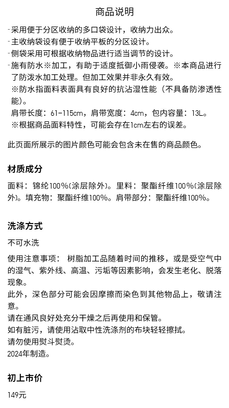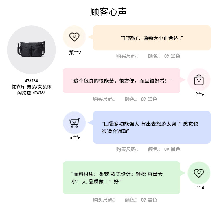 Uniqlo bolso de hombro casual para hombre y mujer bolso cruzado mochila repelente al agua correa para el hombro ajustable 476764