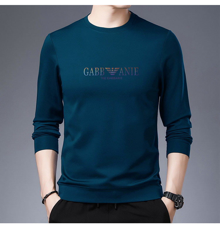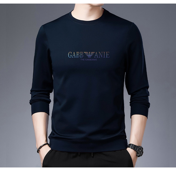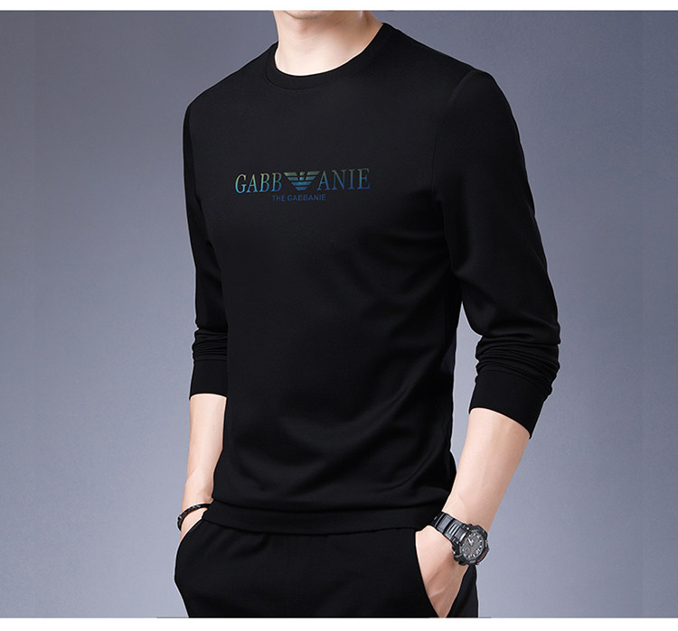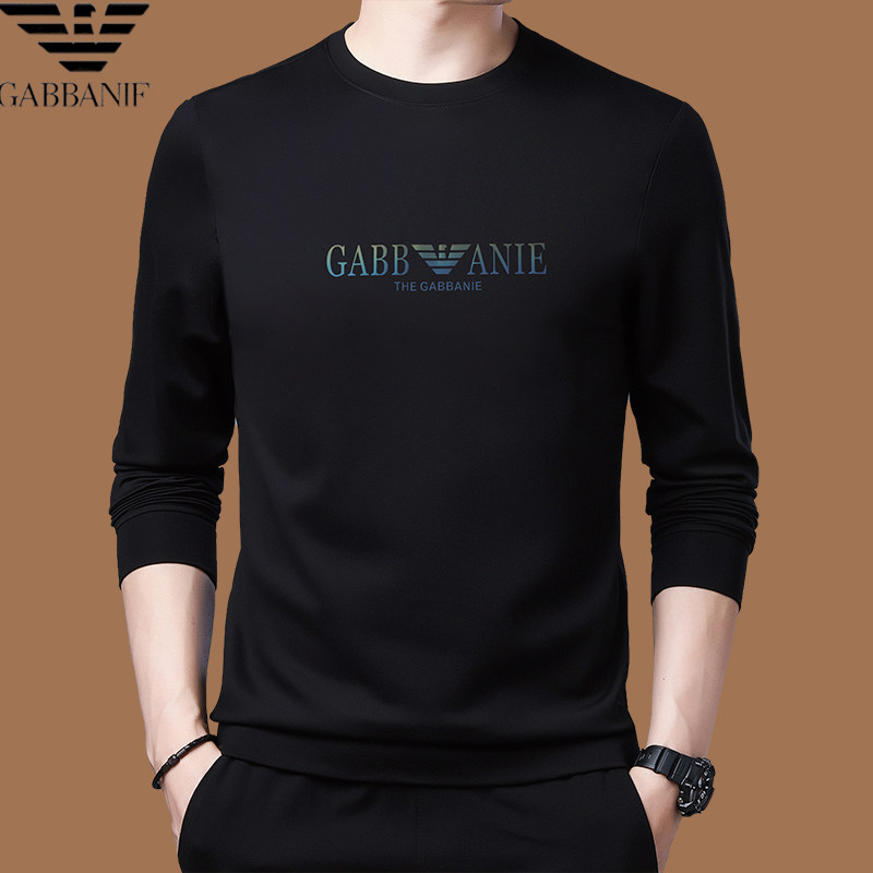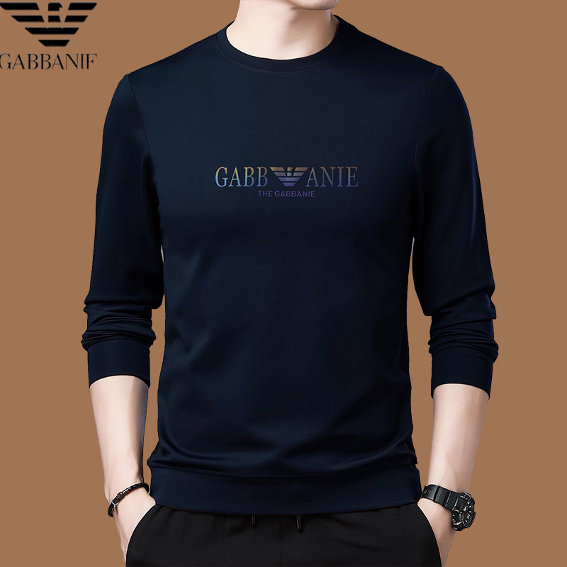 Italienisches internationales, bekanntes Herbst-Langarm-T-Shirt für Herren, lässiges Rundhals-Sweatshirt aus bedruckter Baumwolle mittleren Alters