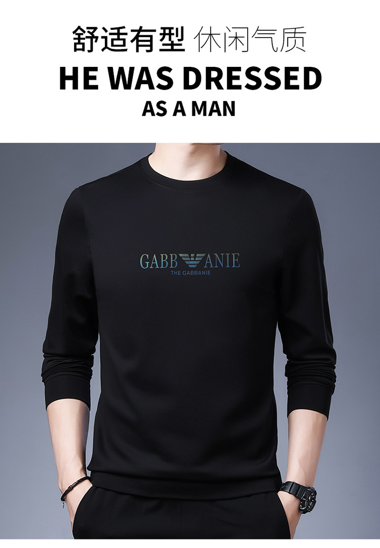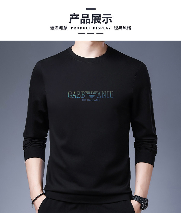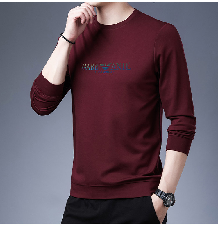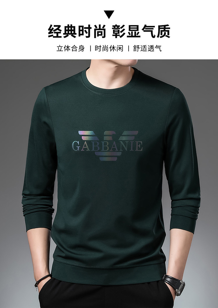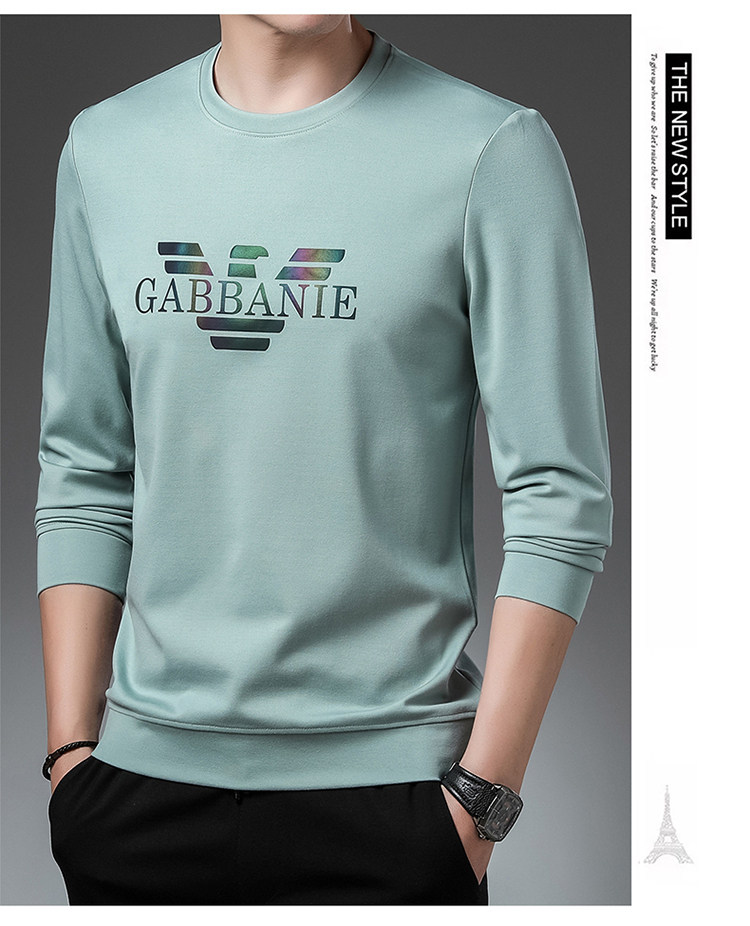 Italienisches internationales, bekanntes Herbst-Langarm-T-Shirt für Herren, lässiges Rundhals-Sweatshirt aus bedruckter Baumwolle mittleren Alters