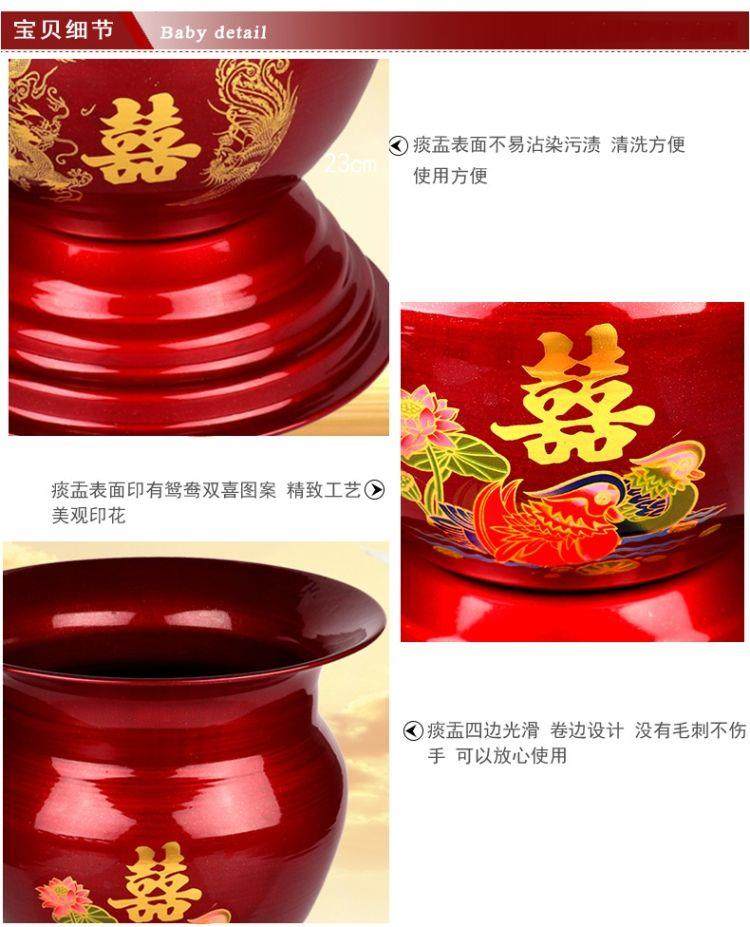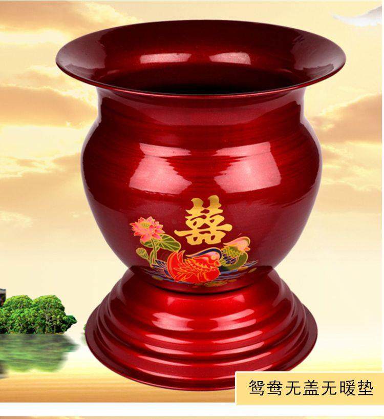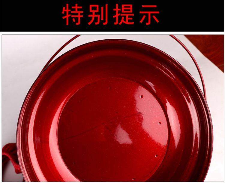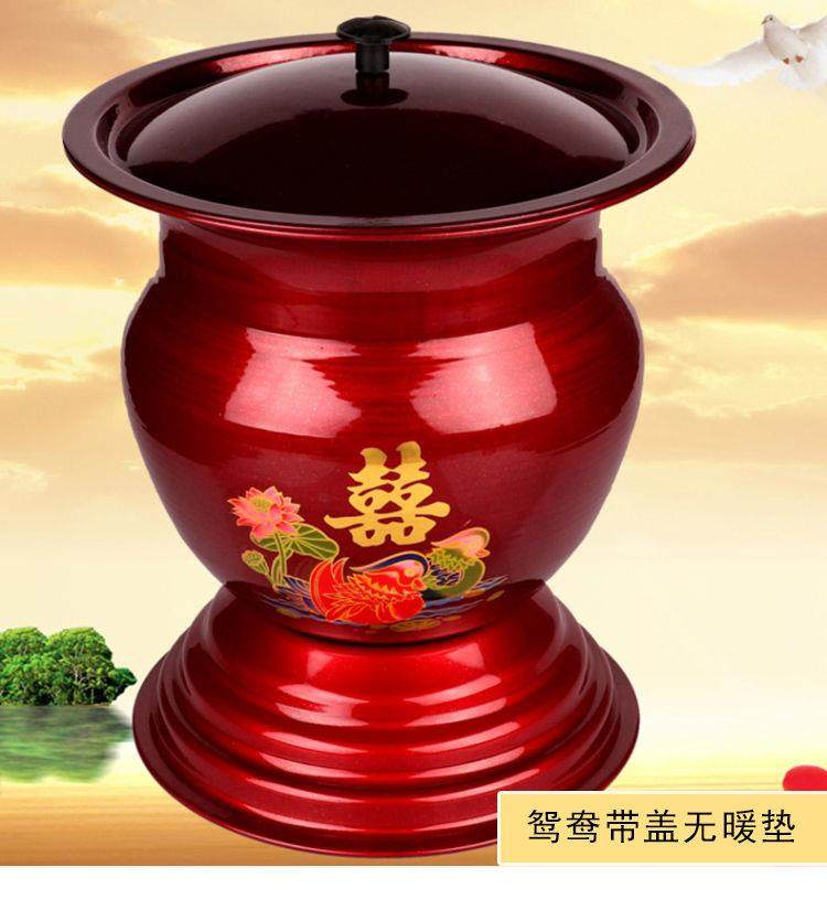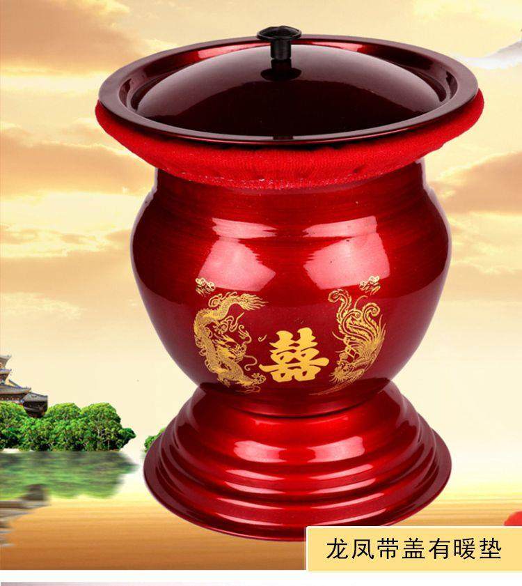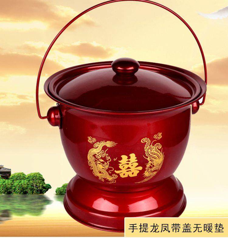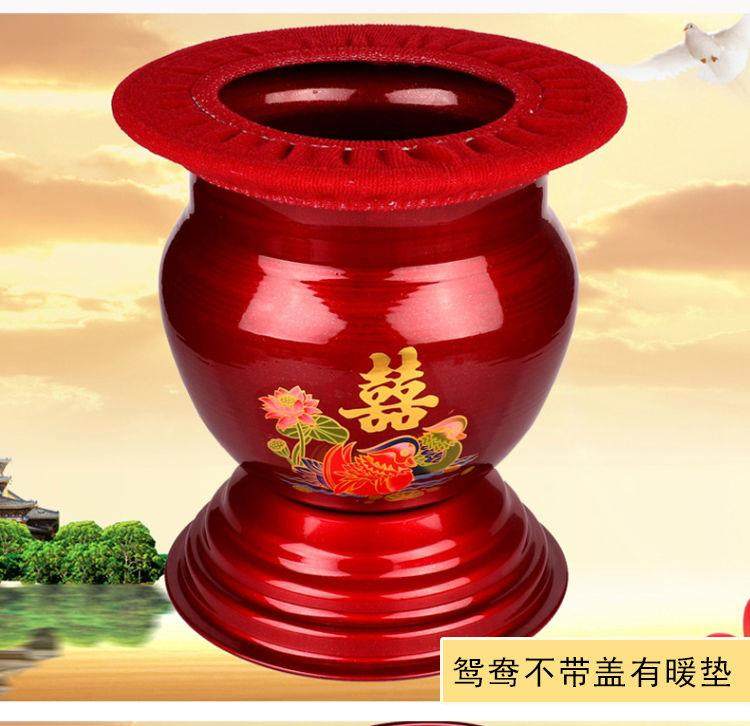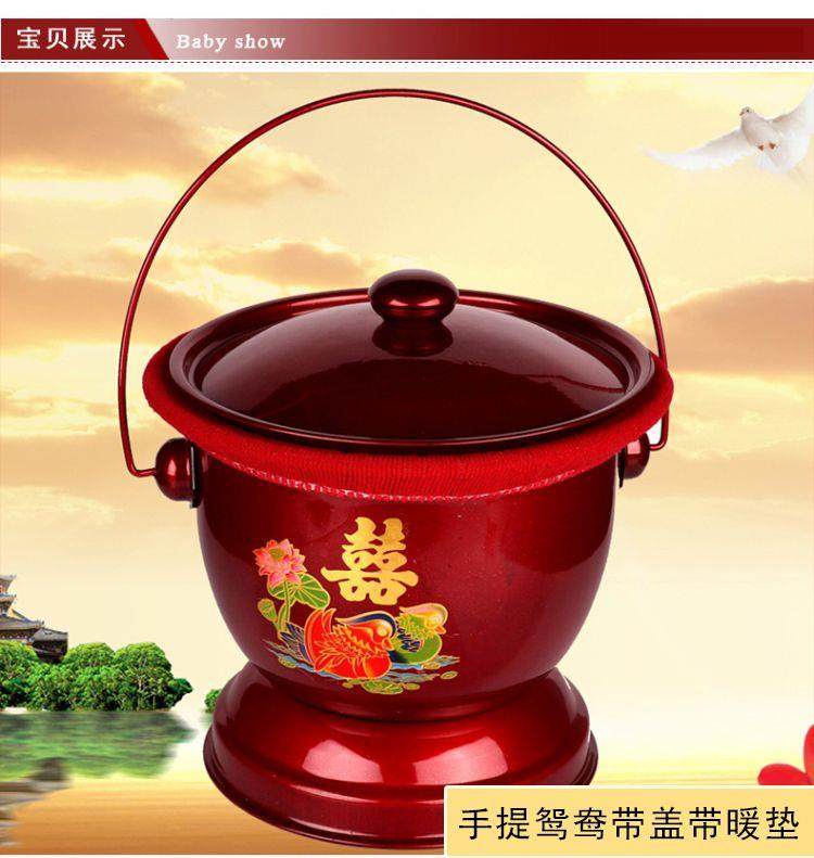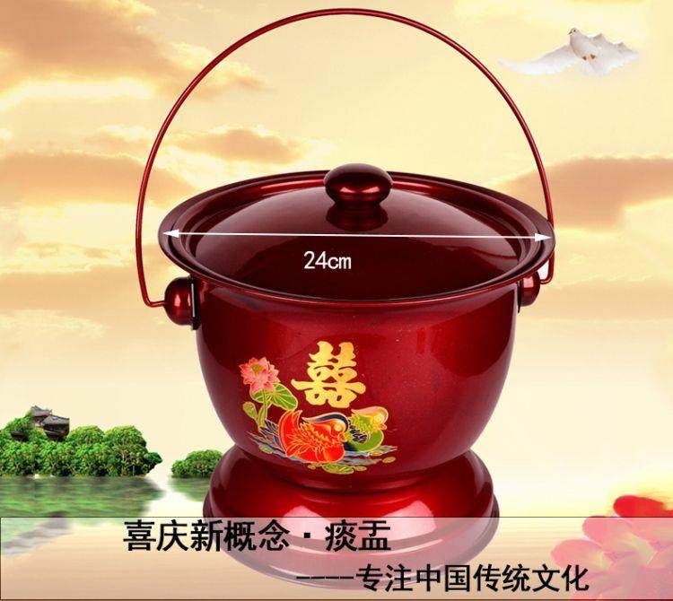 婚庆用品铁痰盂子孙桶红色高脚痰盂红色搪瓷带盖夜壶尿壶结婚陪嫁