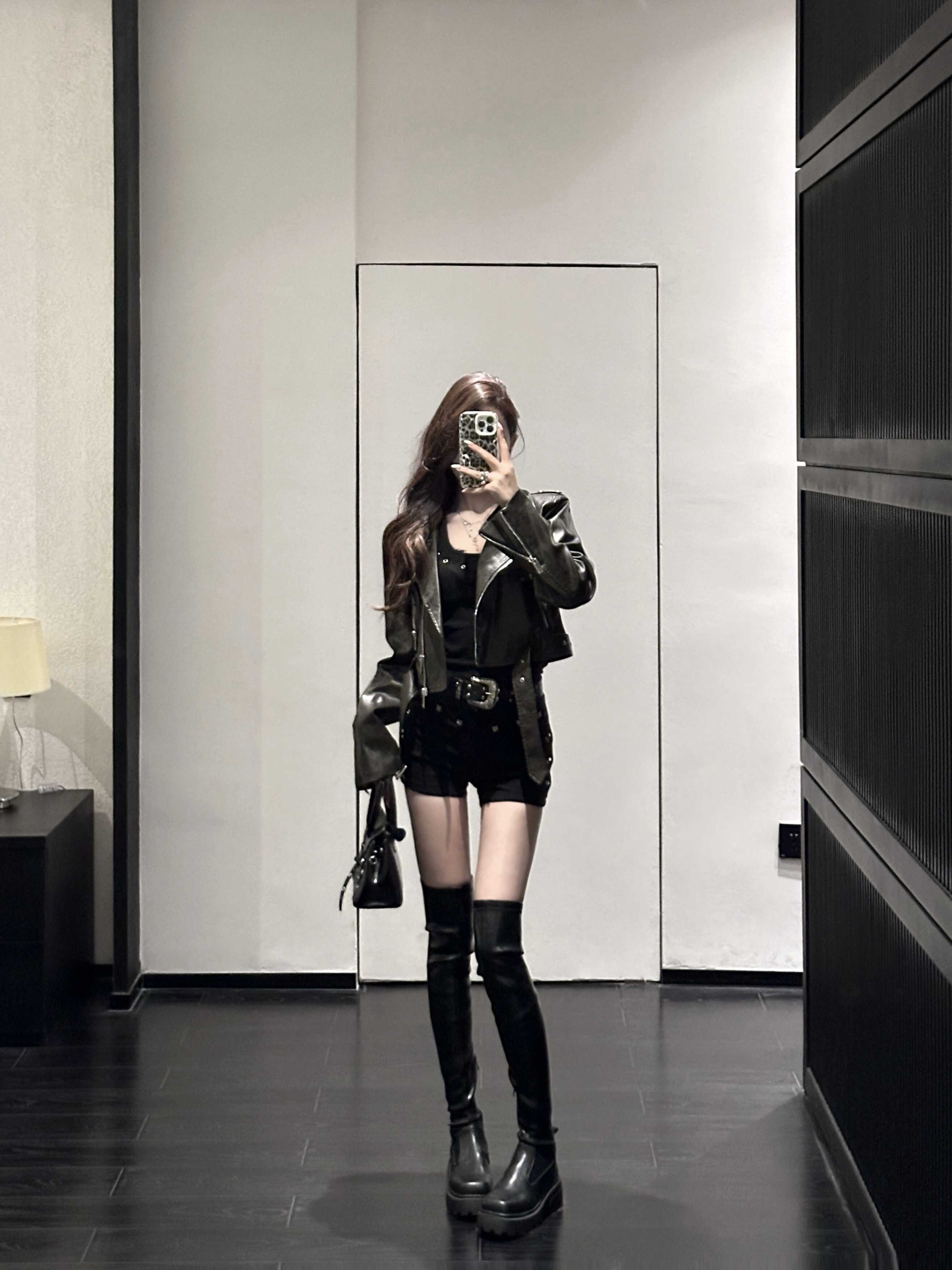 For One41 Motorcycle Leather Jacket Pu Coat for Women, Spring and Autumn Short Style, High-End, Mature and Sexy, Retro Jacket Top