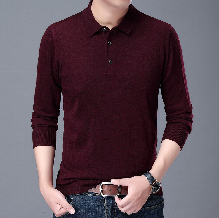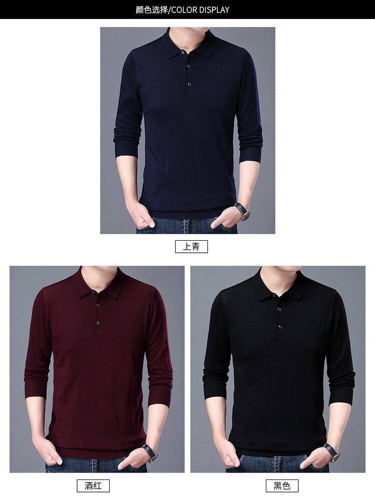 藏源绒羊毛衫男士翻领长袖纯色针织衫休闲薄款高档爸爸羊绒衫毛衣