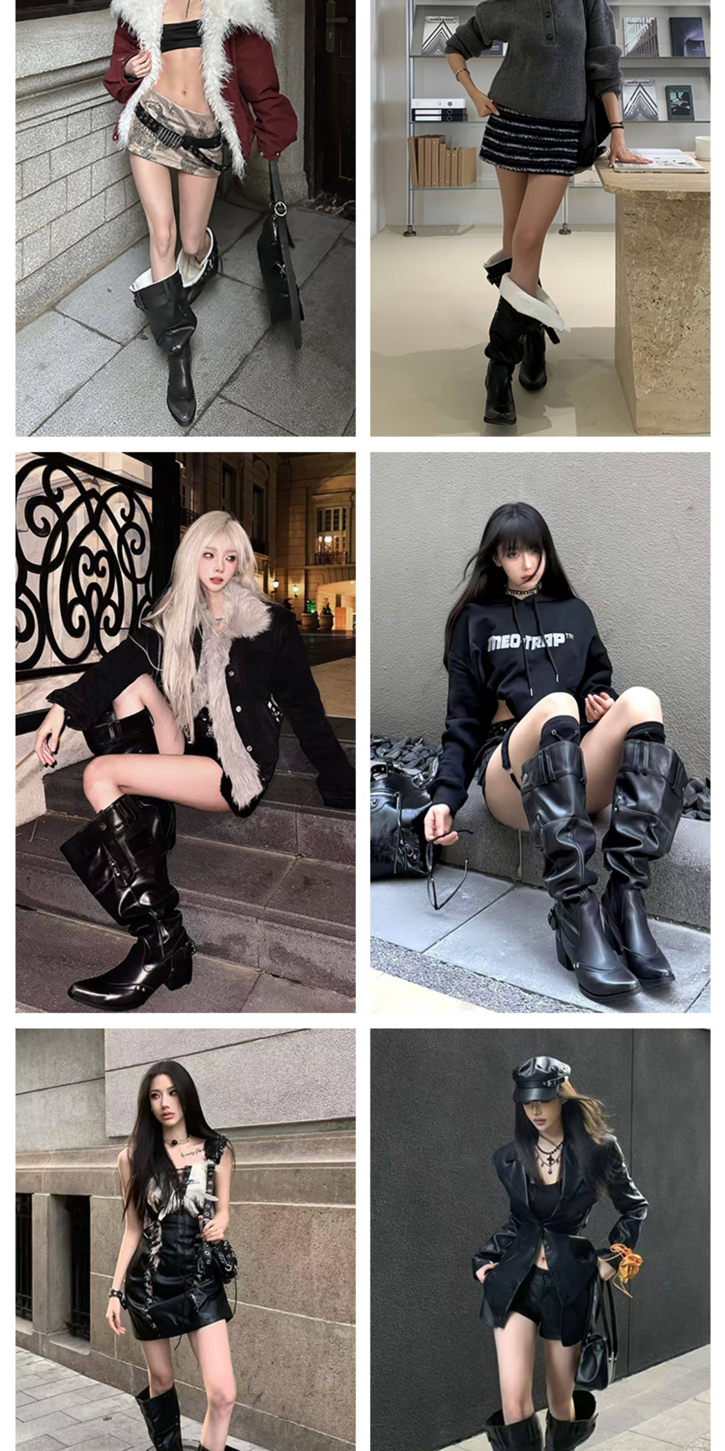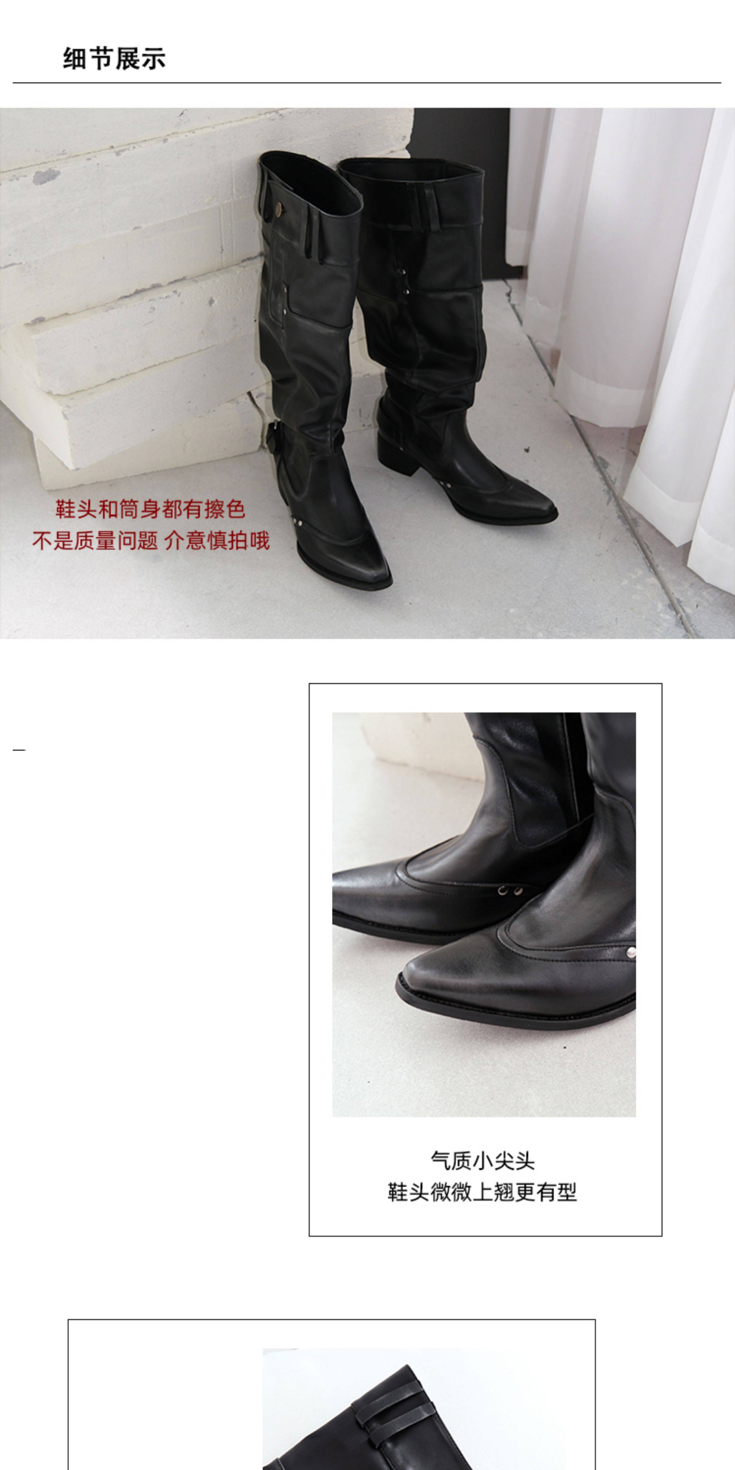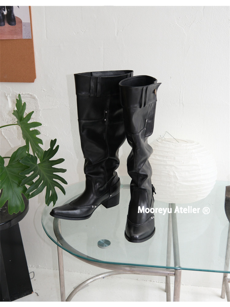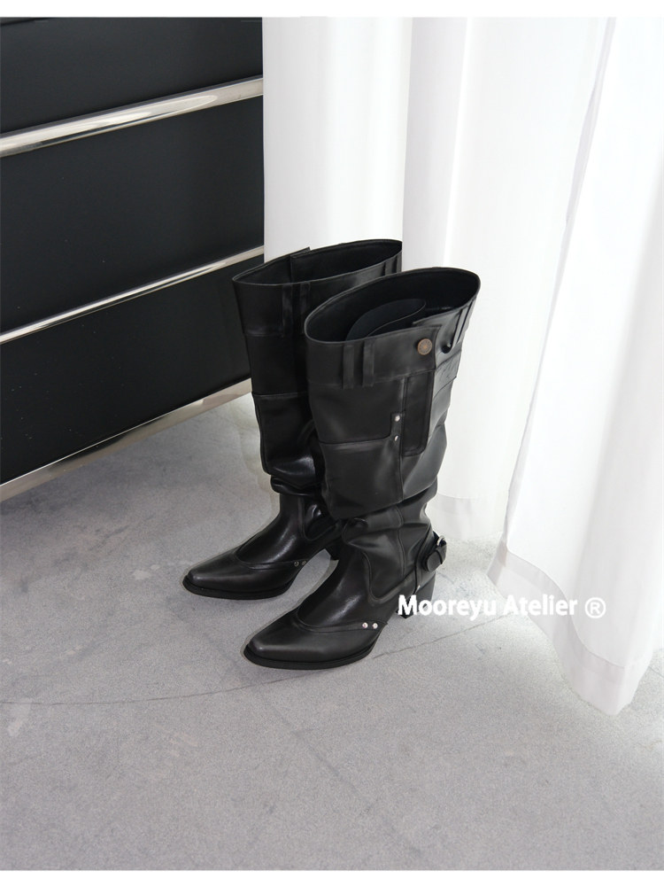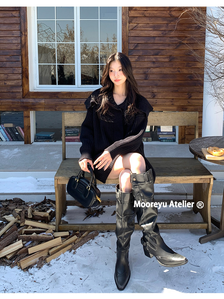Women's Over-The-Knee Boots 2025 Autumn and Winter Genuine Leather Hot Girl Style Pointed Toe Chunky Heel Black Slouch Boots