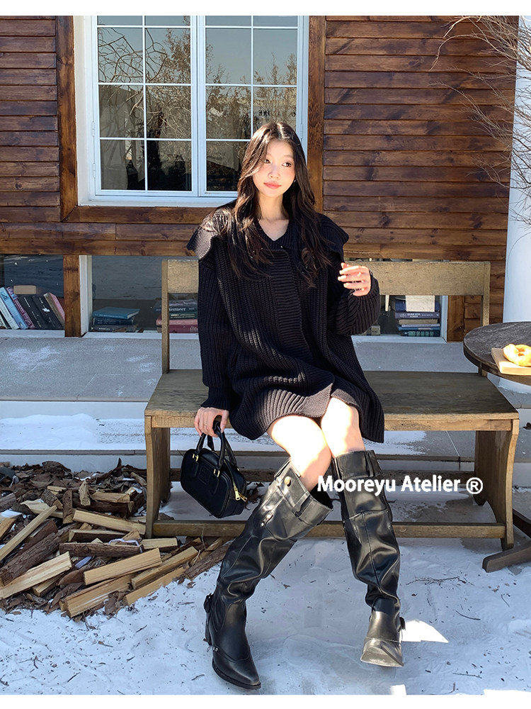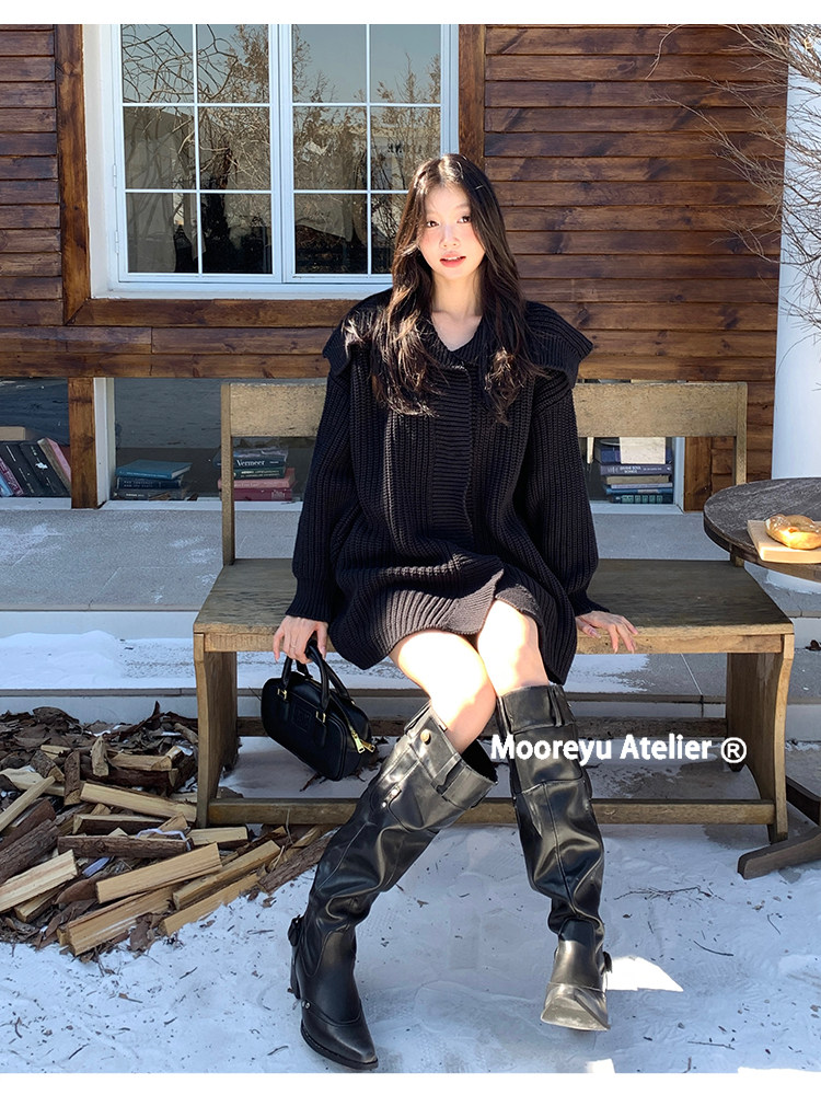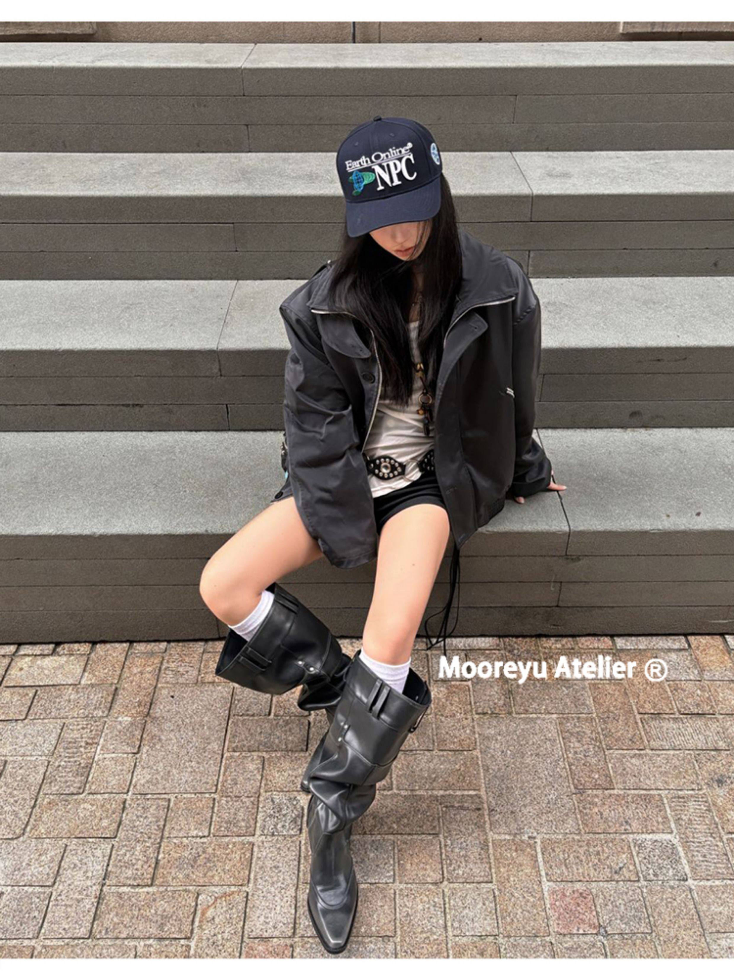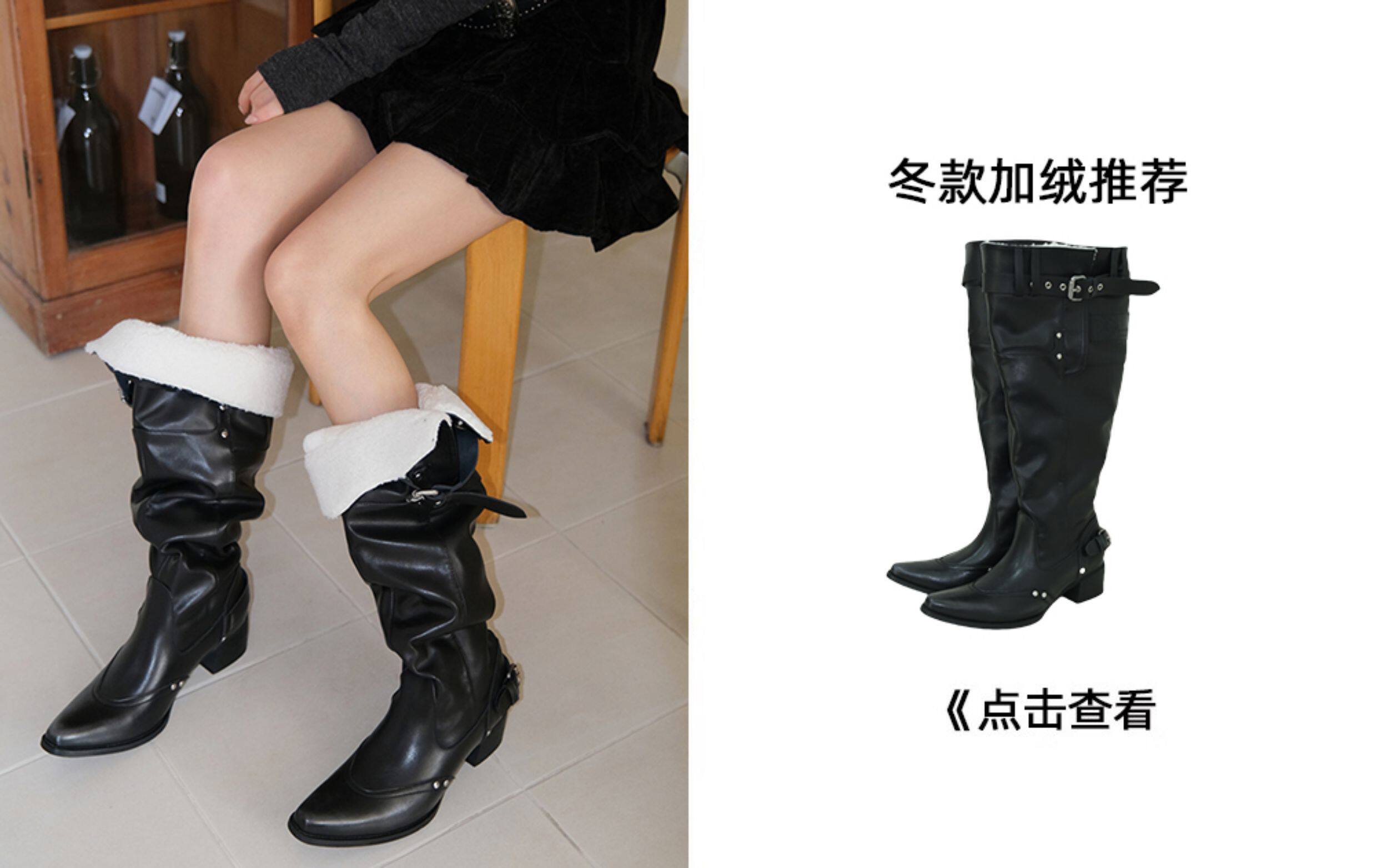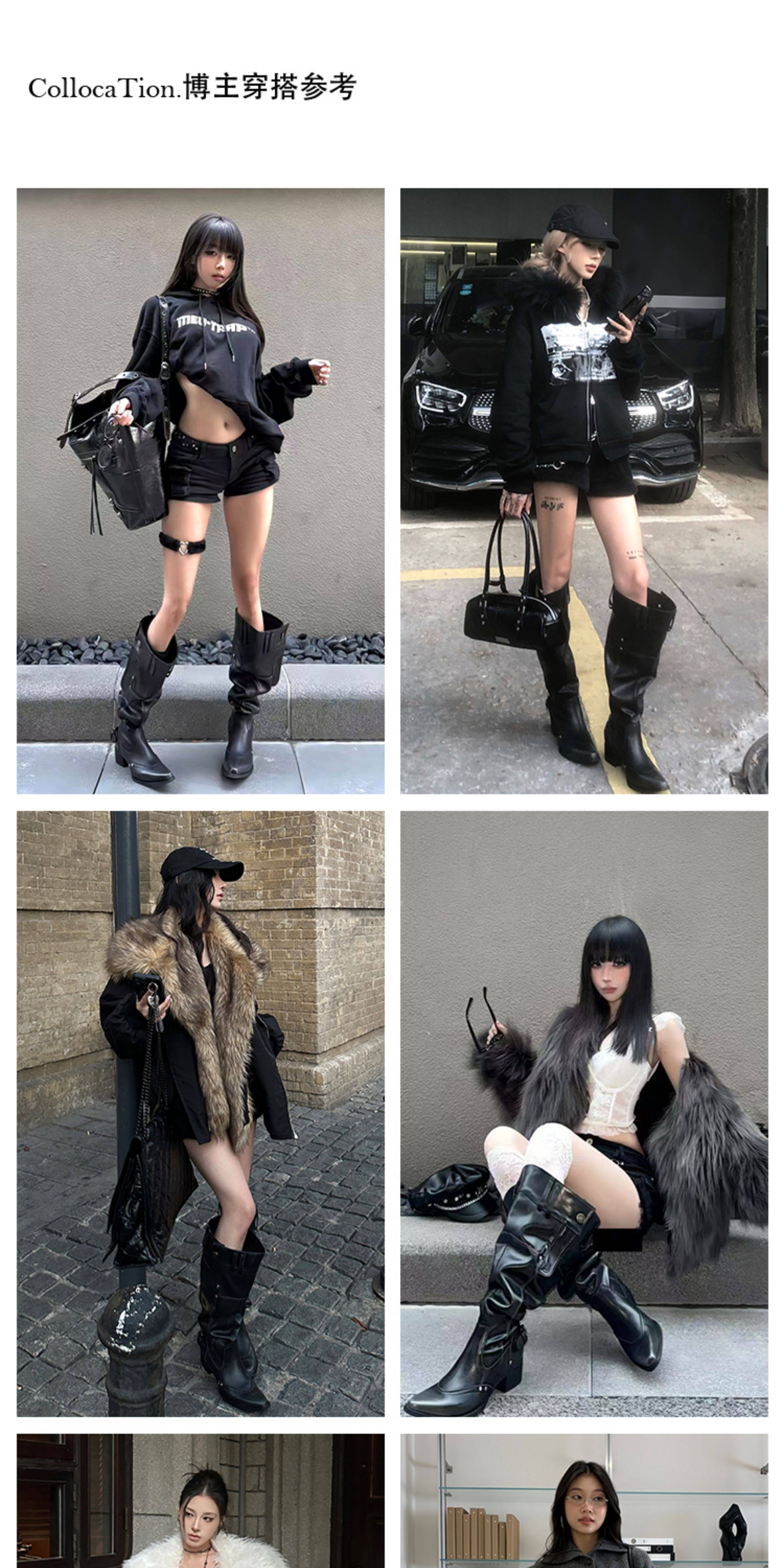Women's Over-The-Knee Boots 2025 Autumn and Winter Genuine Leather Hot Girl Style Pointed Toe Chunky Heel Black Slouch Boots
