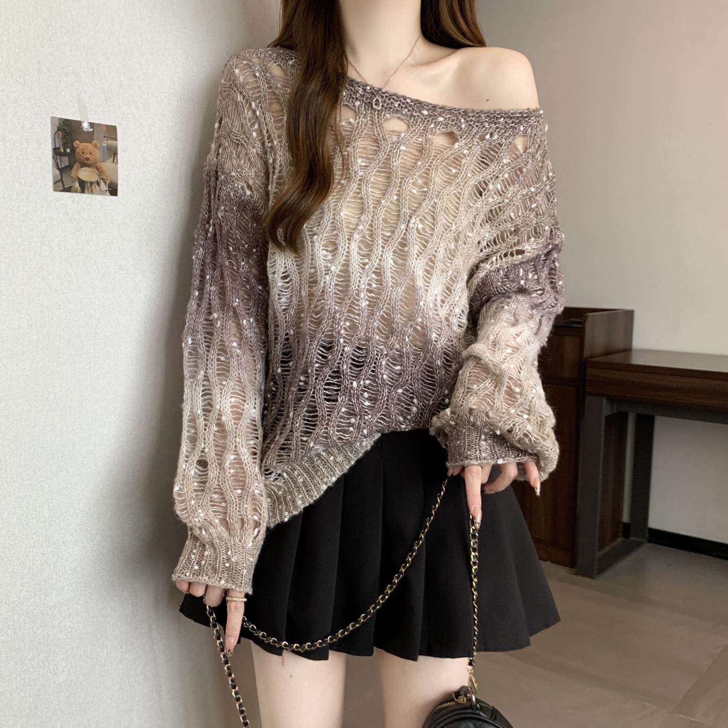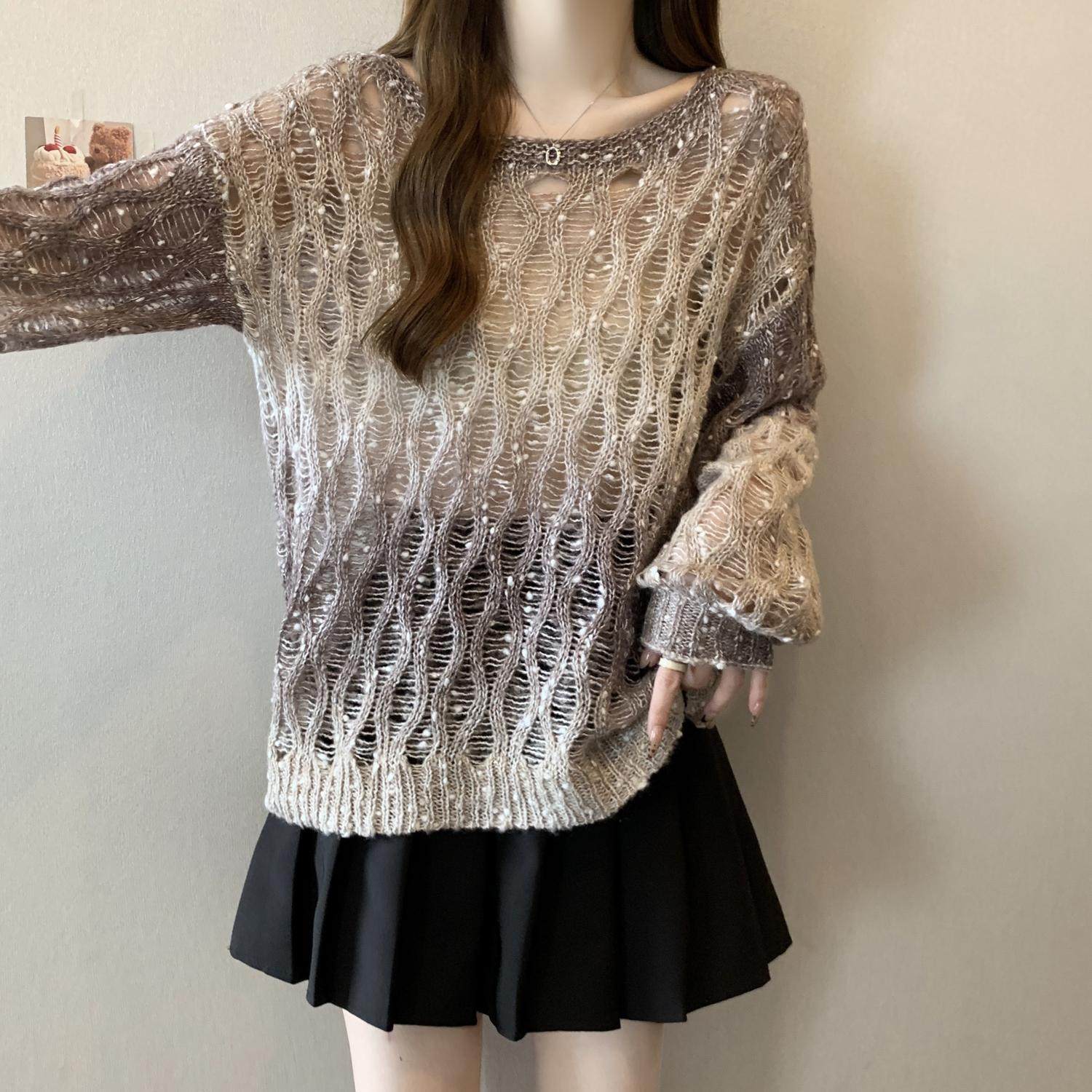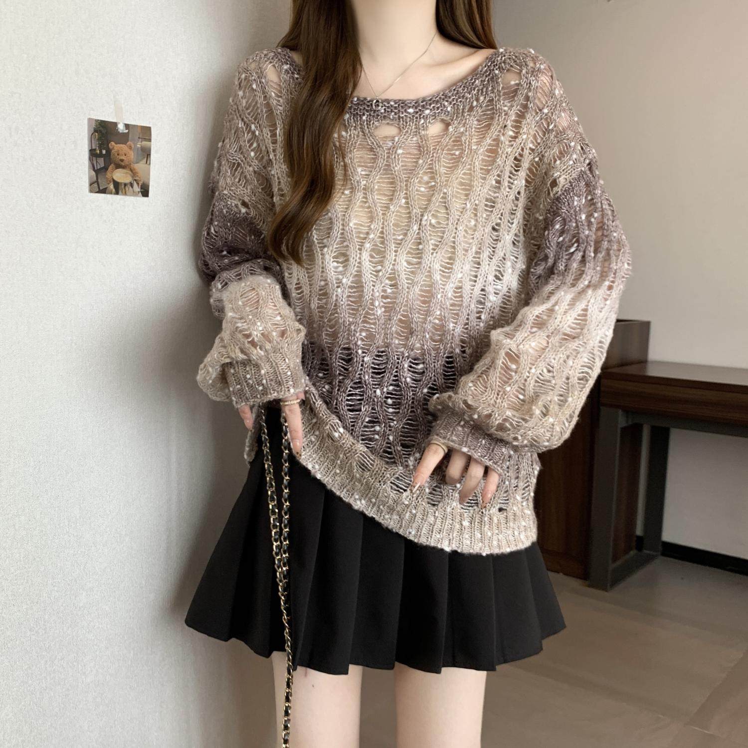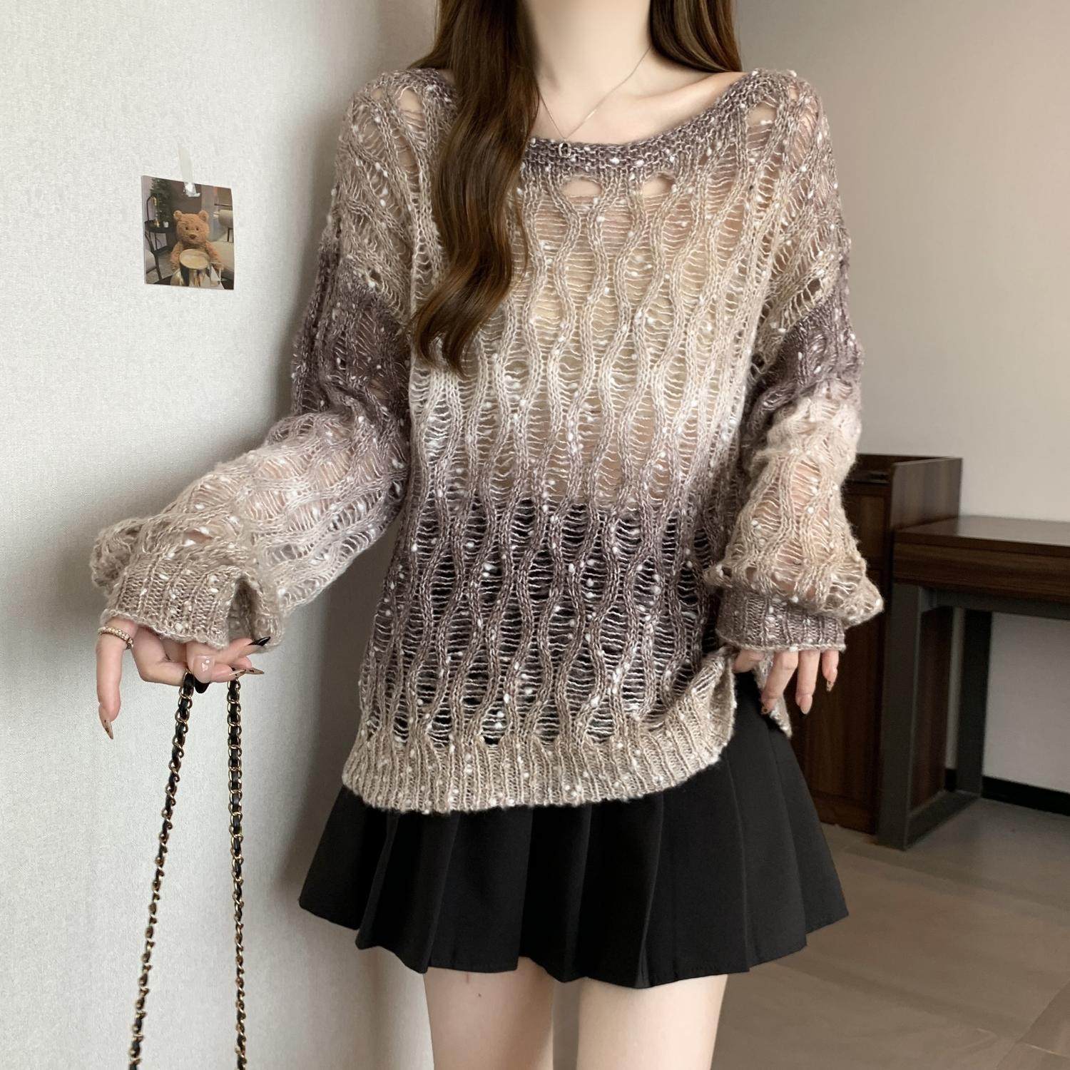 Вязаный свитер Melard с градиентным узором и вырезами для женщин, осенний, больших размеров, уникальная верхняя одежда для полных девушек.