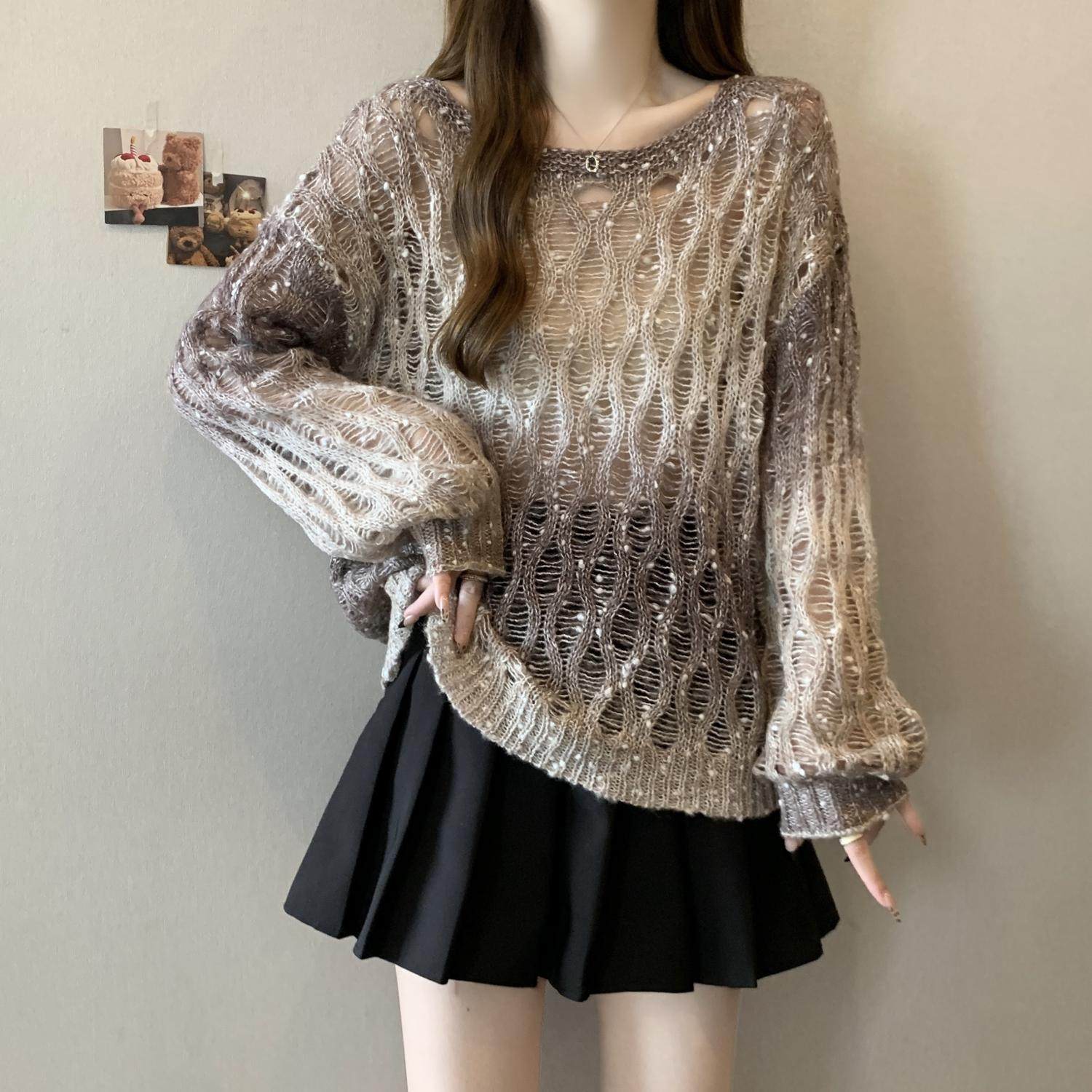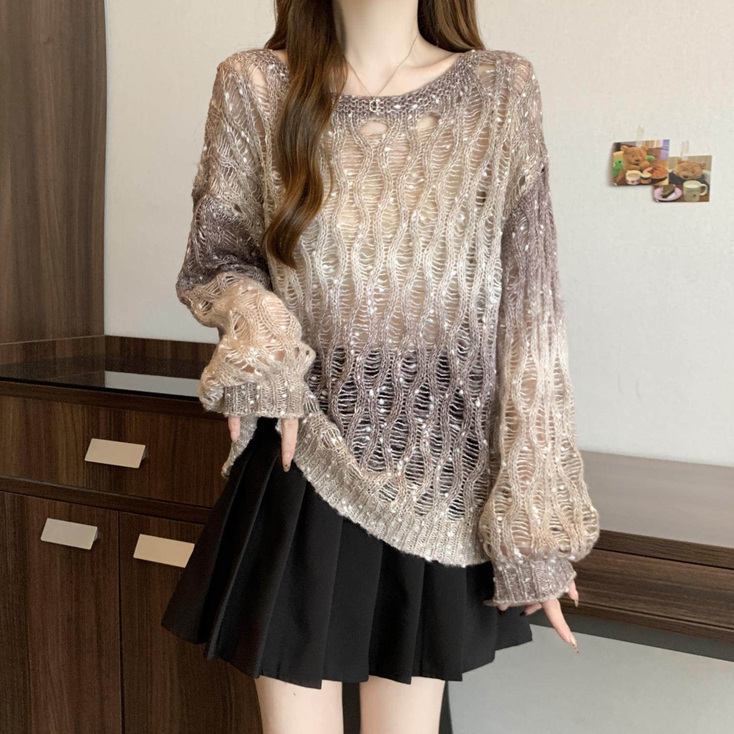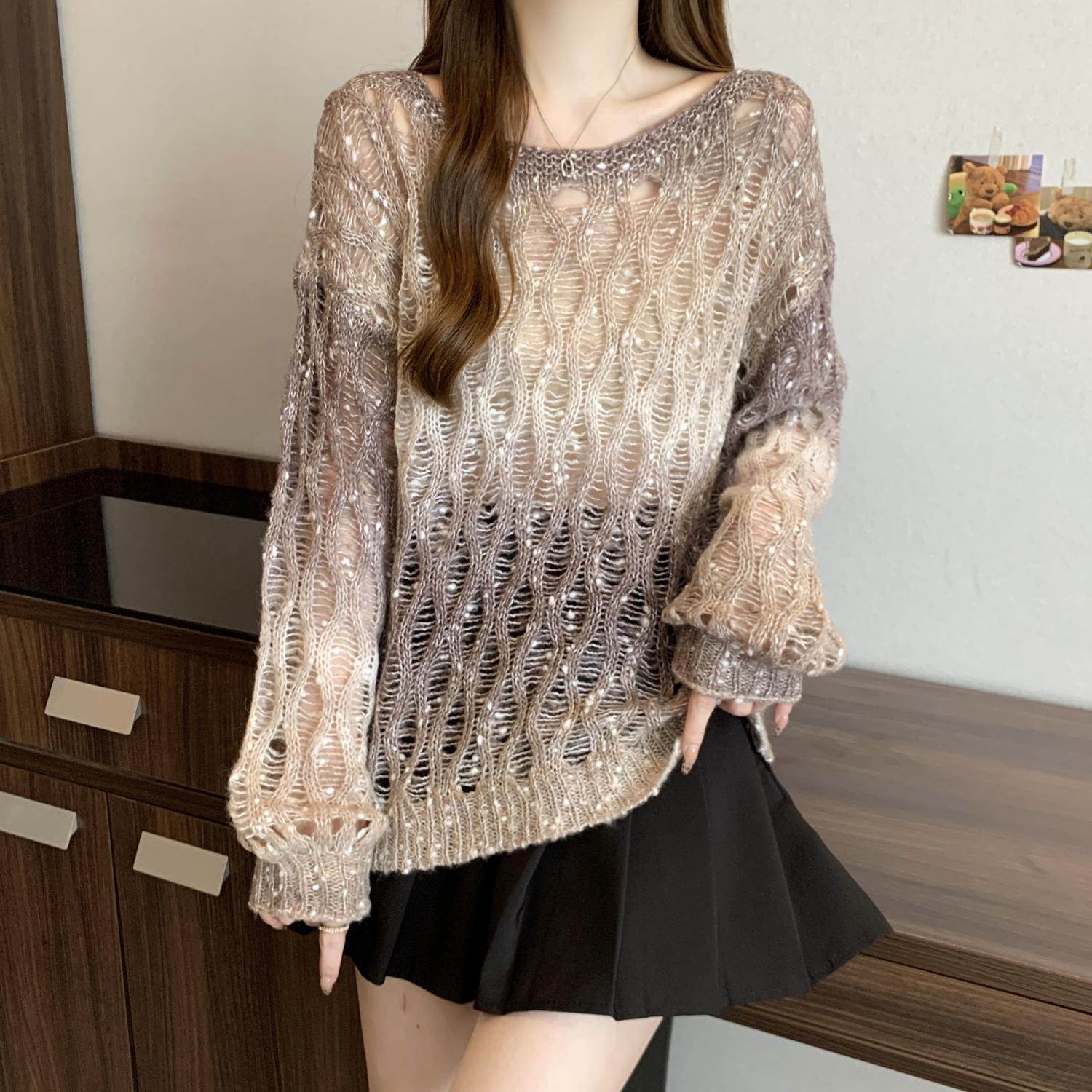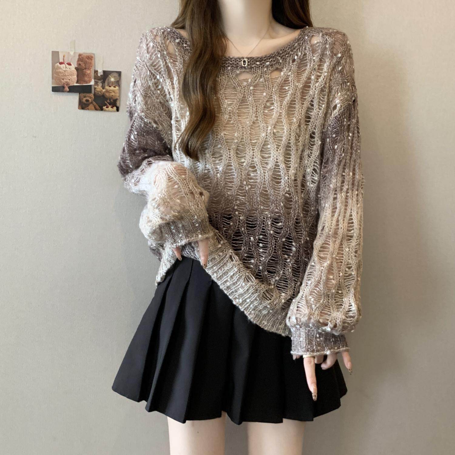 Вязаный свитер Melard с градиентным узором и вырезами для женщин, осенний, больших размеров, уникальная верхняя одежда для полных девушек.