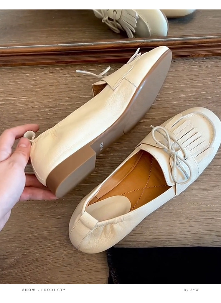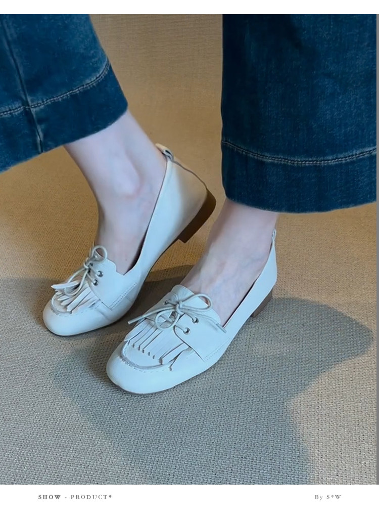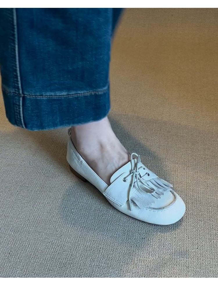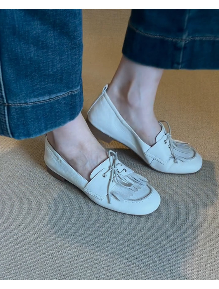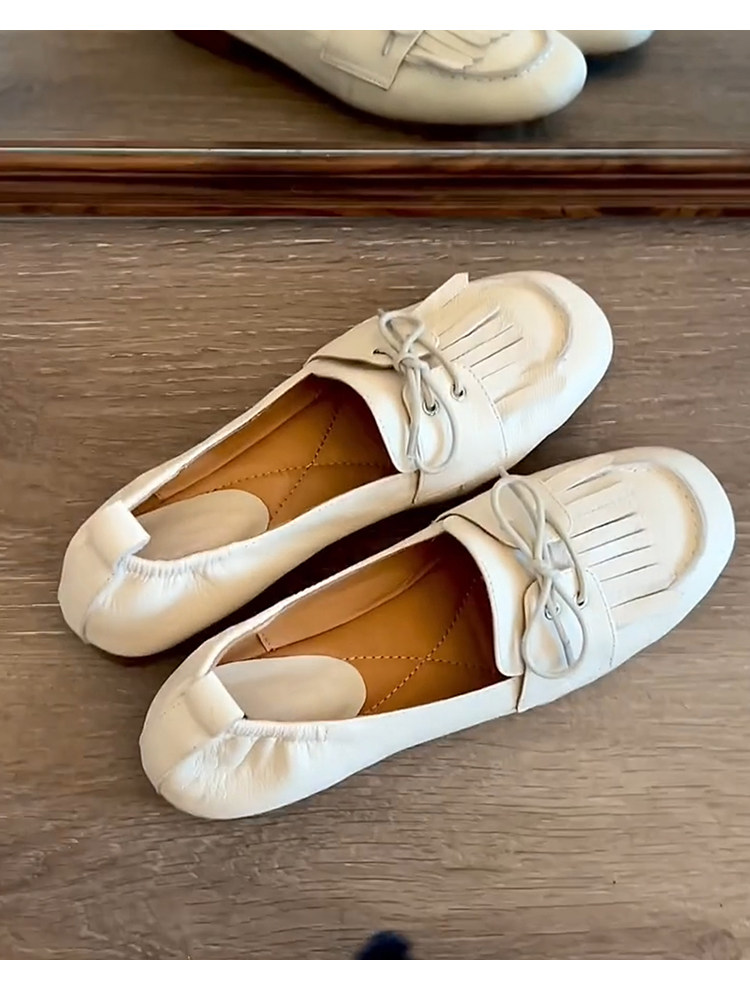 Лоферы женские из натуральной овчины, белые, в французском стиле, без застежек, с кисточками, на мягкой подошве, универсальные