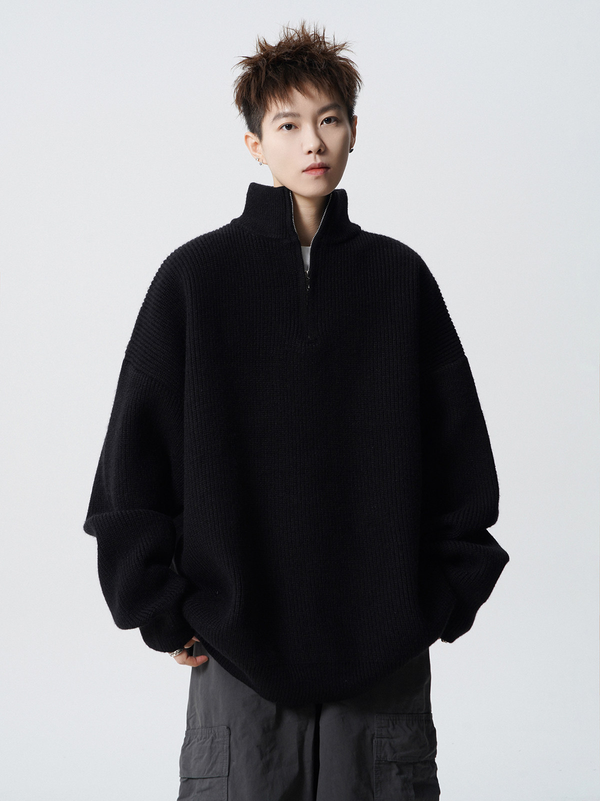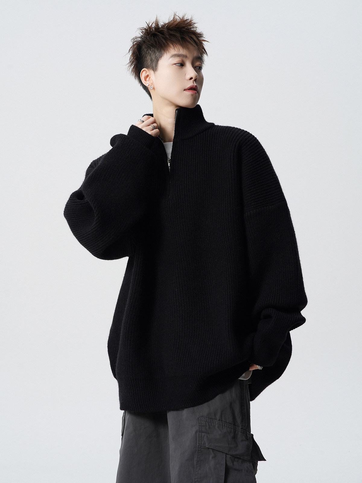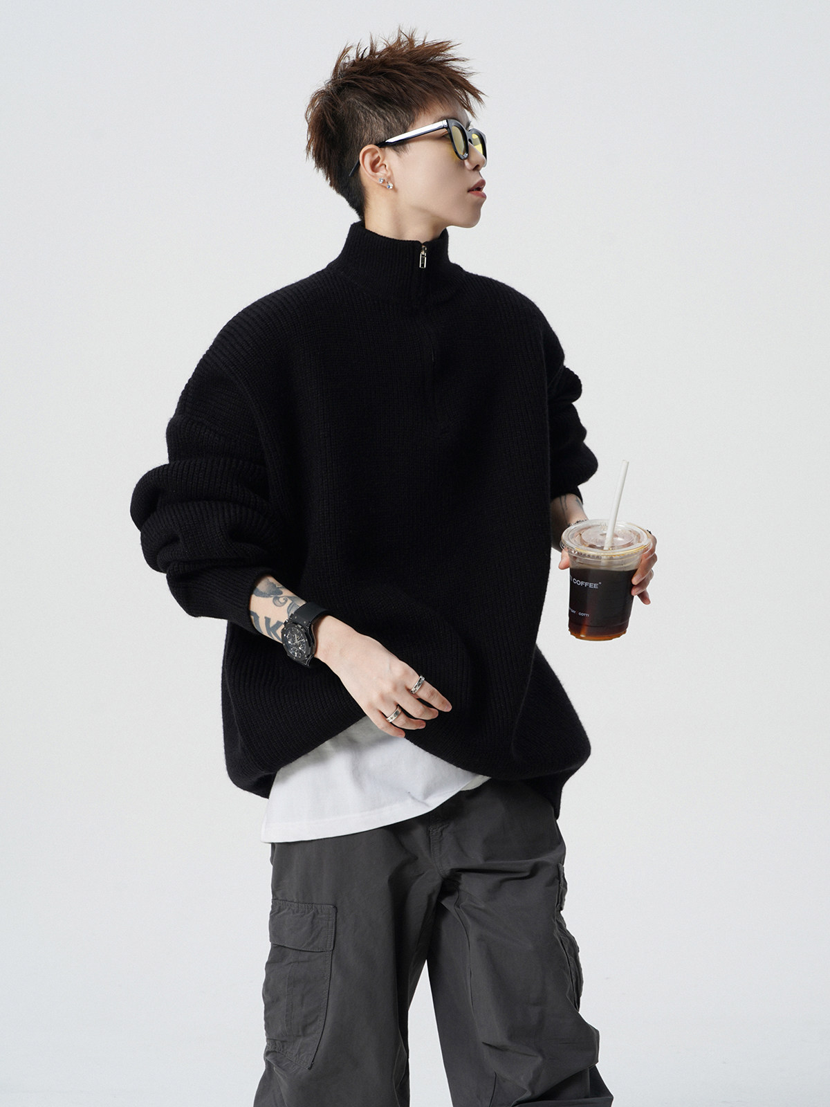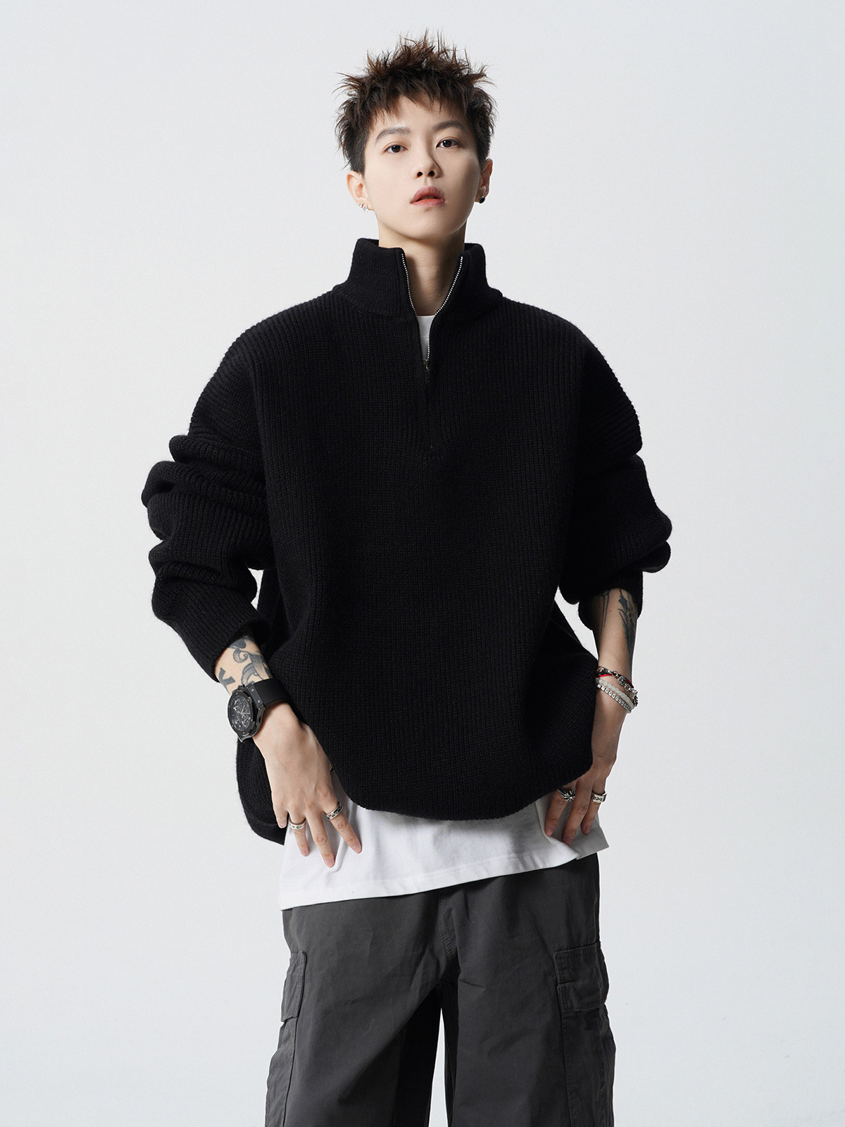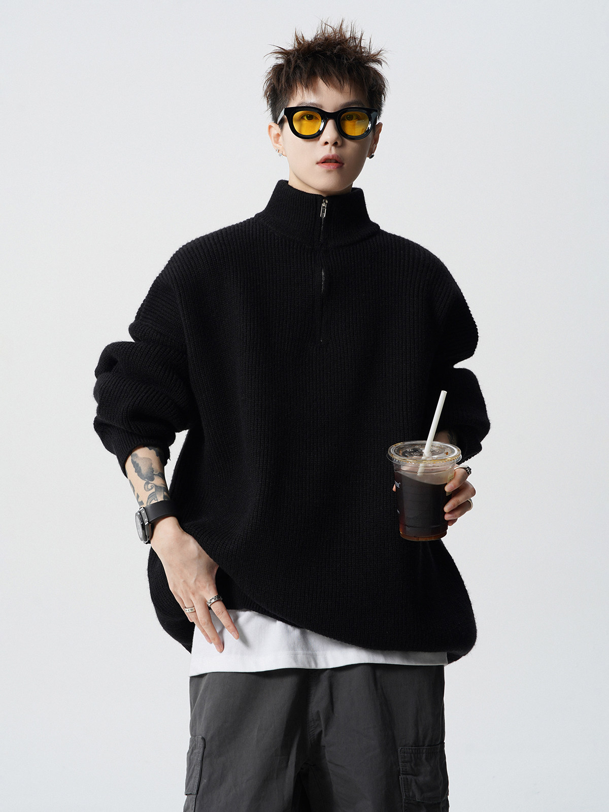 潮牌半拉链毛衣外套男冬季美式慵懒风情侣针织衫oversize百搭线衣