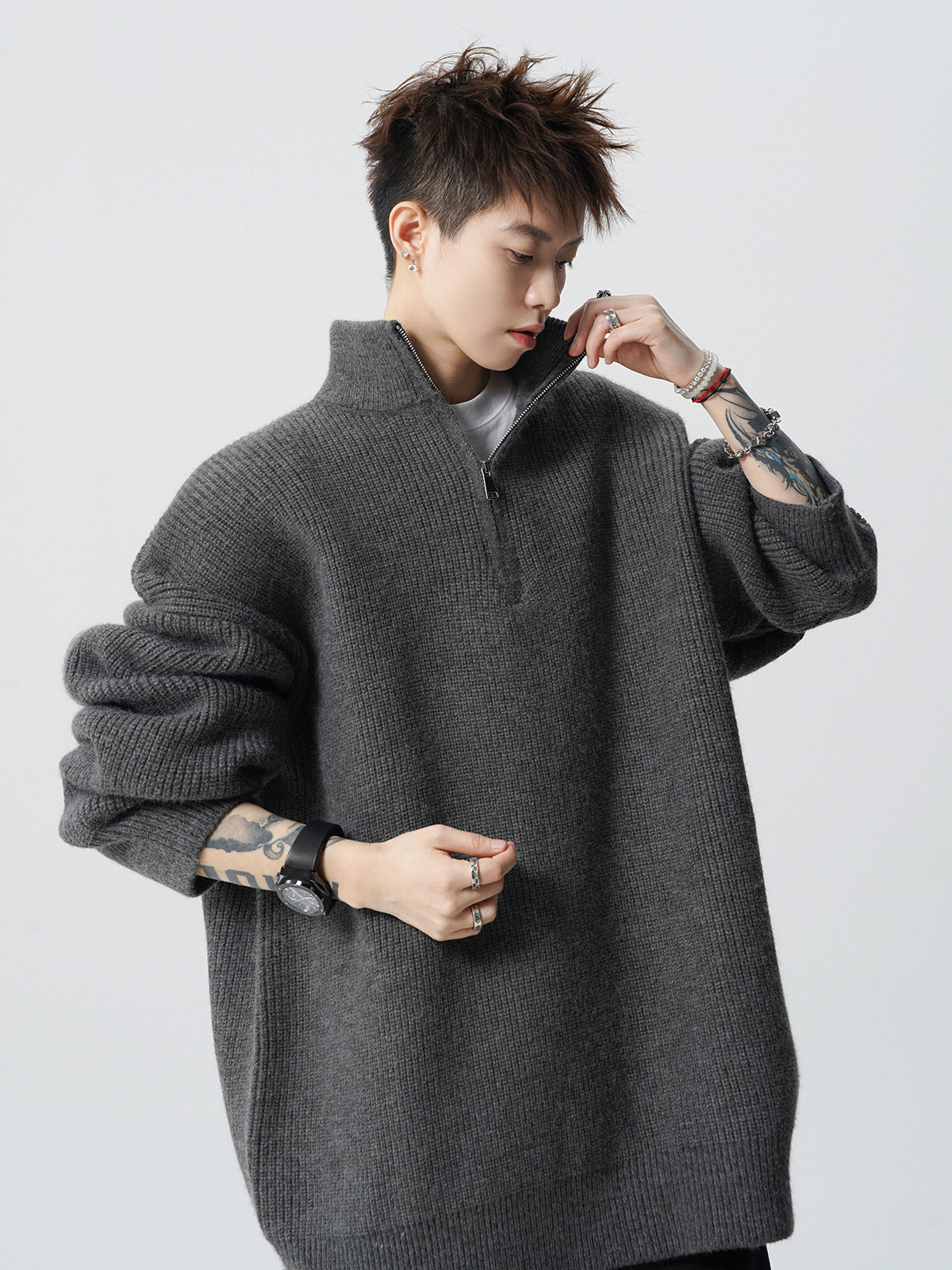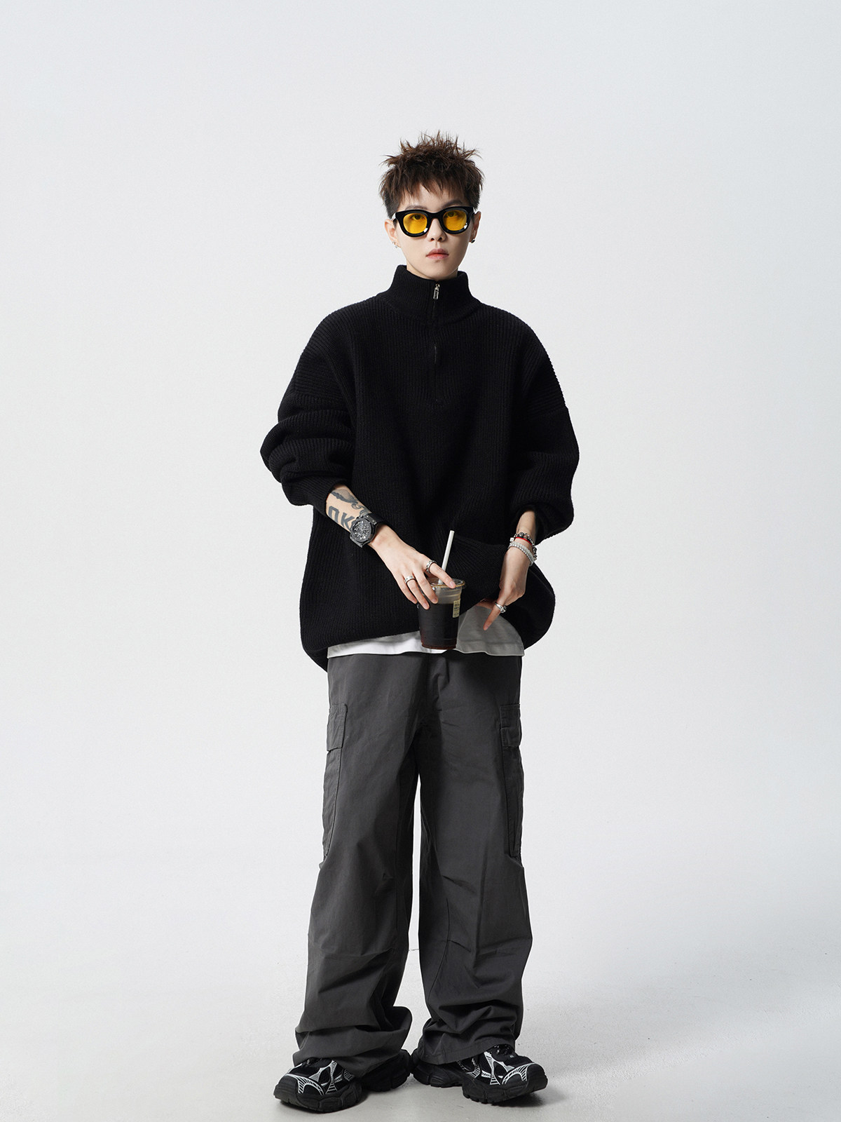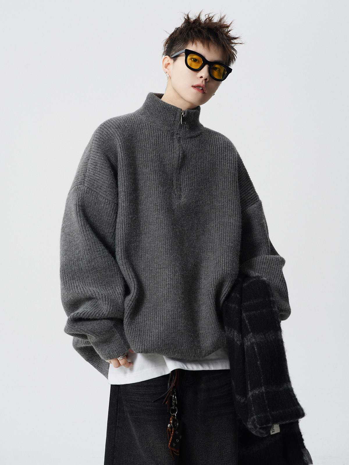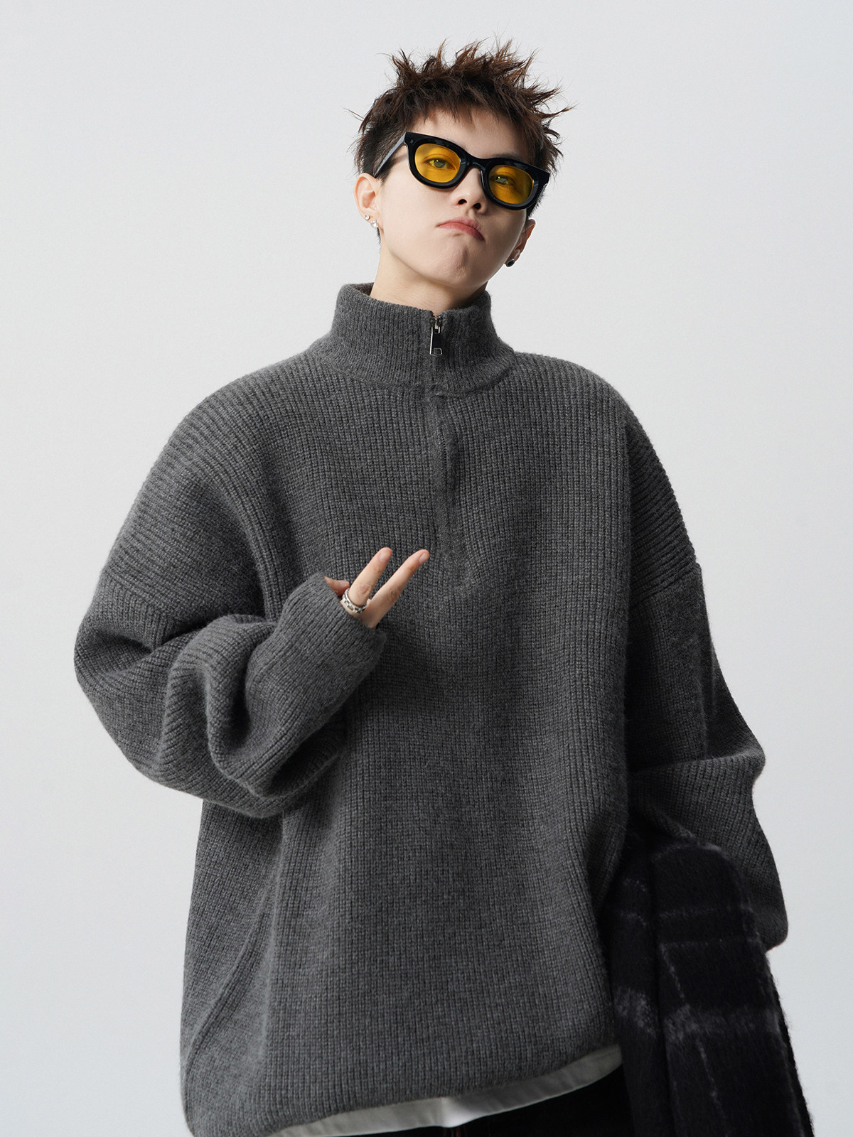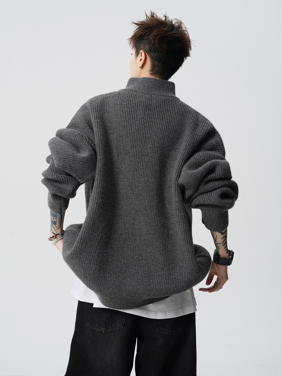 潮牌半拉链毛衣外套男冬季美式慵懒风情侣针织衫oversize百搭线衣