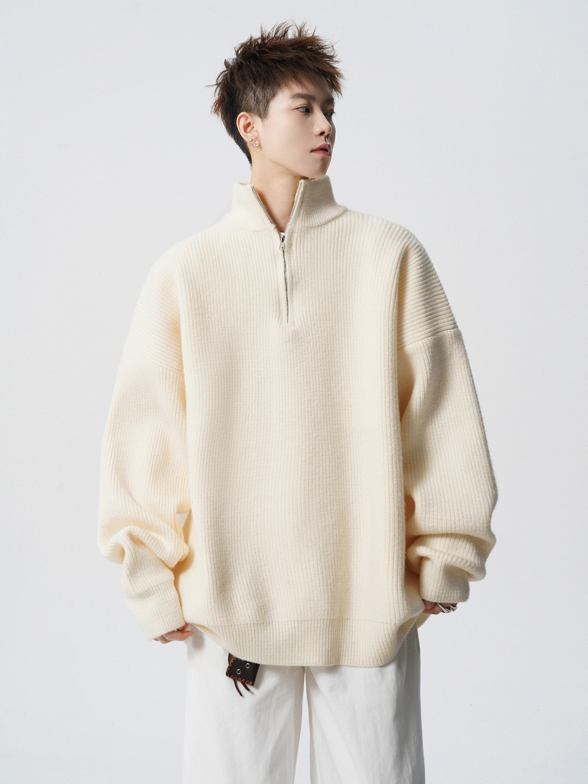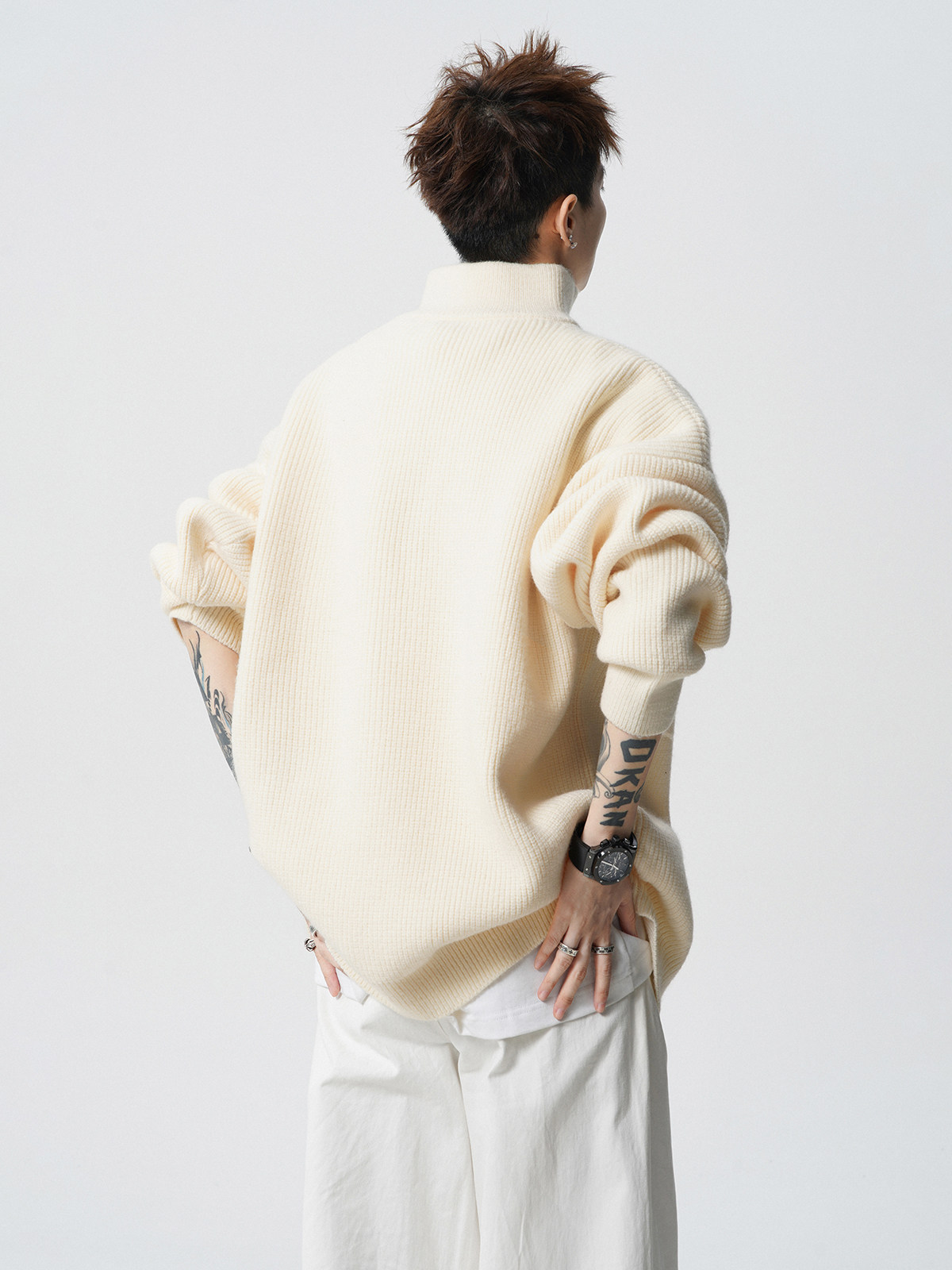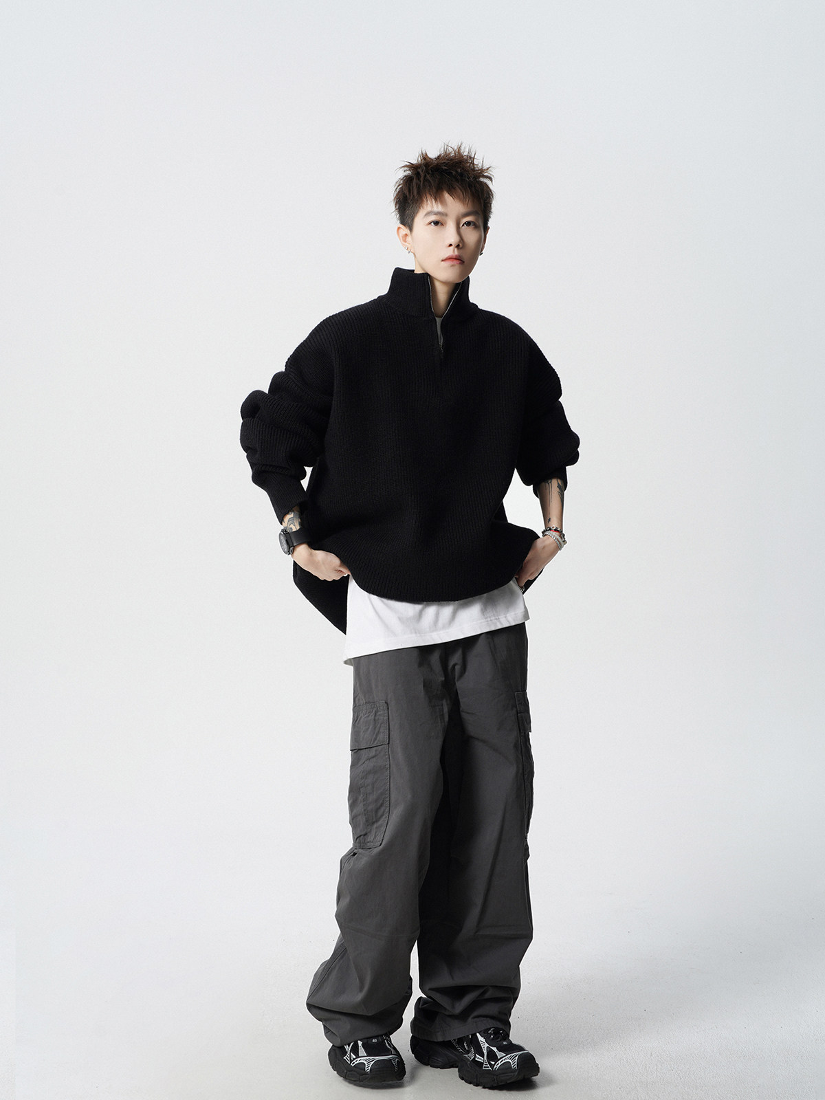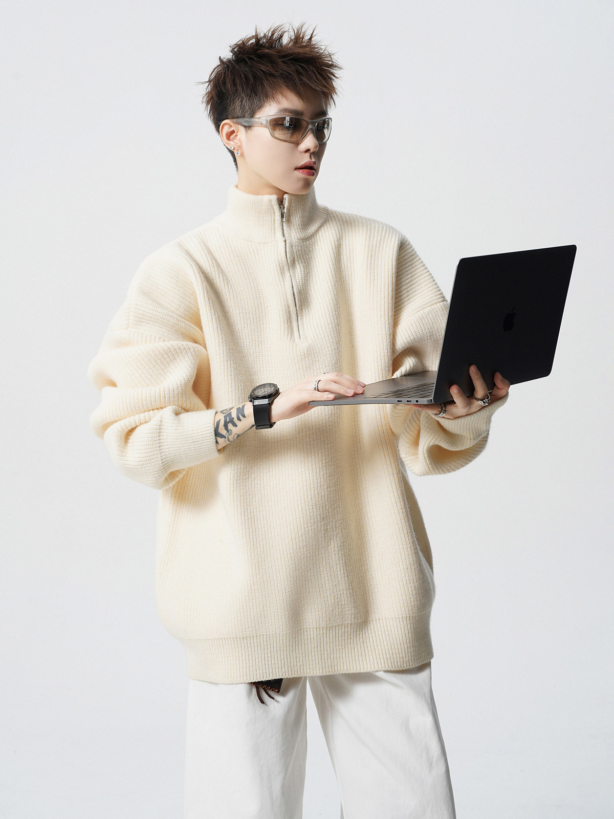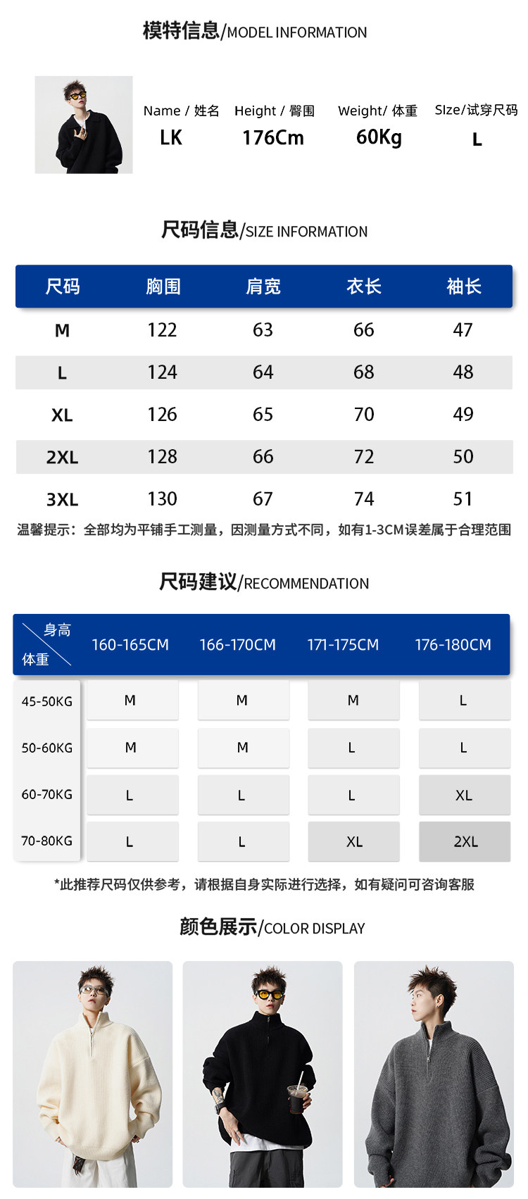 潮牌半拉链毛衣外套男冬季美式慵懒风情侣针织衫oversize百搭线衣