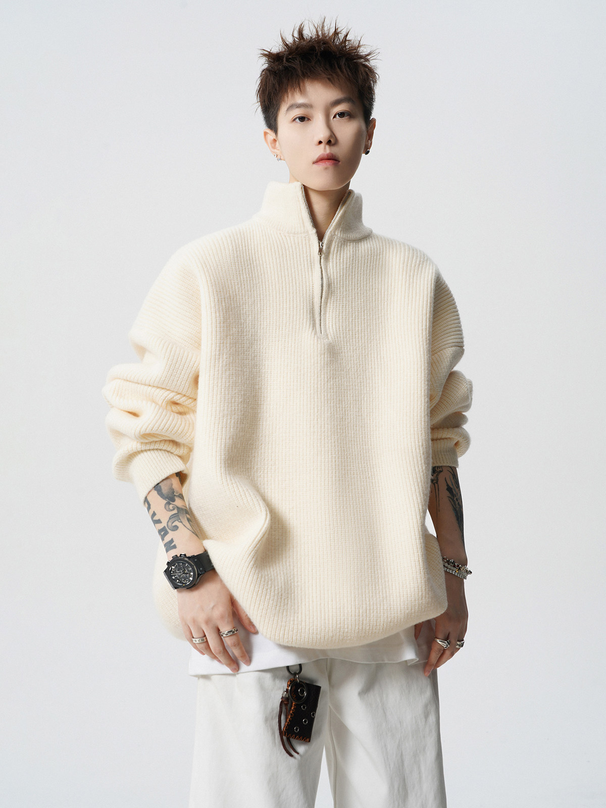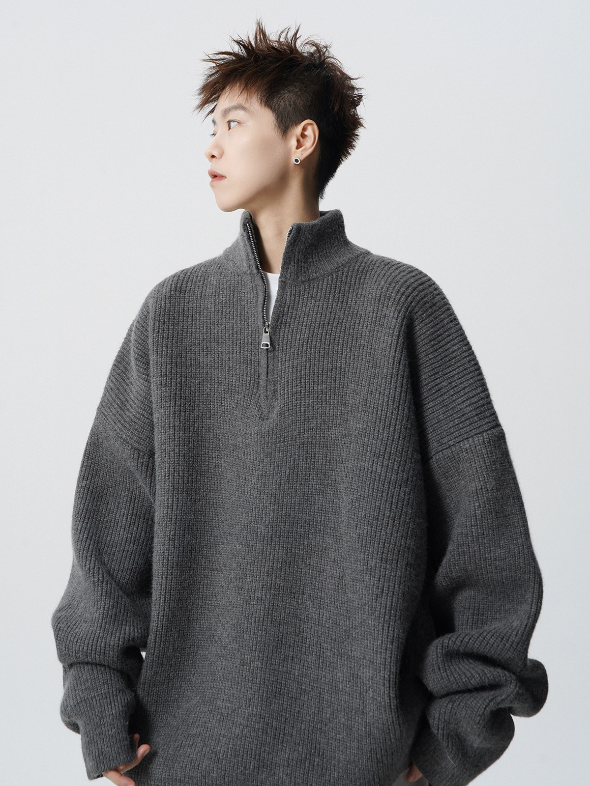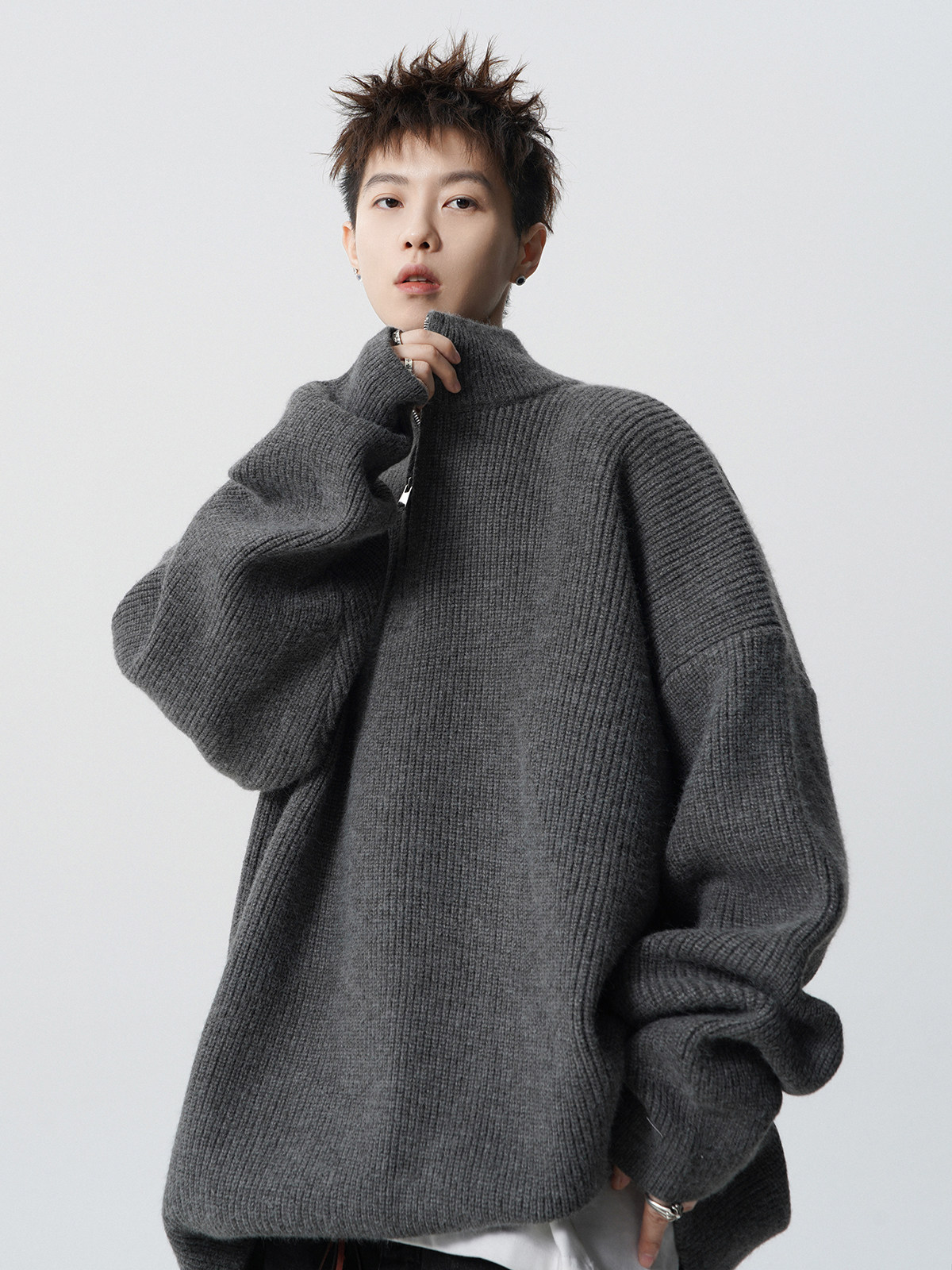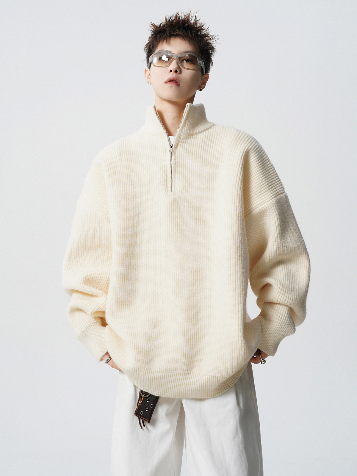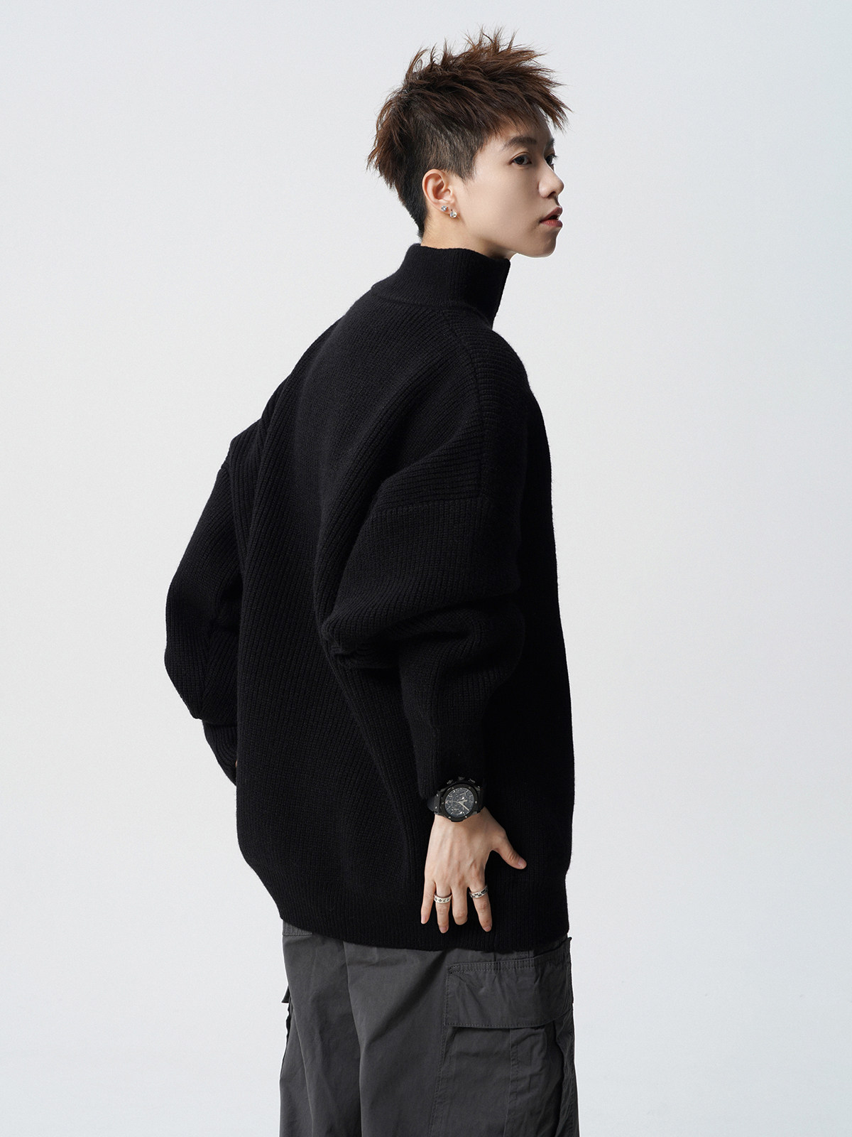 潮牌半拉链毛衣外套男冬季美式慵懒风情侣针织衫oversize百搭线衣