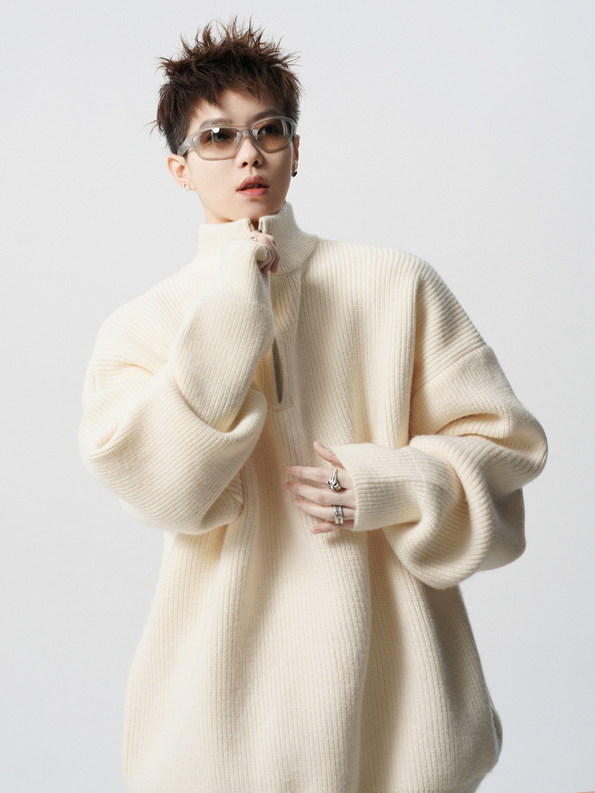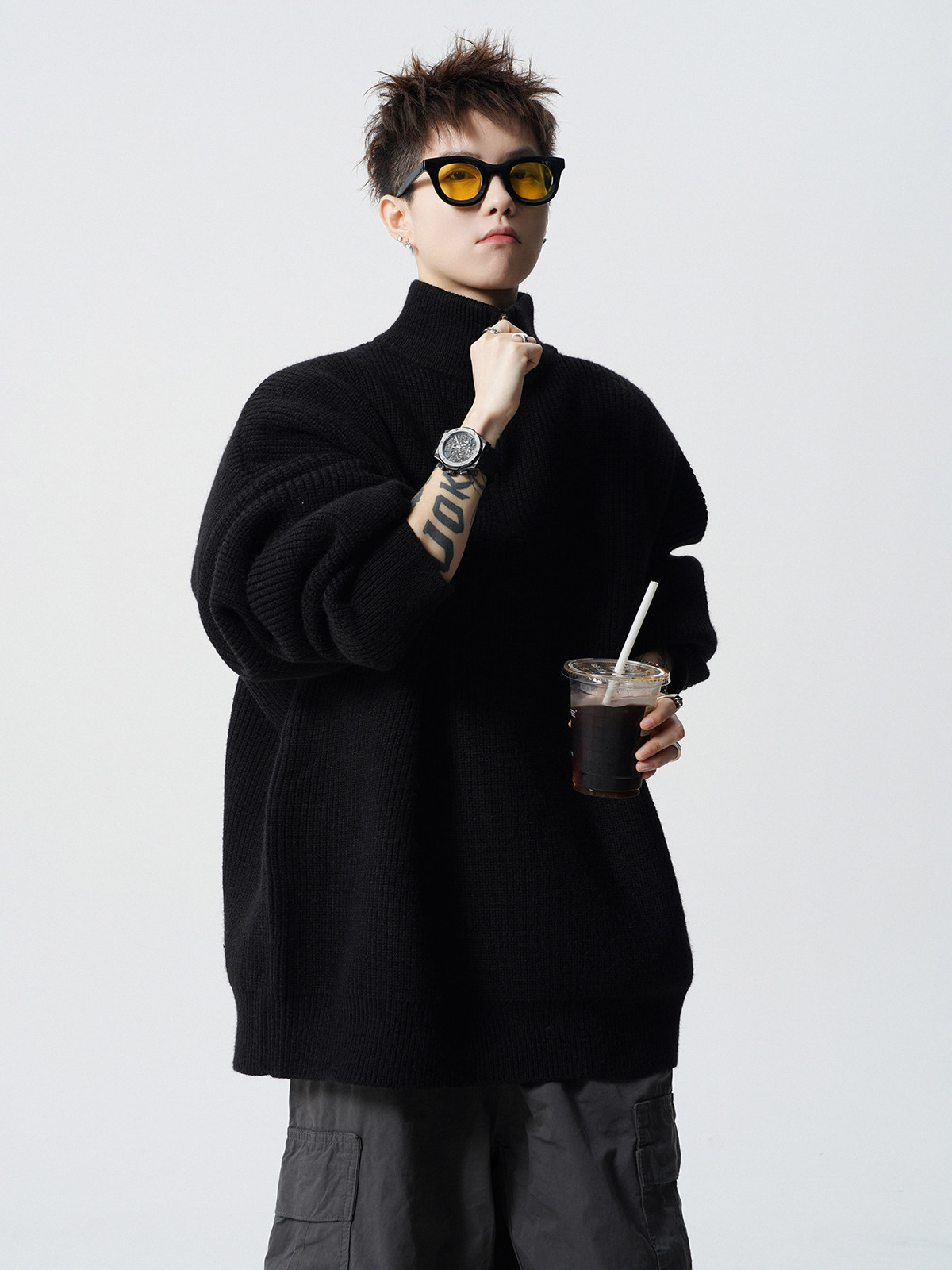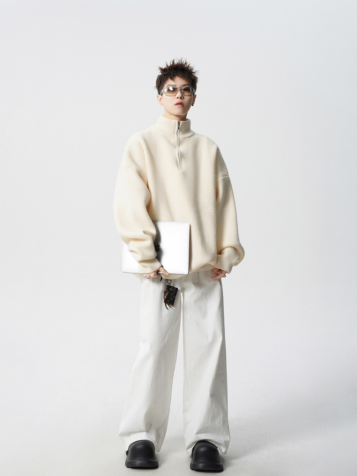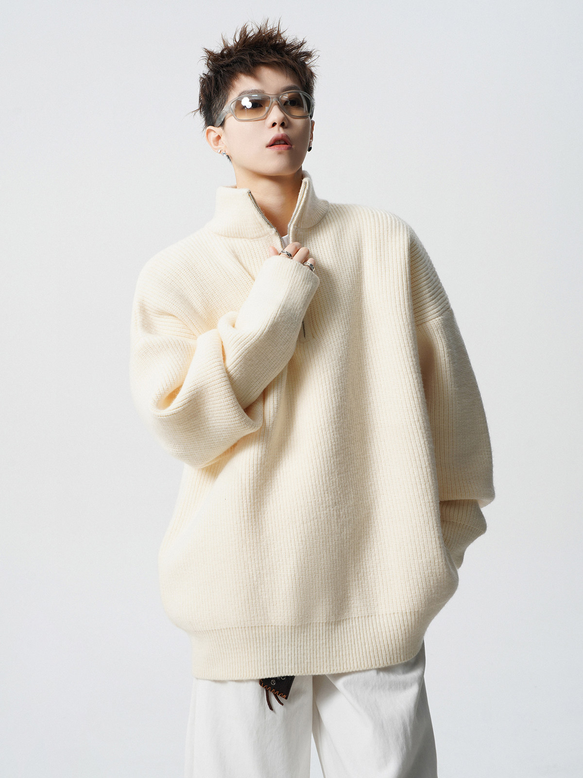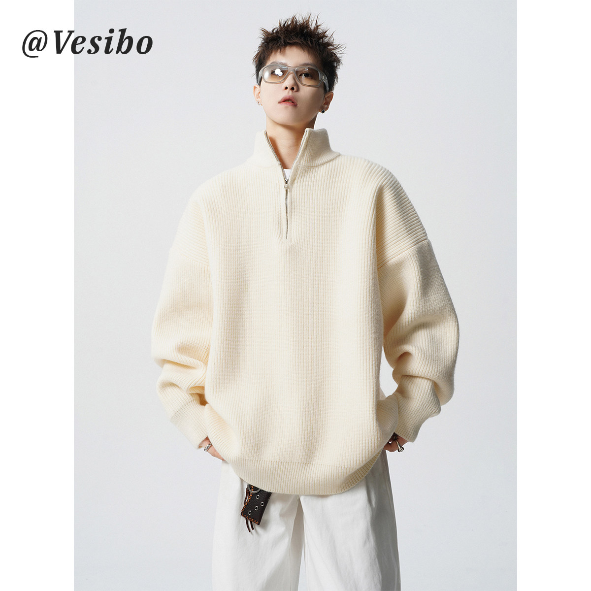 潮牌半拉链毛衣外套男冬季美式慵懒风情侣针织衫oversize百搭线衣