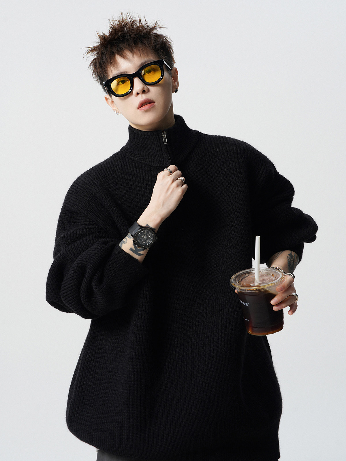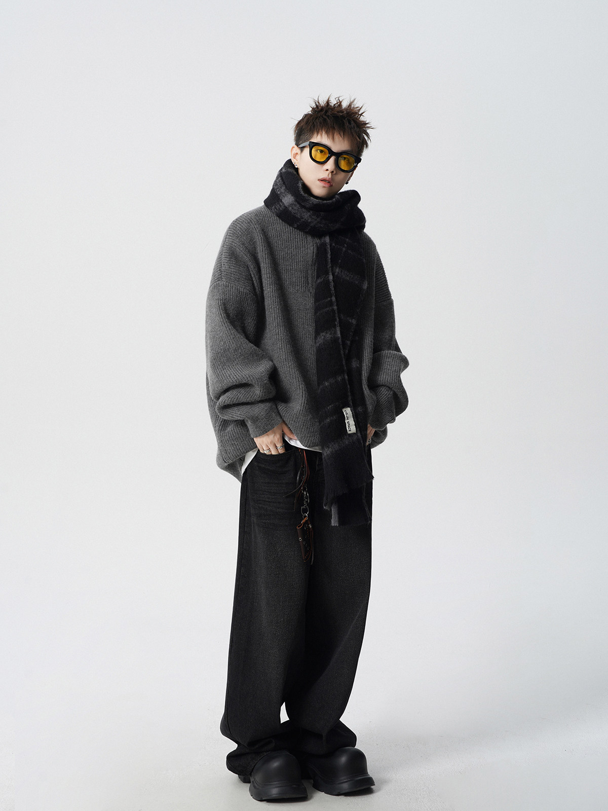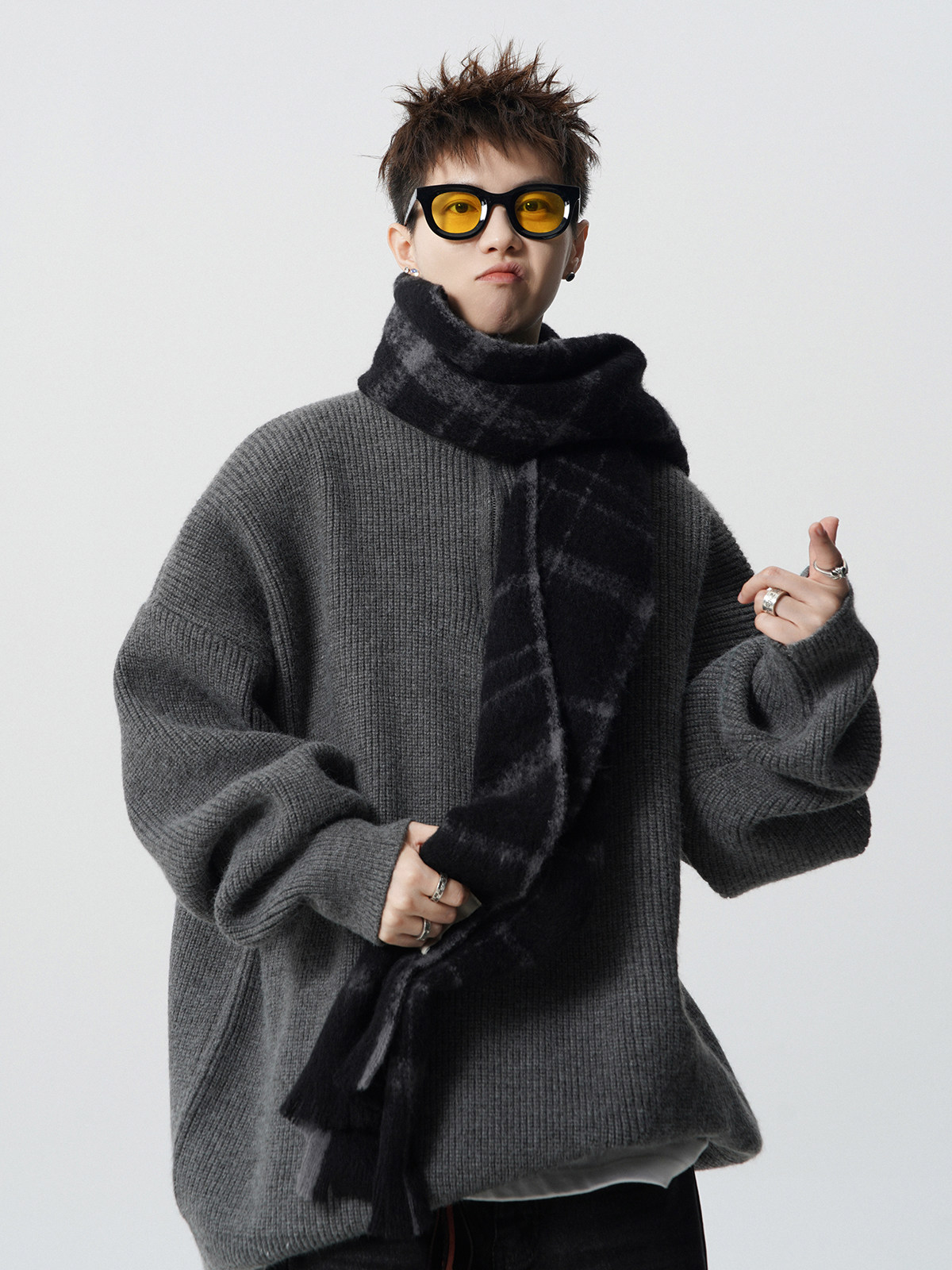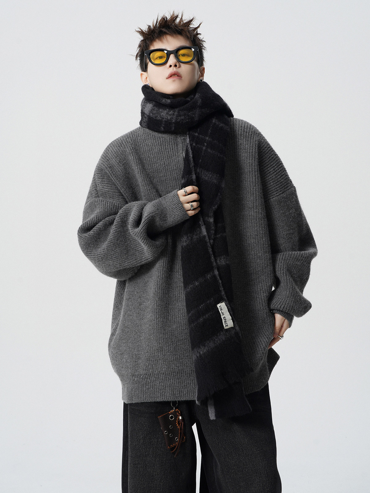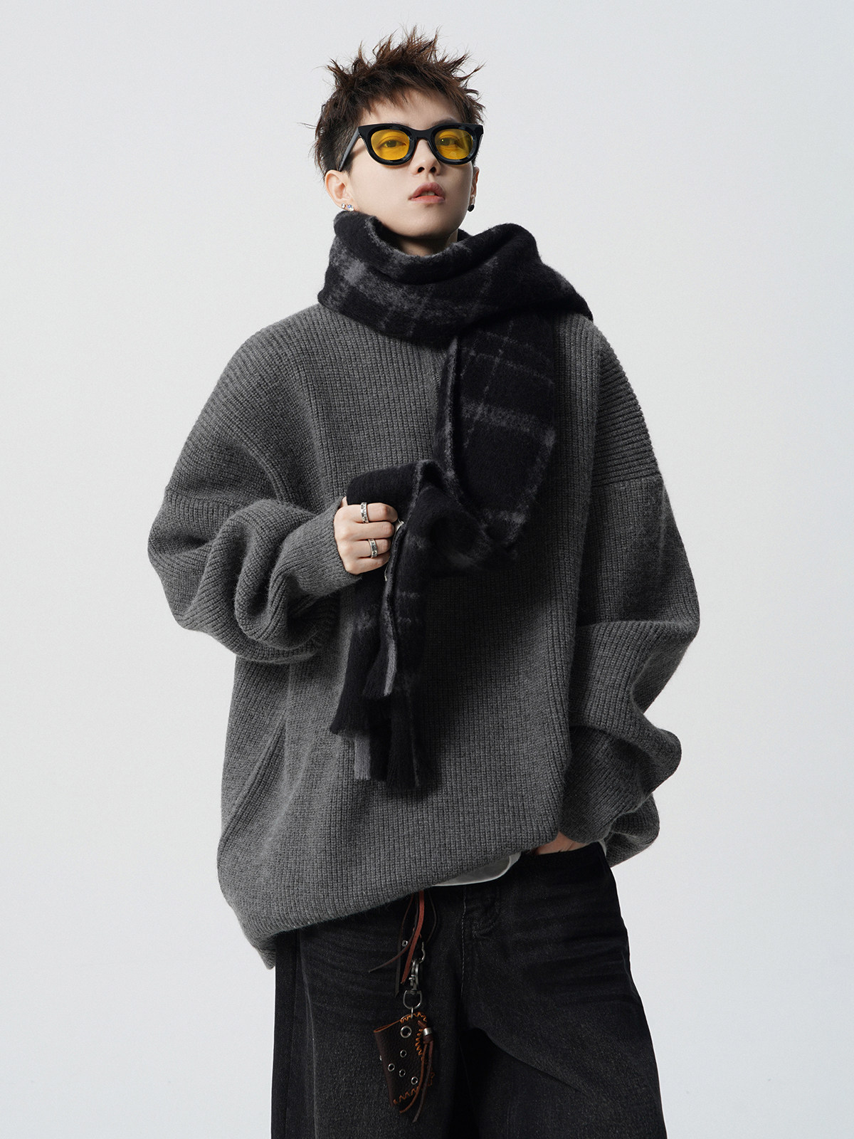 潮牌半拉链毛衣外套男冬季美式慵懒风情侣针织衫oversize百搭线衣