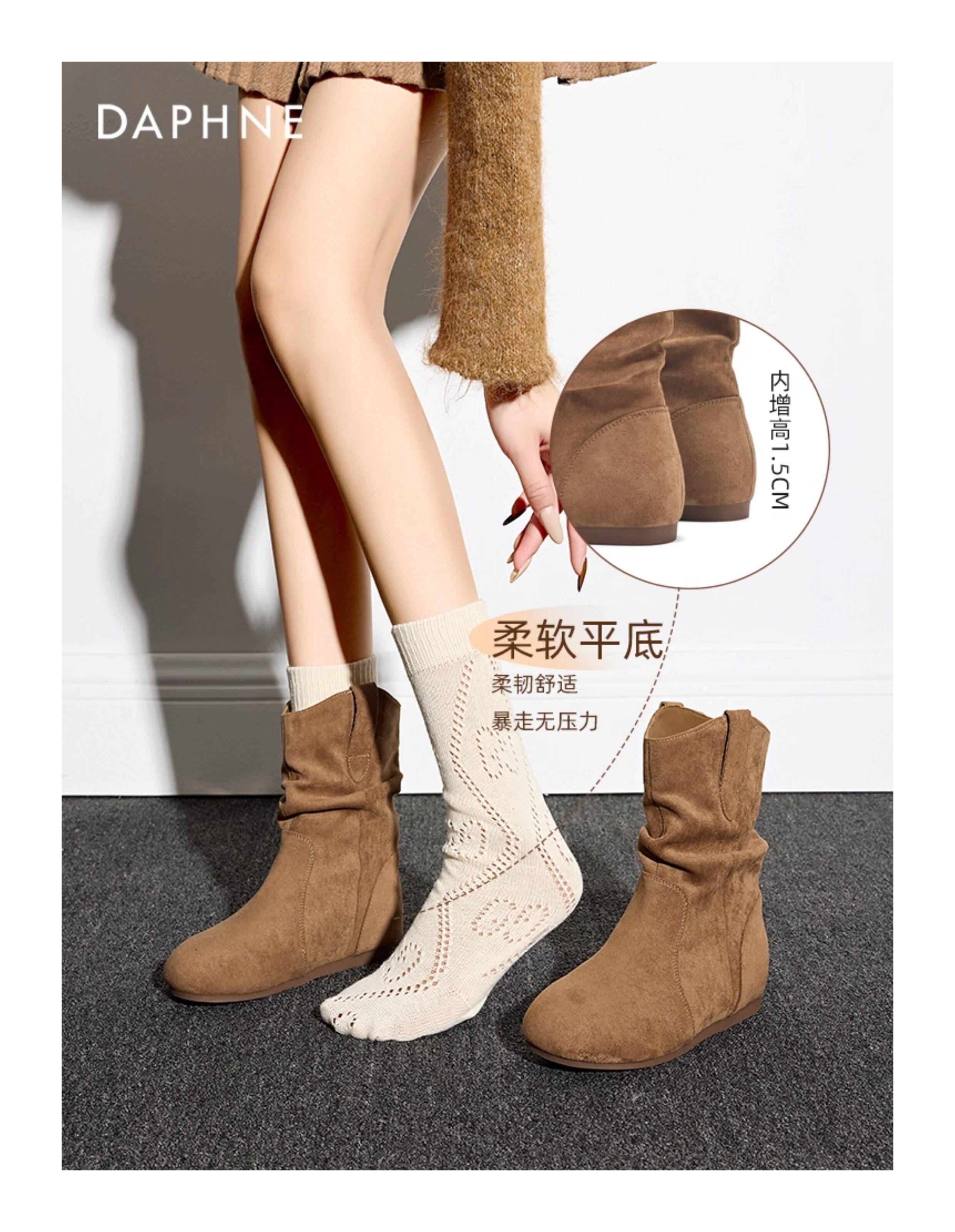 达芙妮内增高勃肯短靴女鞋靴子2026新款冬季爆款鞋子堆堆靴巨好看