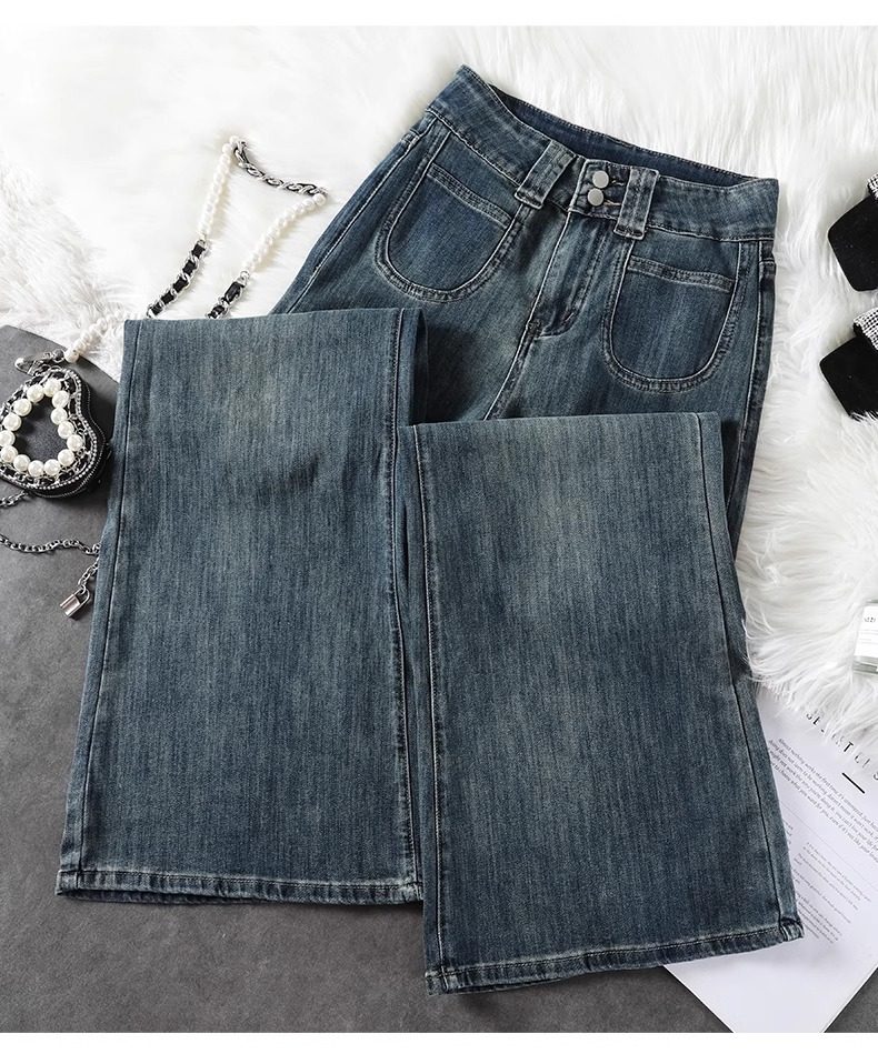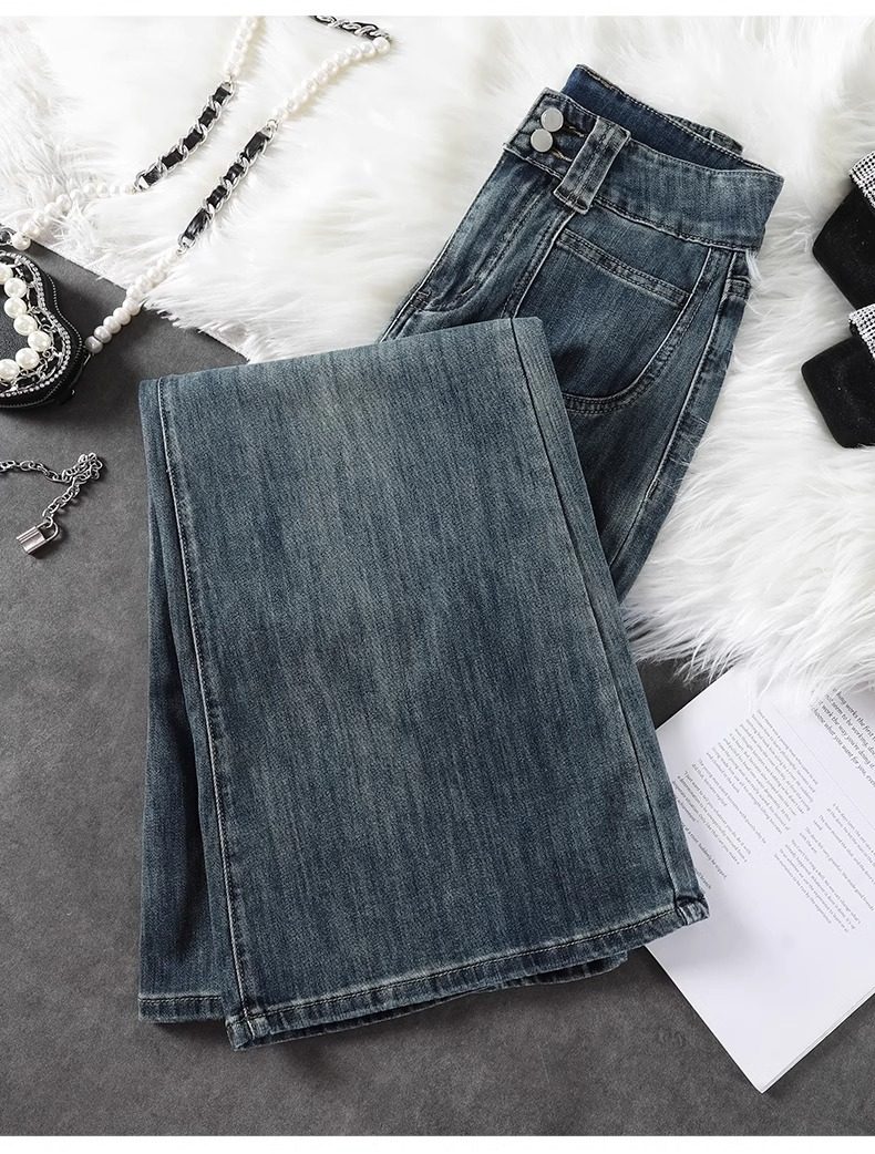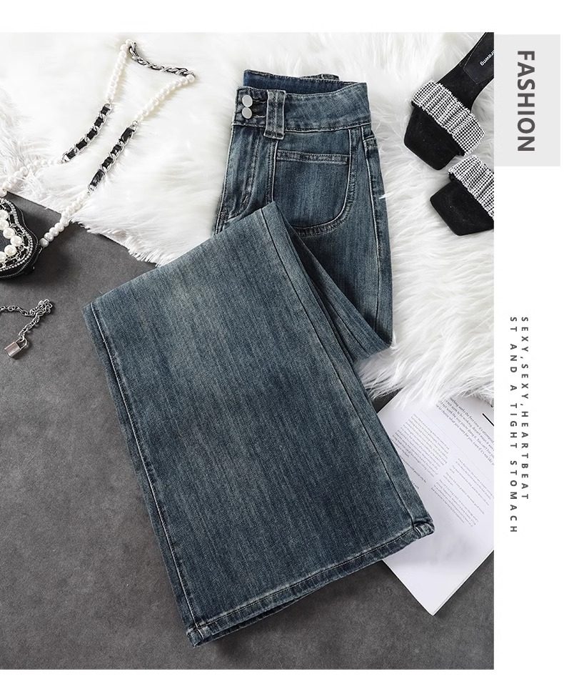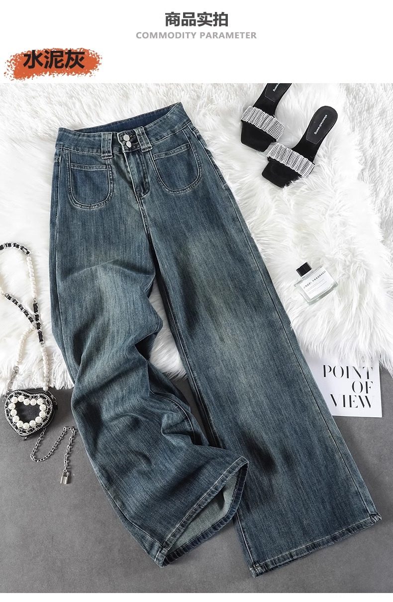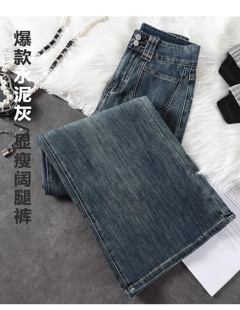 韩国阔腿牛仔裤女春秋季2025新款高腰显瘦宽松爆款水泥灰直筒裤子