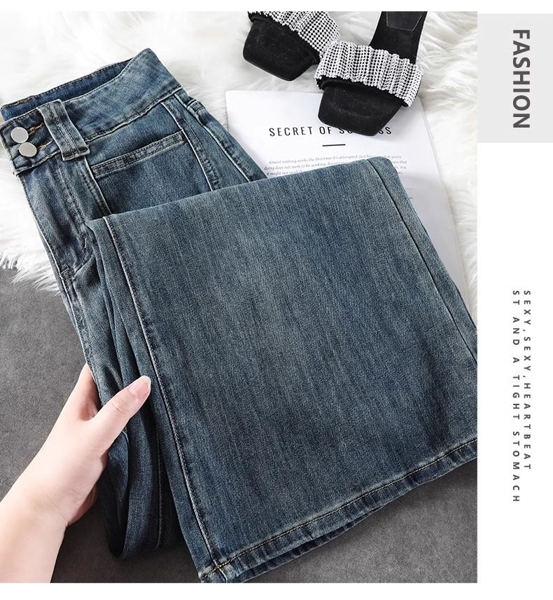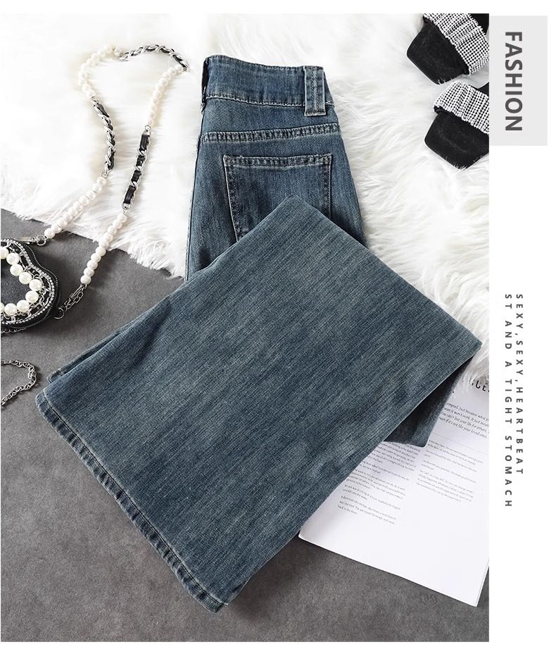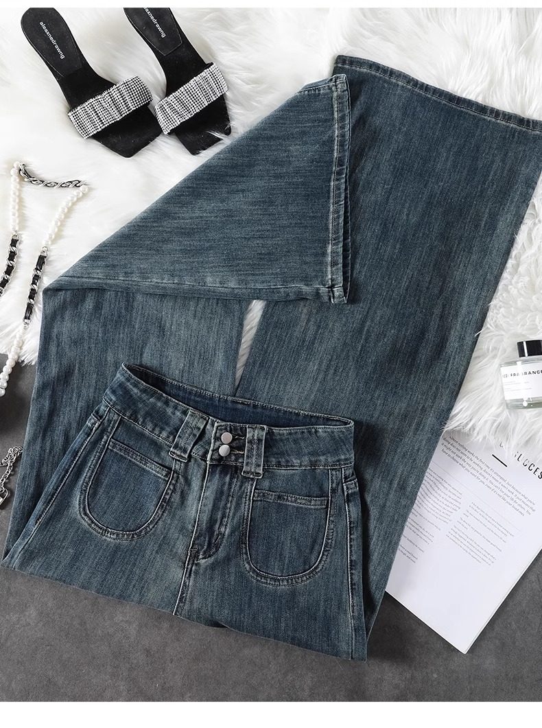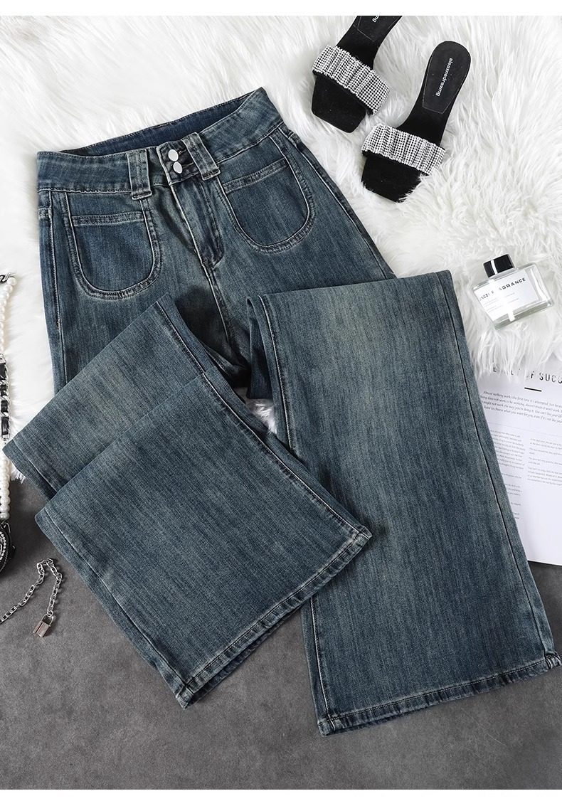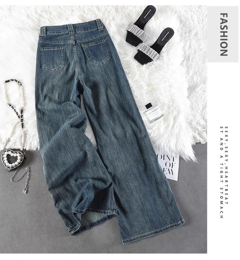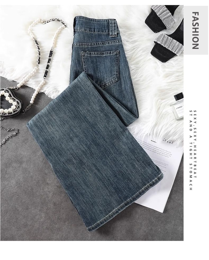 韩国阔腿牛仔裤女春秋季2025新款高腰显瘦宽松爆款水泥灰直筒裤子