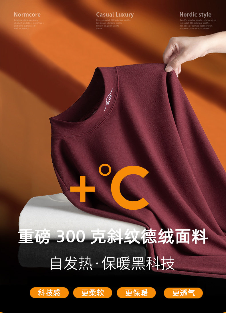 德绒卫衣男秋冬发热内搭半高领保暖打底衫胖子加肥加大码长袖t恤