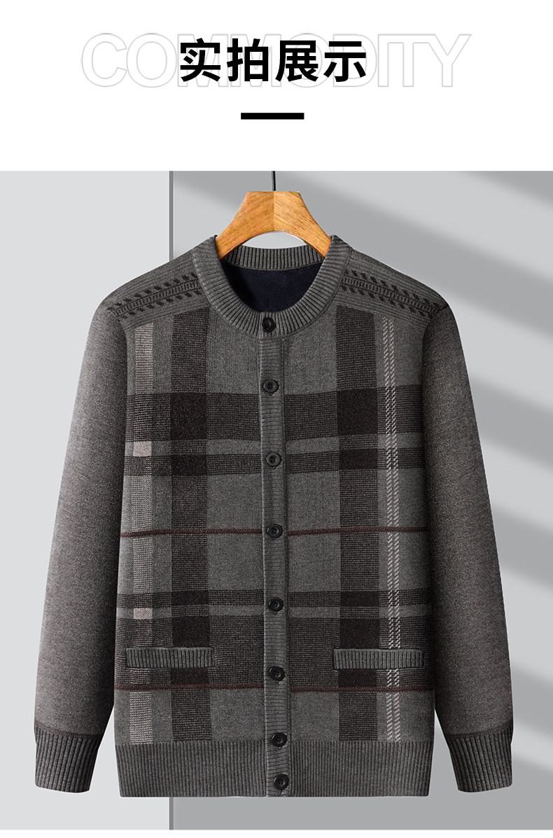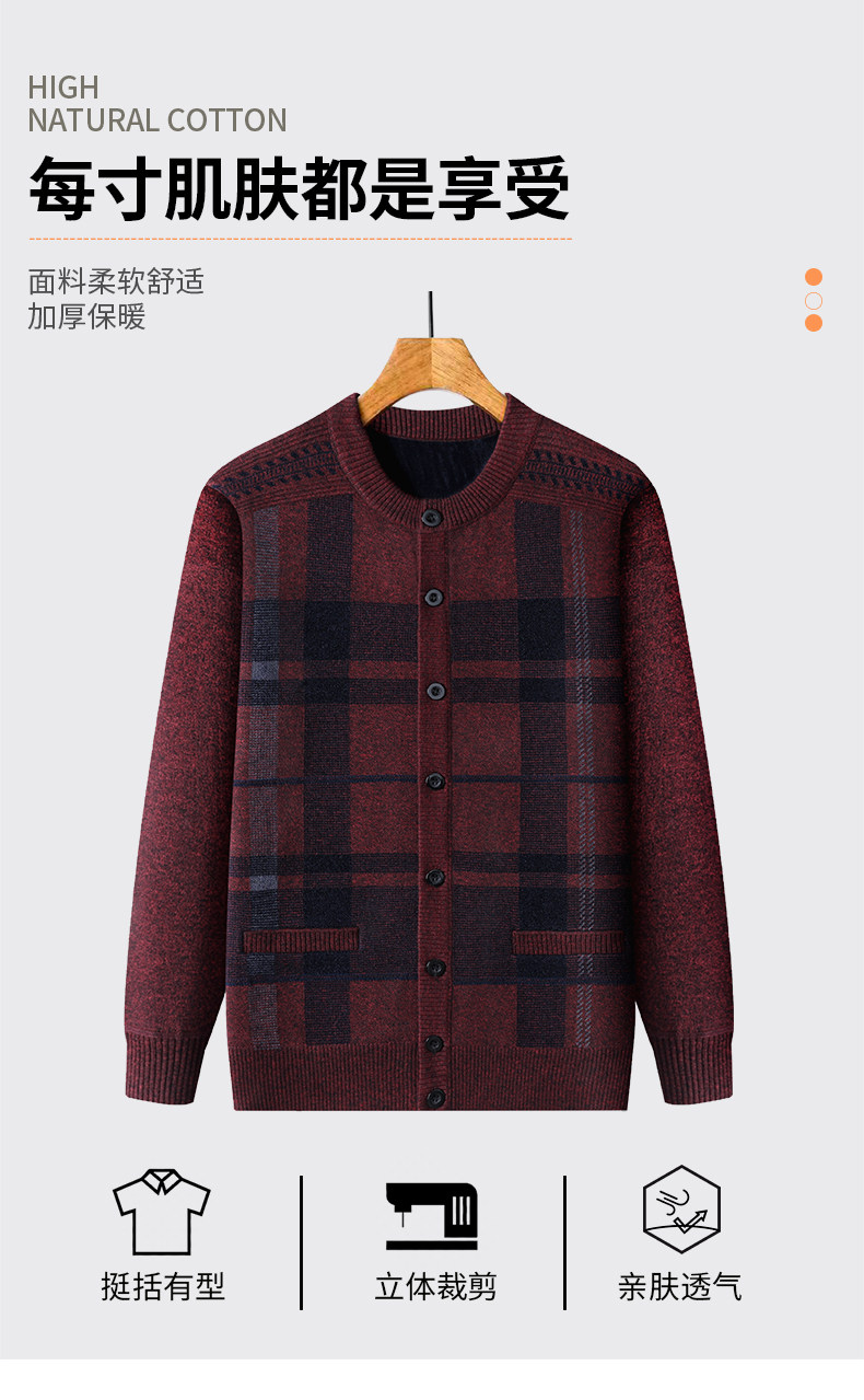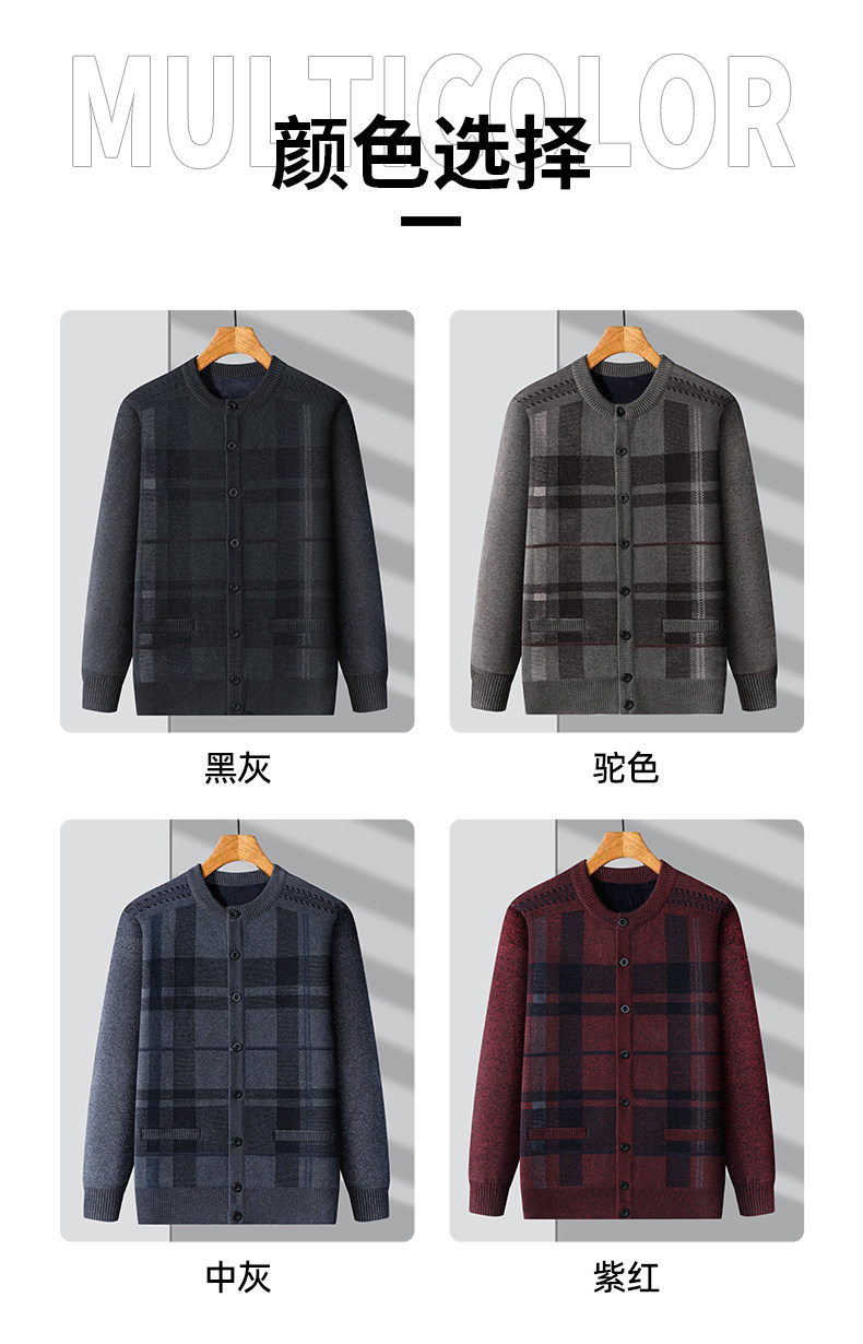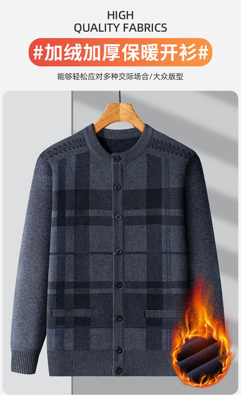 恒源祥中老年针织开衫男2025新款秋冬保暖毛衣加绒加厚爸爸装外套