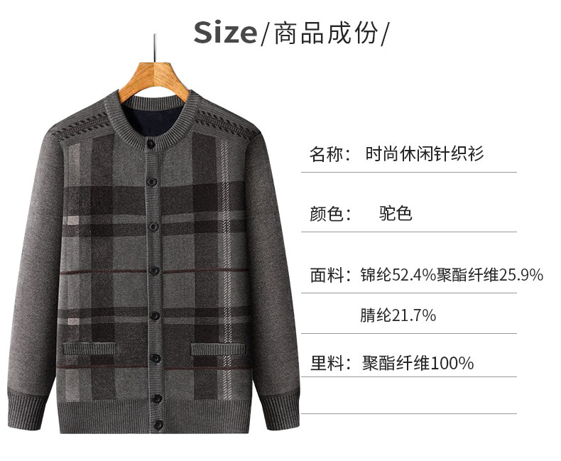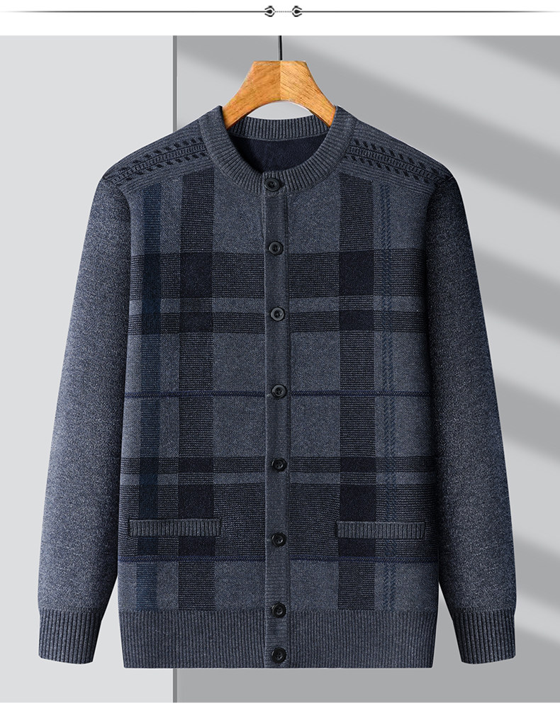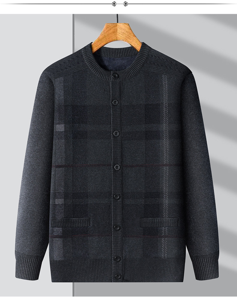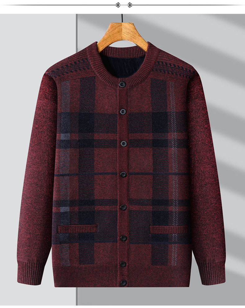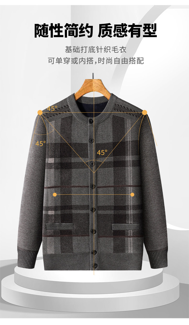 恒源祥中老年针织开衫男2025新款秋冬保暖毛衣加绒加厚爸爸装外套