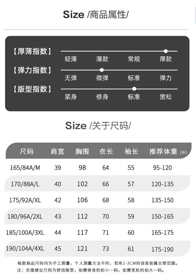 尺码 165/M,170/L,175/XL,180/2XL,185/3XL,190/4XL