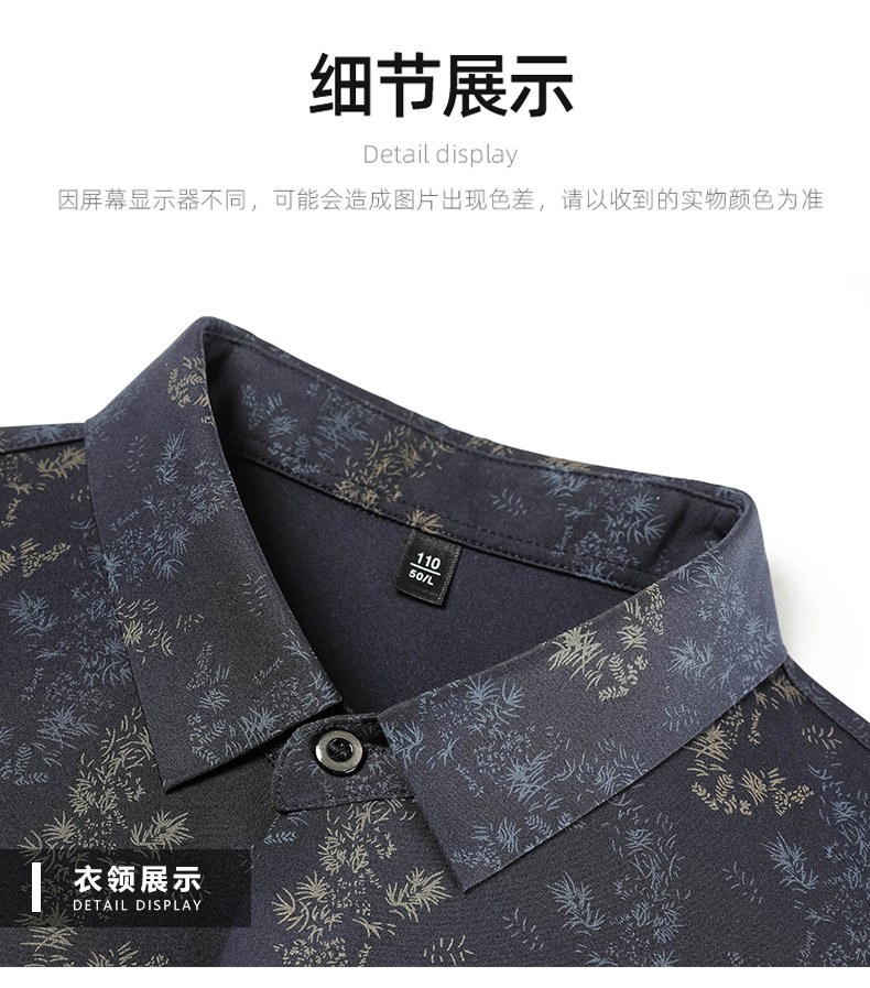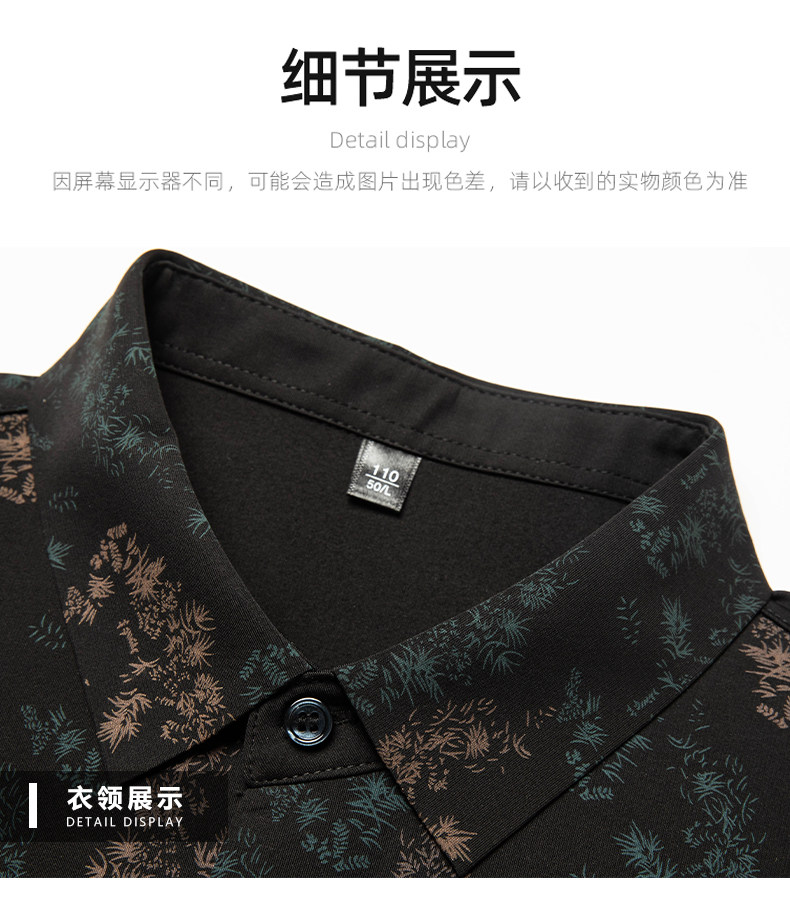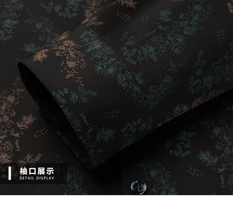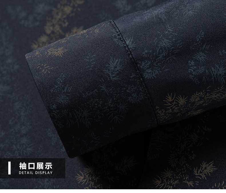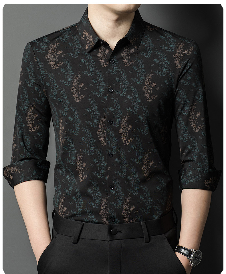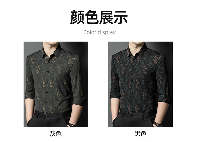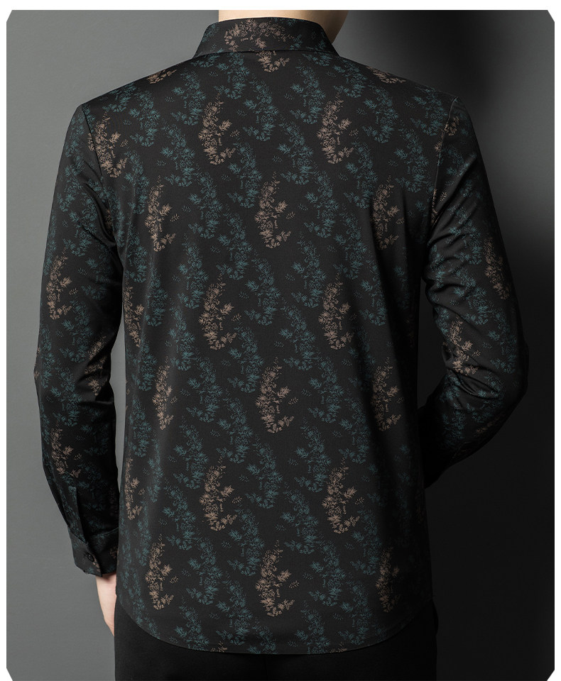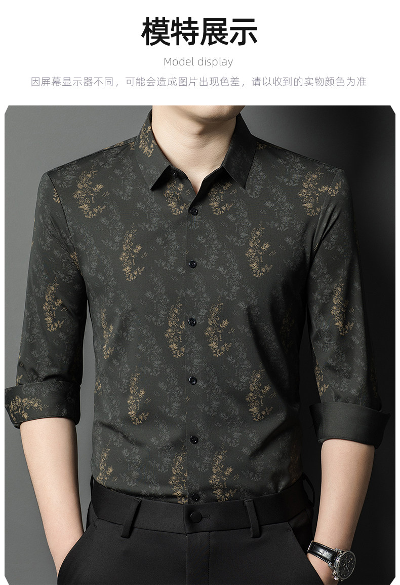 皮尔卡丹长袖衬衫春秋季新款中年时尚修身休闲免烫爸爸装印花衬衣