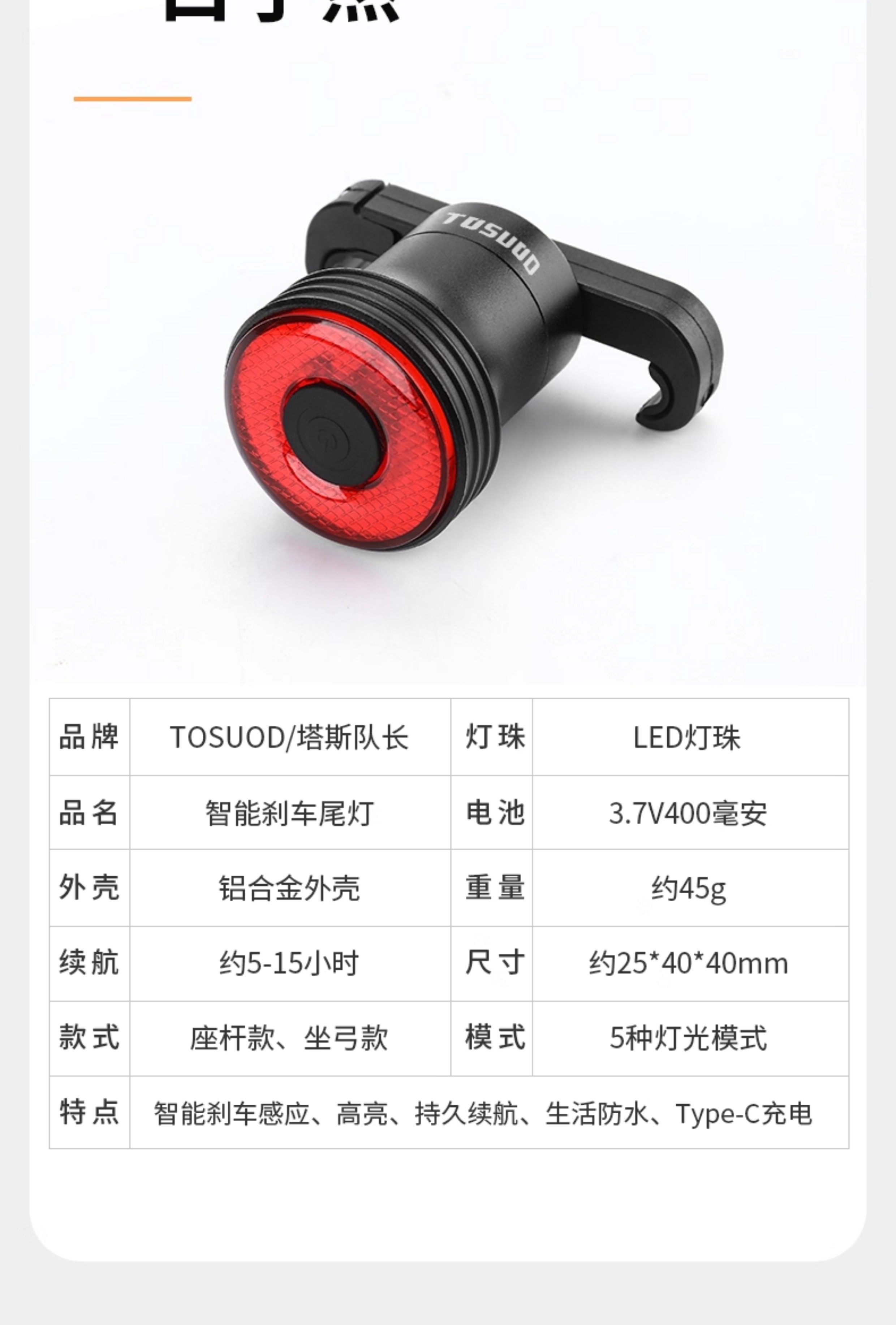 Велосипедный фонарь Captain Tas для горных дорог, перезаряжаемый, водонепроницаемый, с умным датчиком торможения, для ночной езды