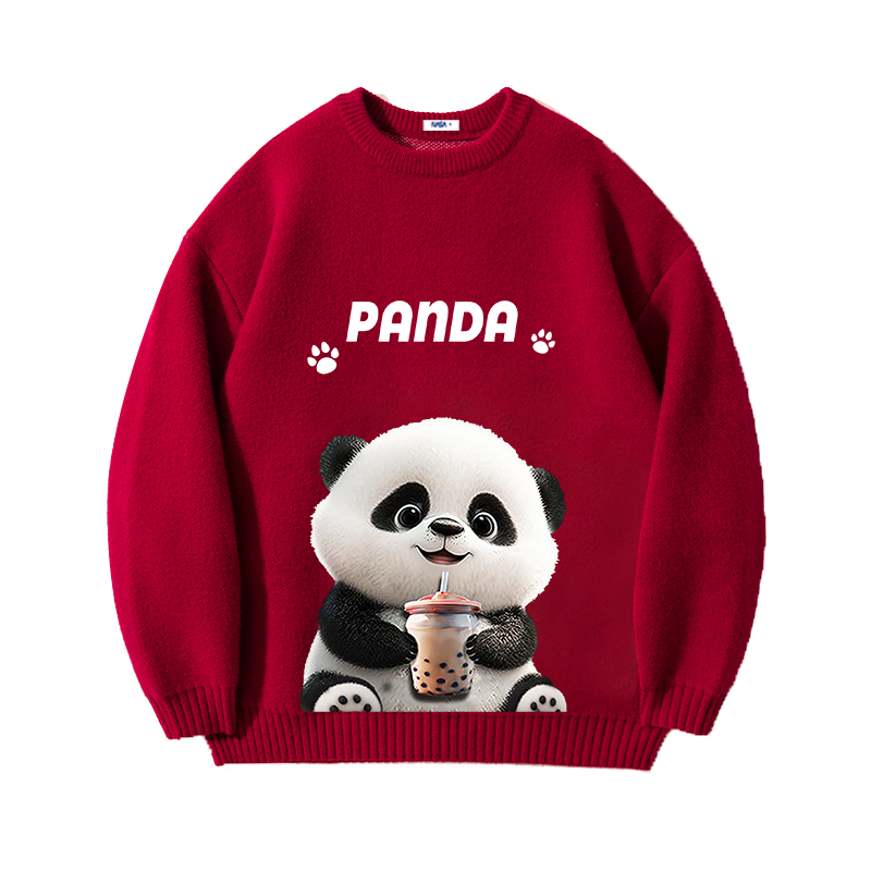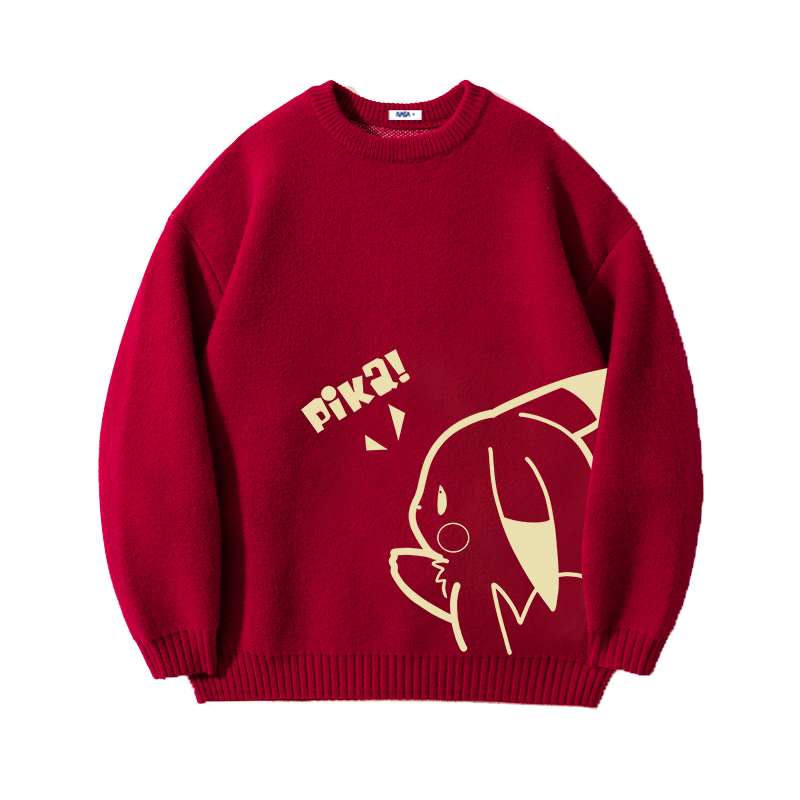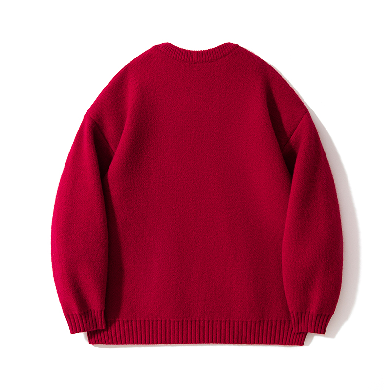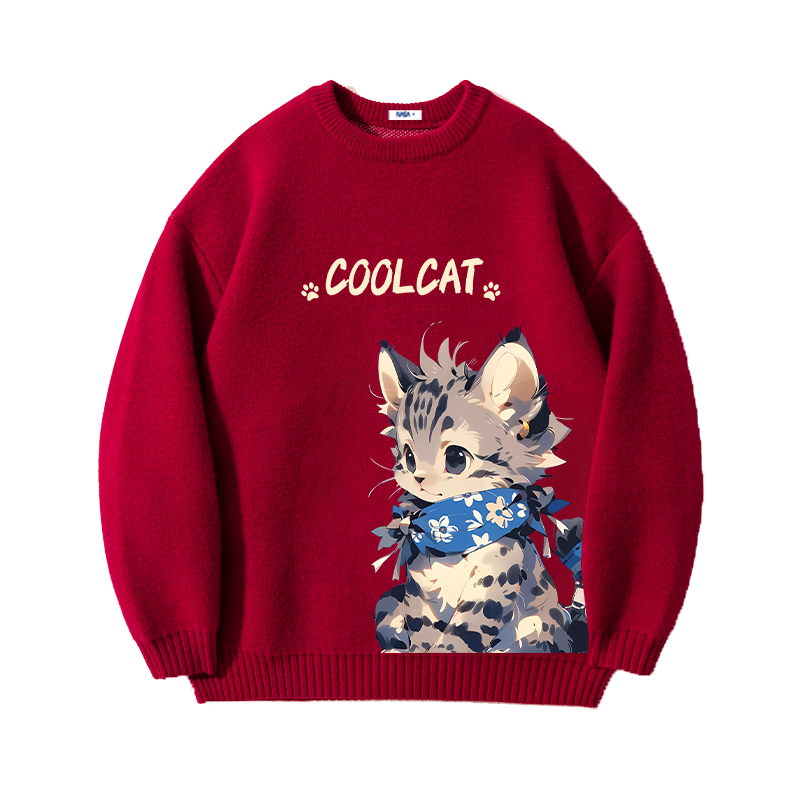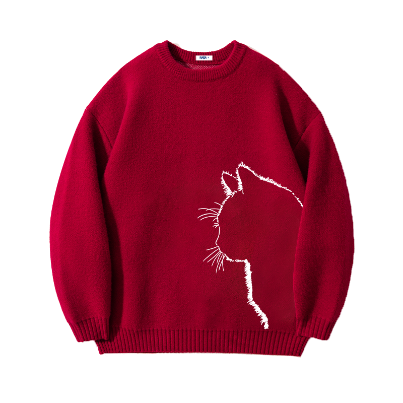 NASA酒红色内搭猫咪毛衣男女款2025秋冬慵懒风情侣百搭针织衫外套