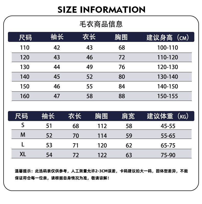 尺码 S,M,L,XL,110,120,130,140,150,160