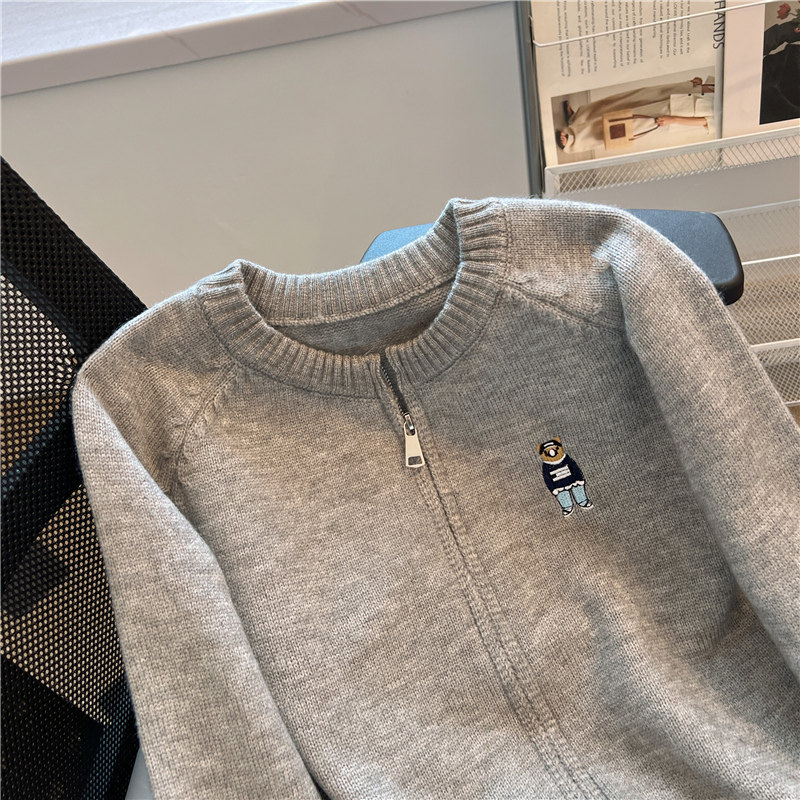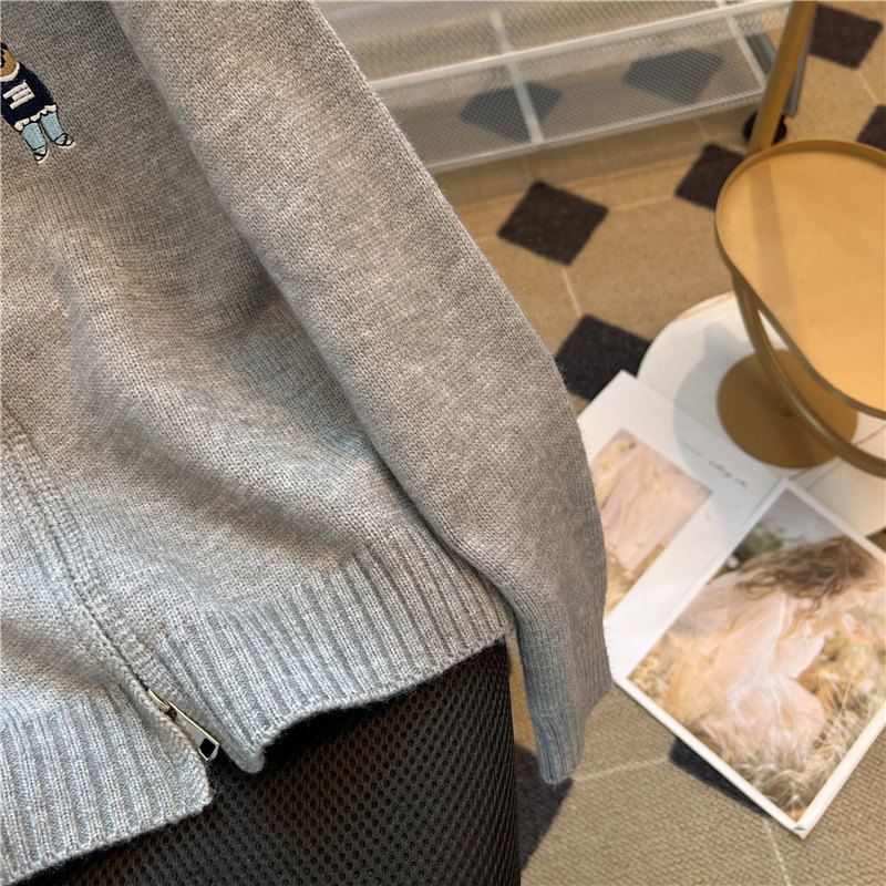 自留款推荐~慵懒风小熊刺绣针织开衫女新款双拉链软糯毛衣外套潮