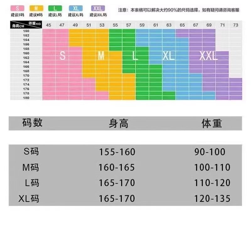 China (cm) 160-165/84-86 165-170 / 88-90 167-172 / 92-96 168-173 / 98-102 170-176 / 106-110