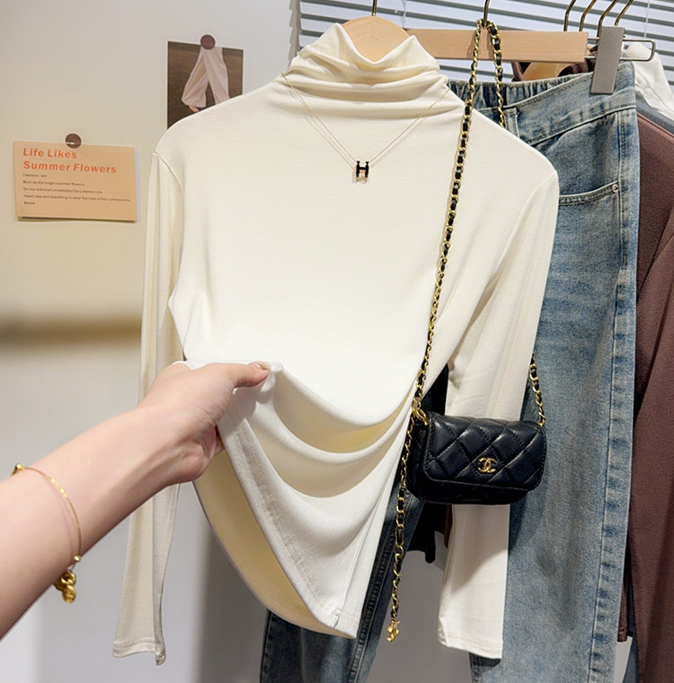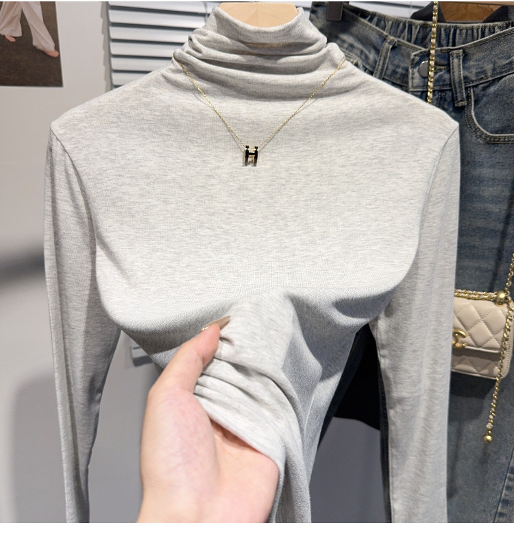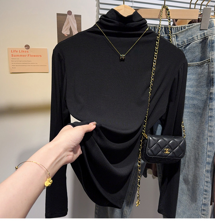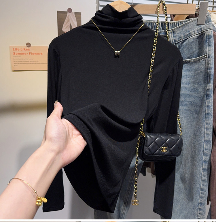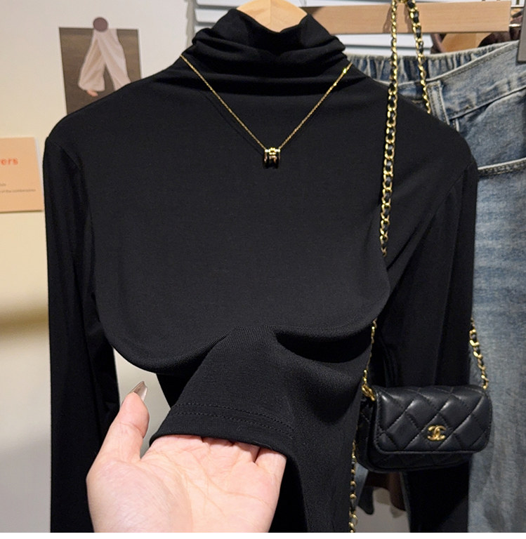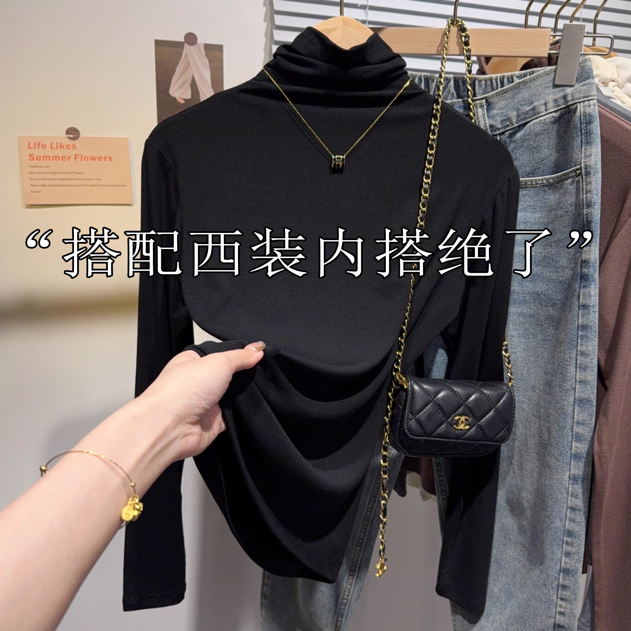 秋冬保暖高领打底衫女内搭2024新款修身舒适软糯长袖T恤黑色上衣