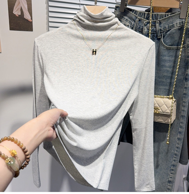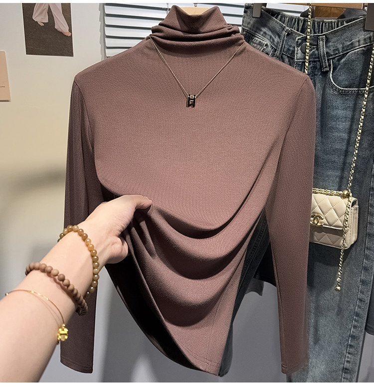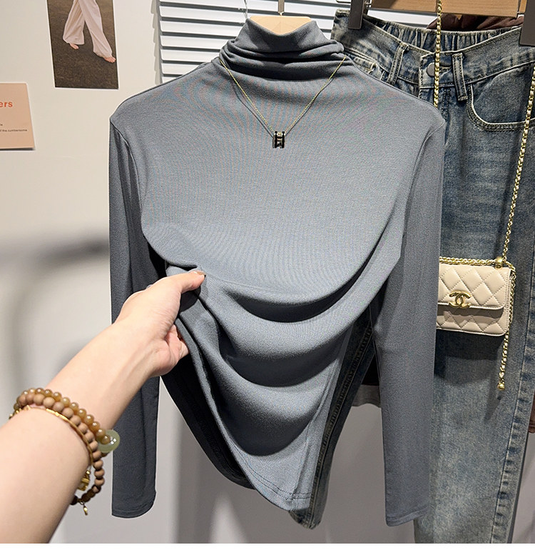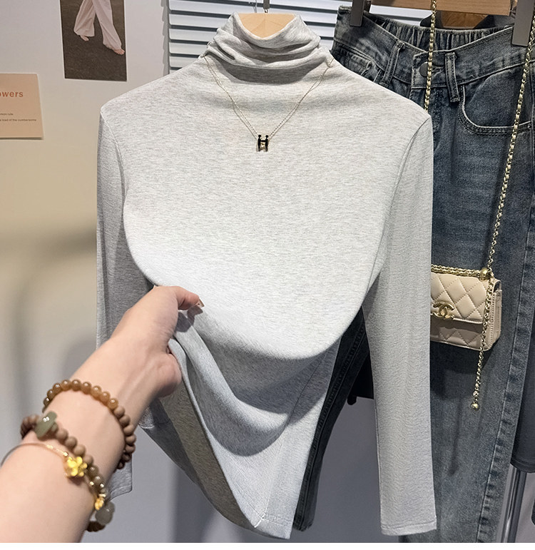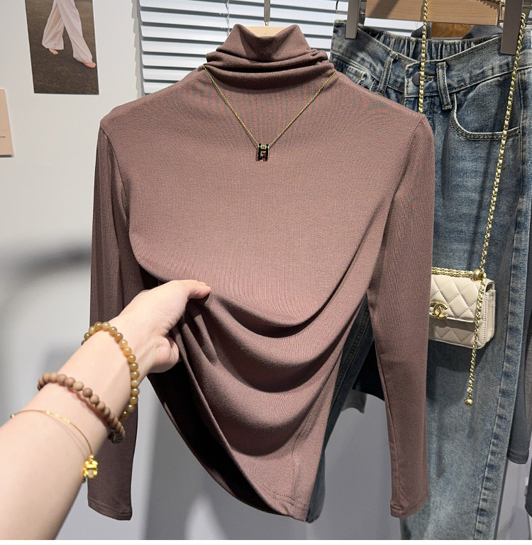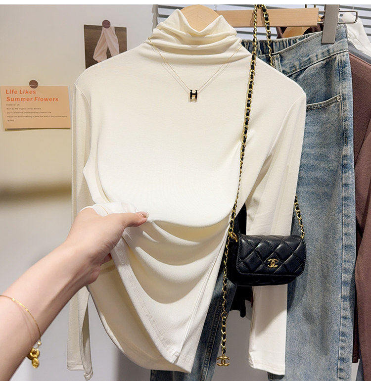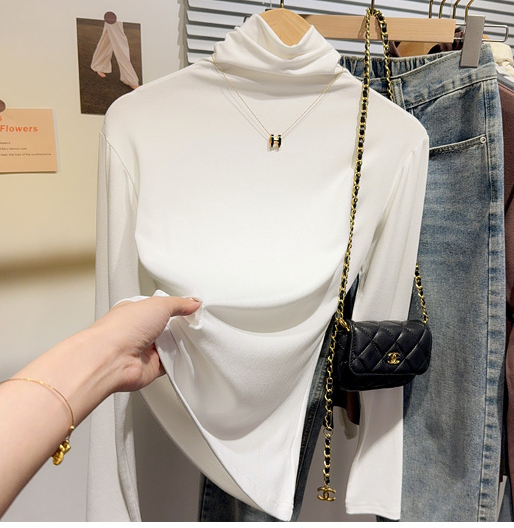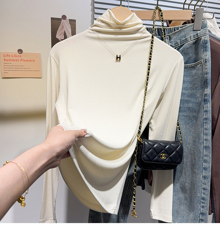 秋冬保暖高领打底衫女内搭2024新款修身舒适软糯长袖T恤黑色上衣