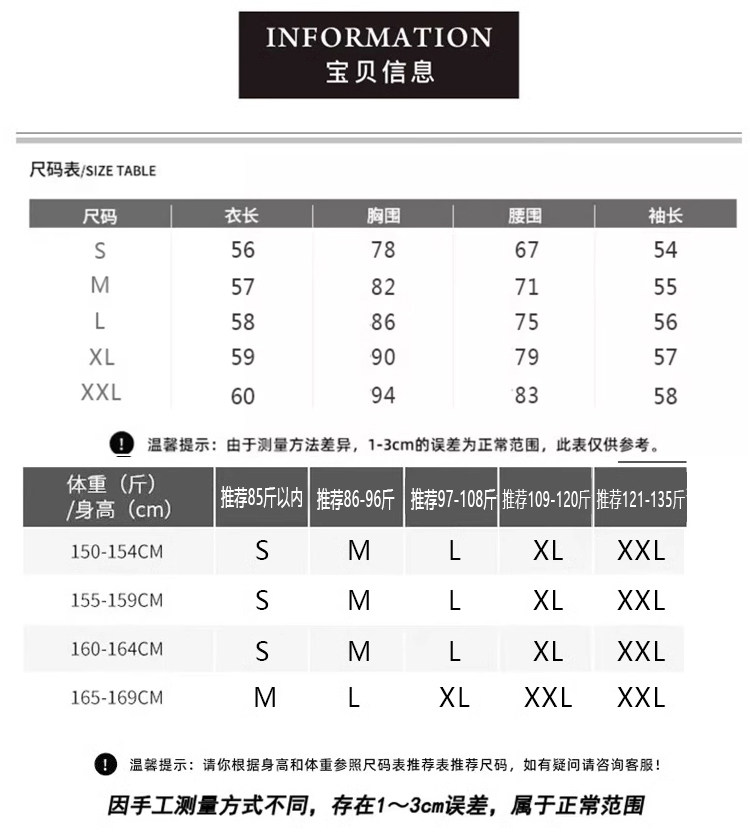 China (cm) 160-165/84-86 165-170 / 88-90 167-172 / 92-96 168-173 / 98-102 170-176 / 106-110