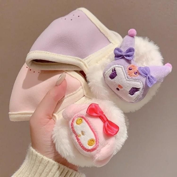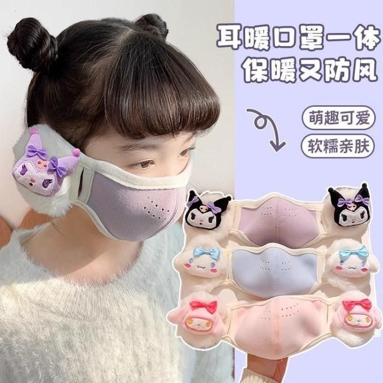 库洛米儿童保暖口罩耳罩一体女童防寒护耳加绒厚面罩保暖透气款ly