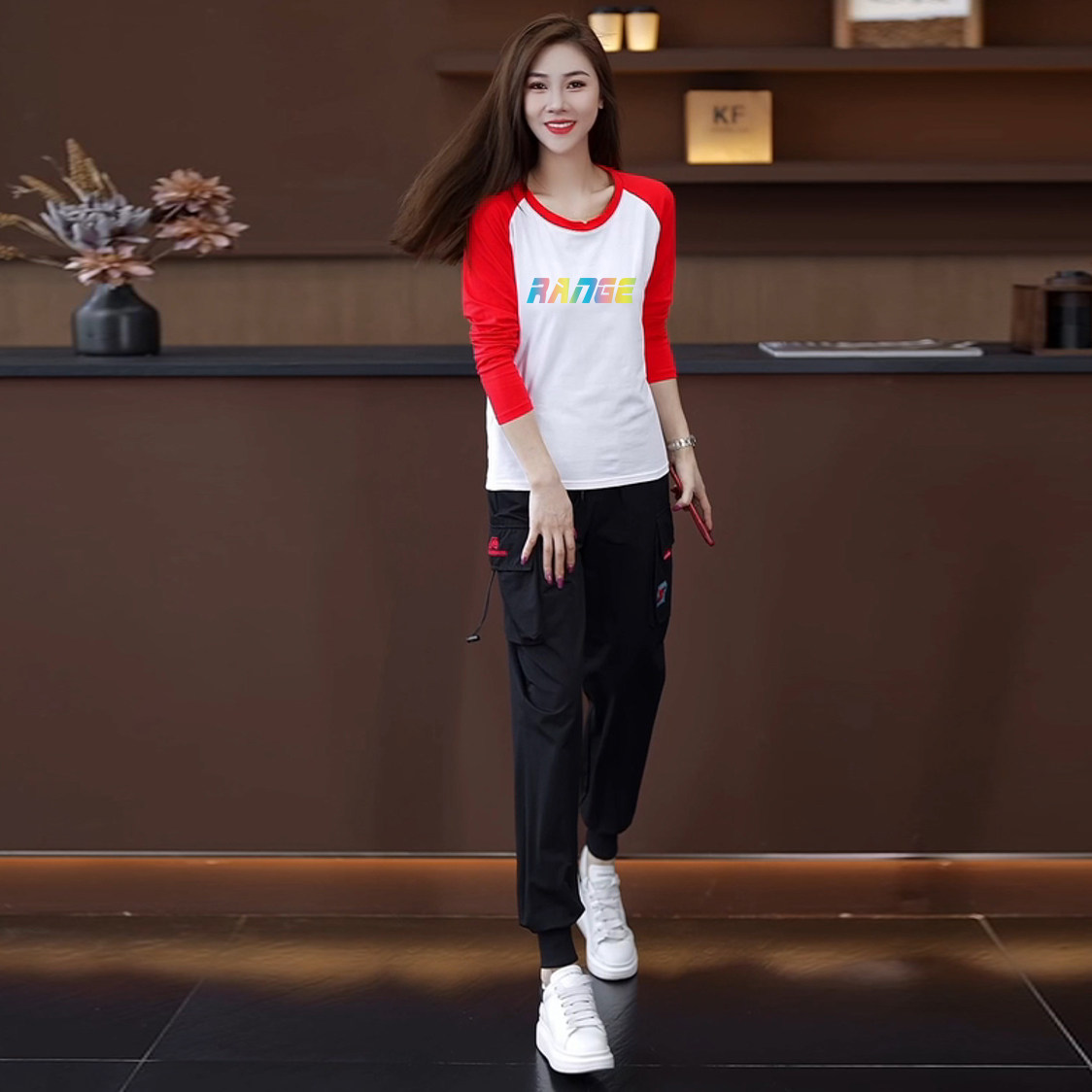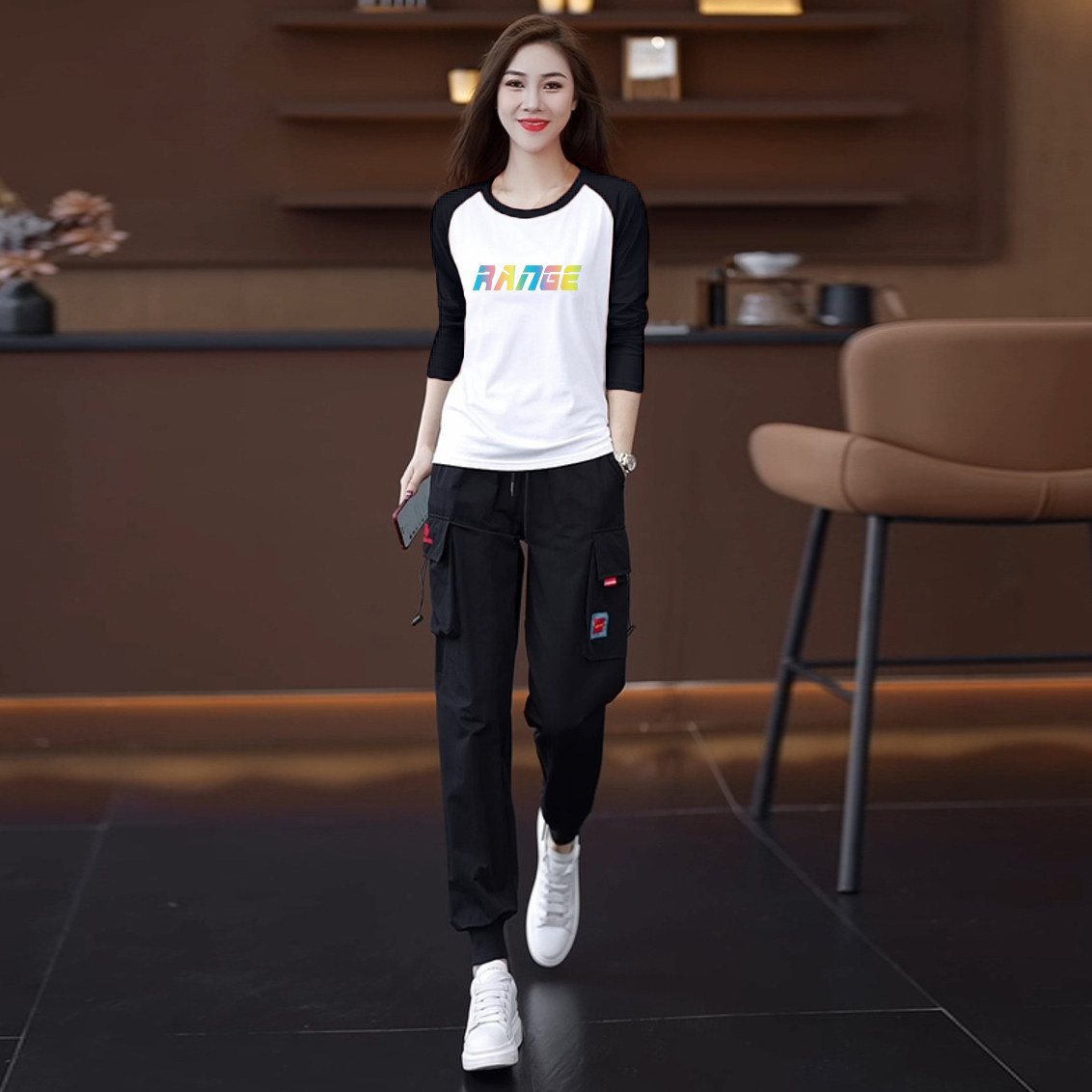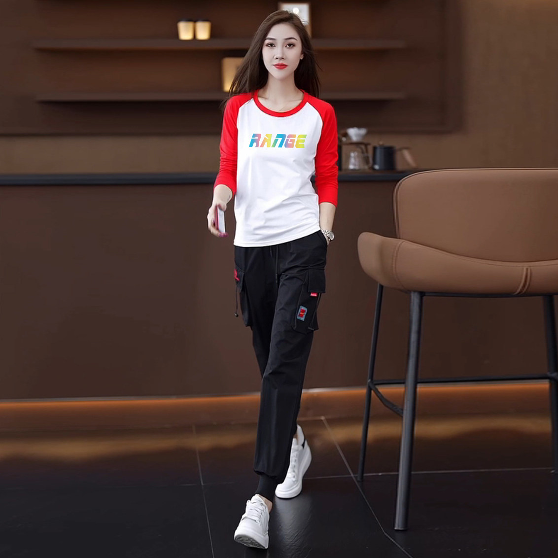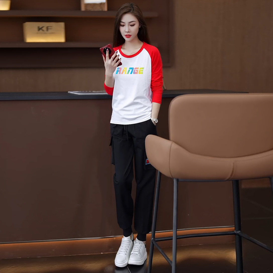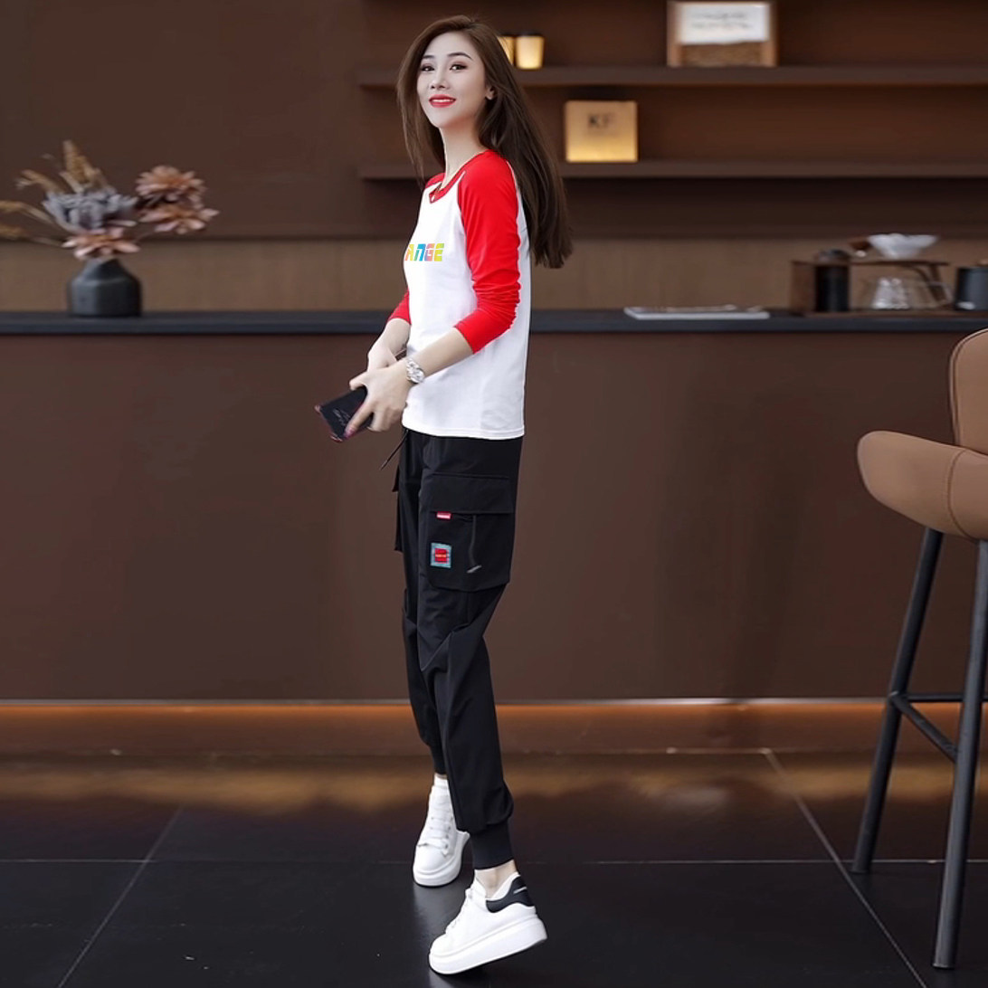 颜色分类 15黑色裤+446白黑长袖两件套,15黑色裤+446白红长袖两件套,15黑色裤+446白蓝长袖两件套,15黑色裤,446白黑长袖,446白红长袖,446白蓝长袖