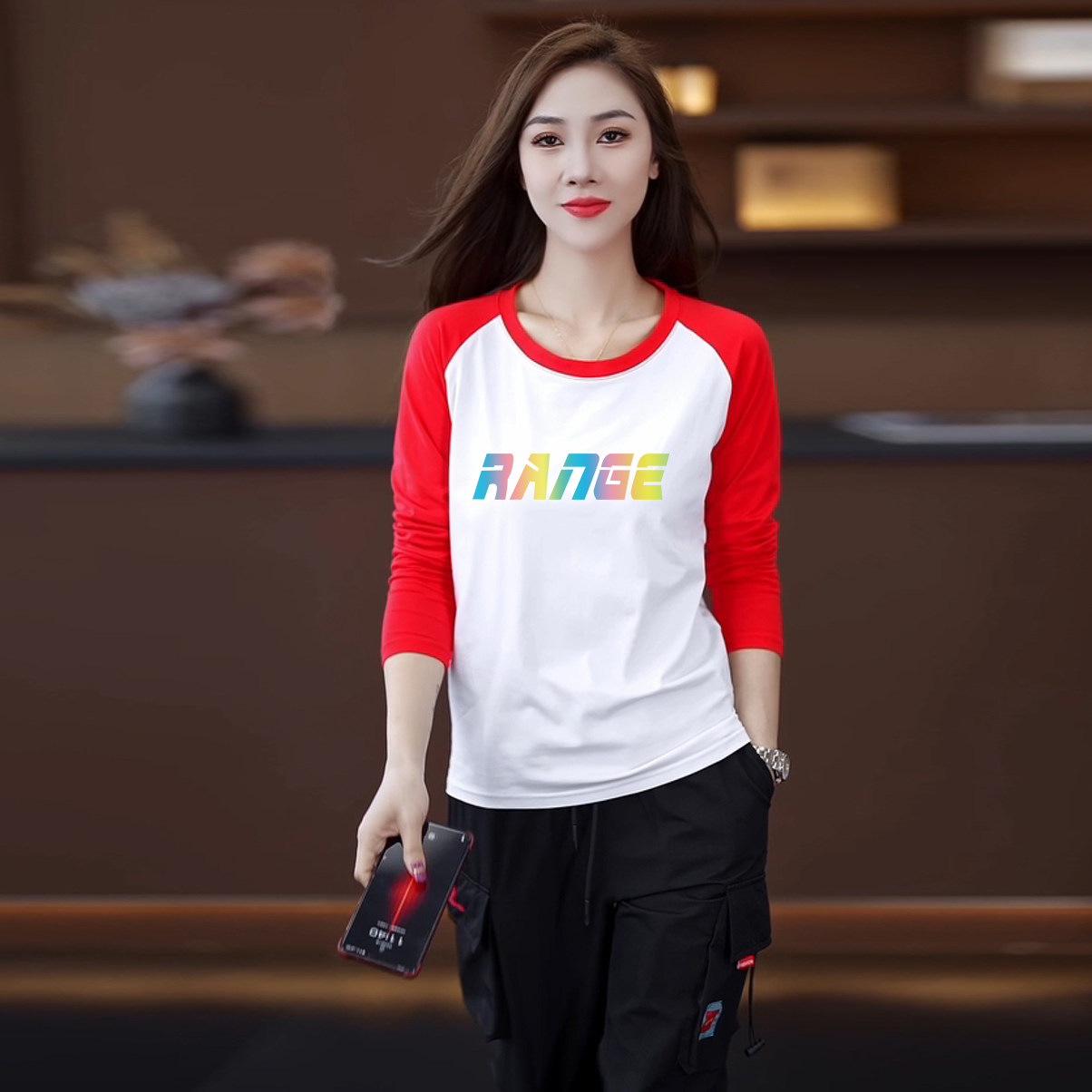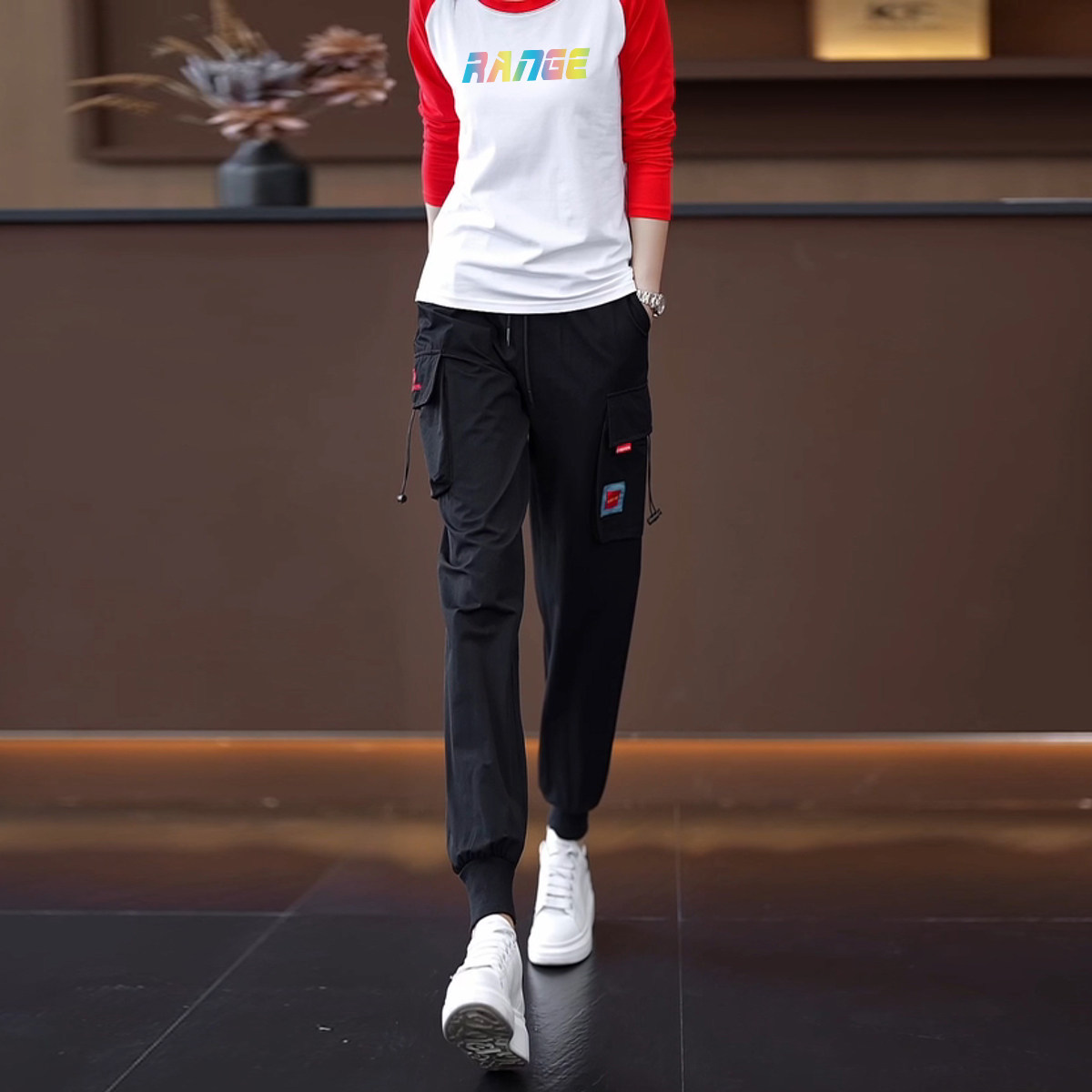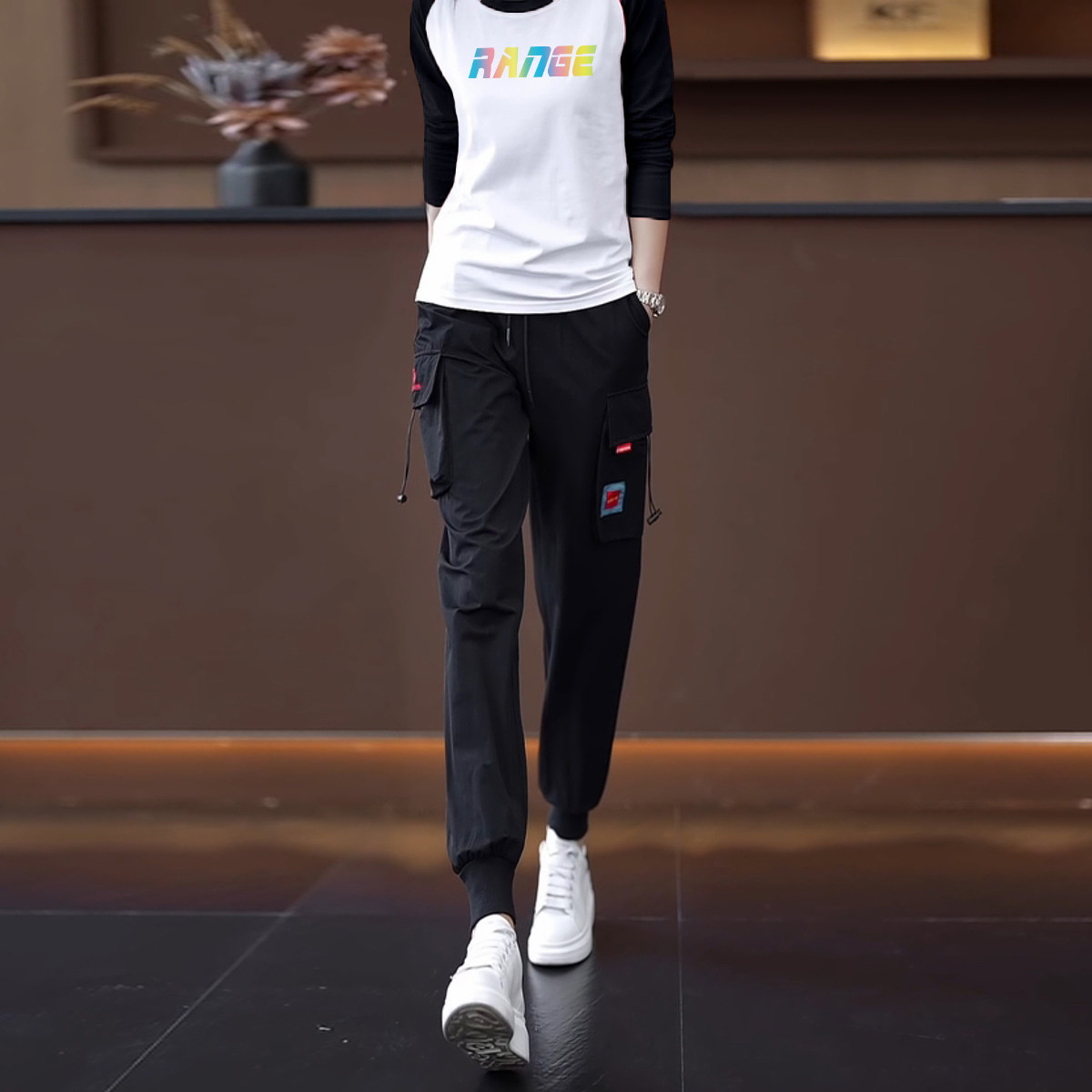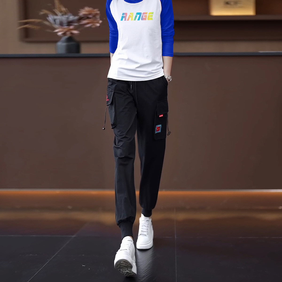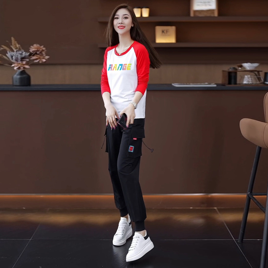 颜色分类 15黑色裤+446白黑长袖两件套,15黑色裤+446白红长袖两件套,15黑色裤+446白蓝长袖两件套,15黑色裤,446白黑长袖,446白红长袖,446白蓝长袖