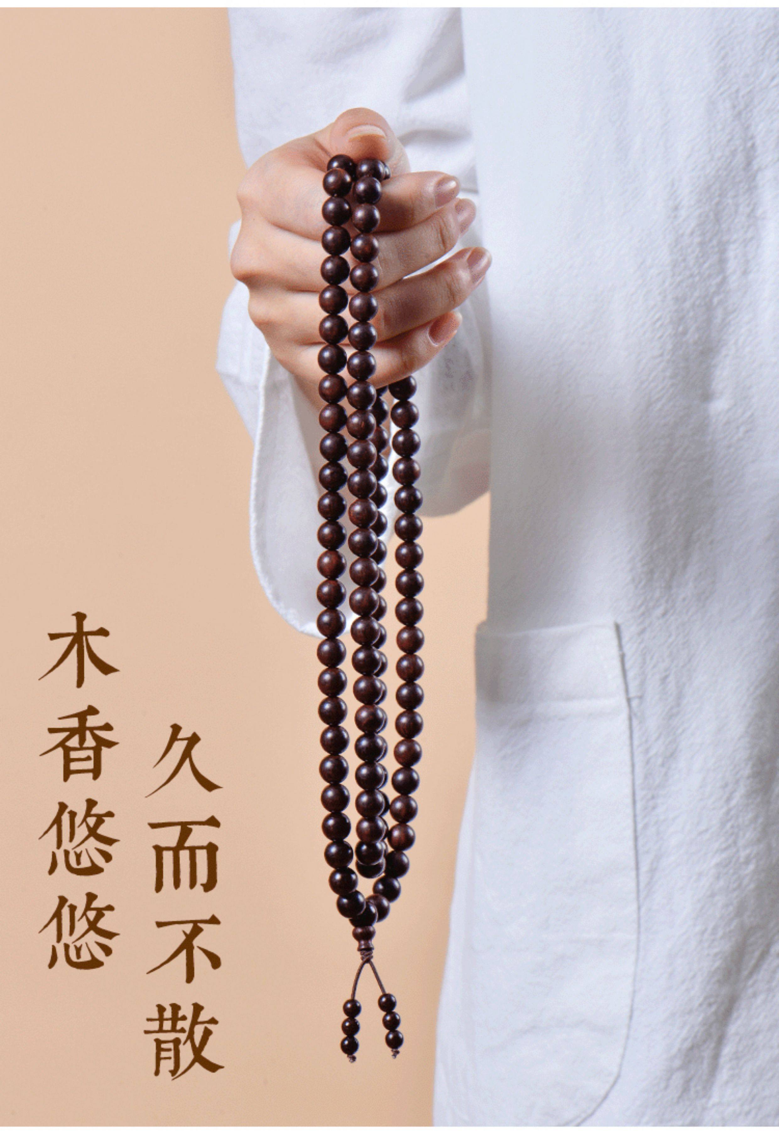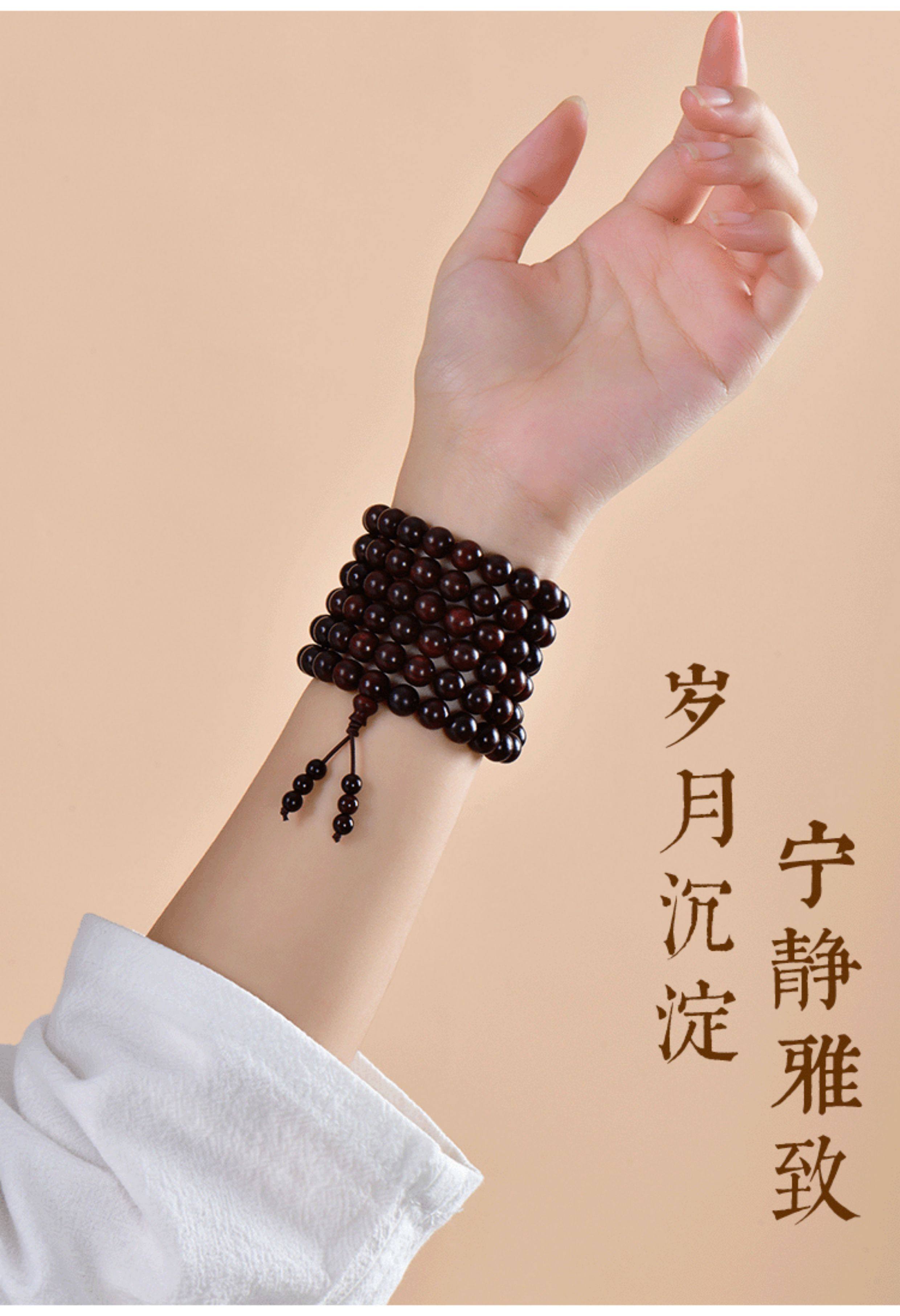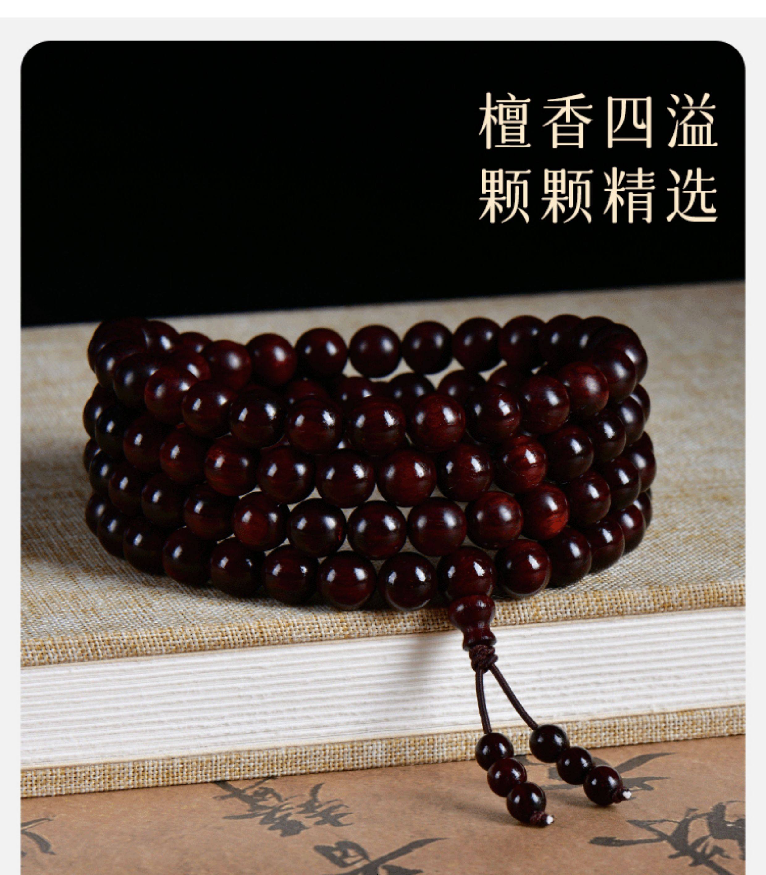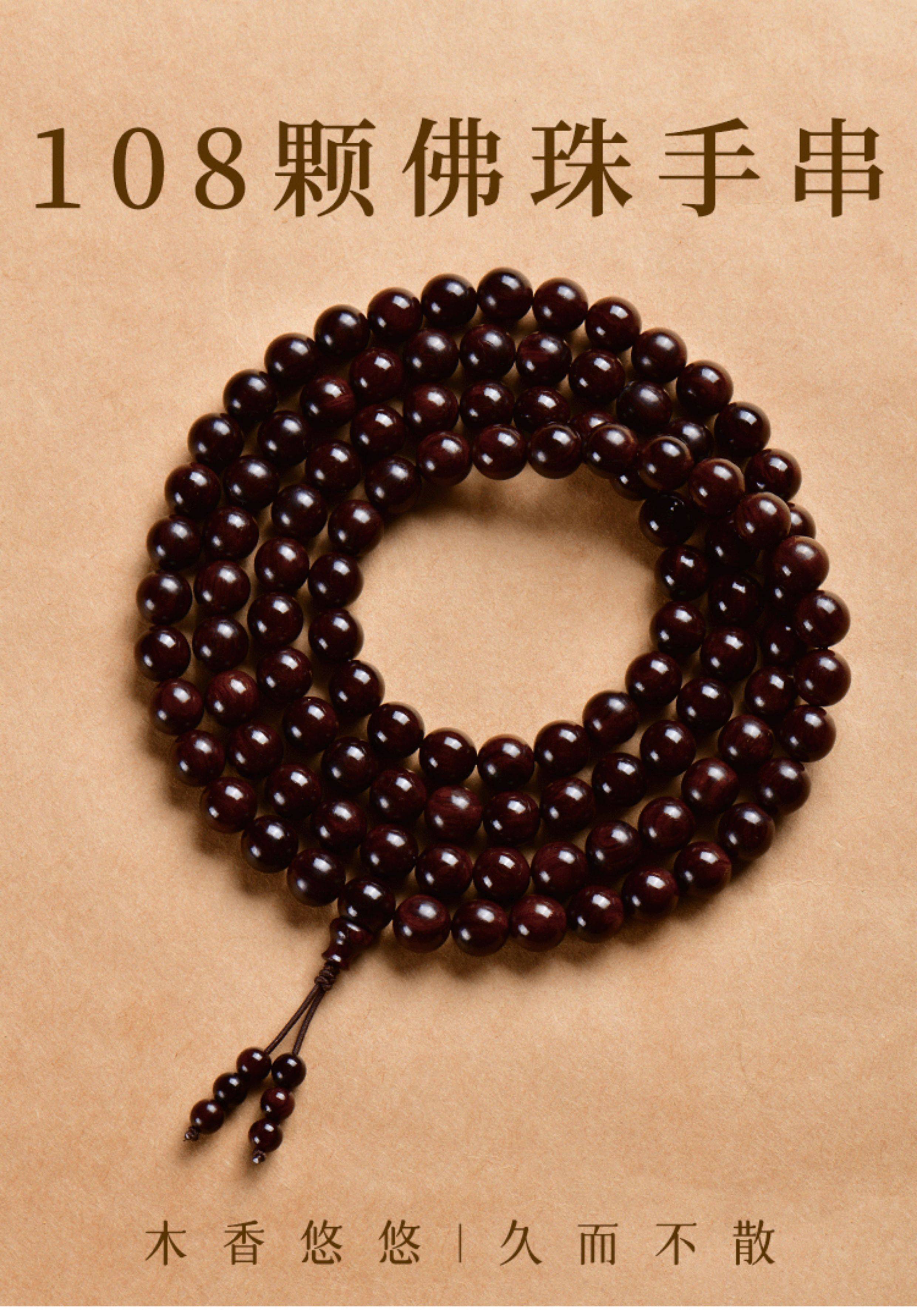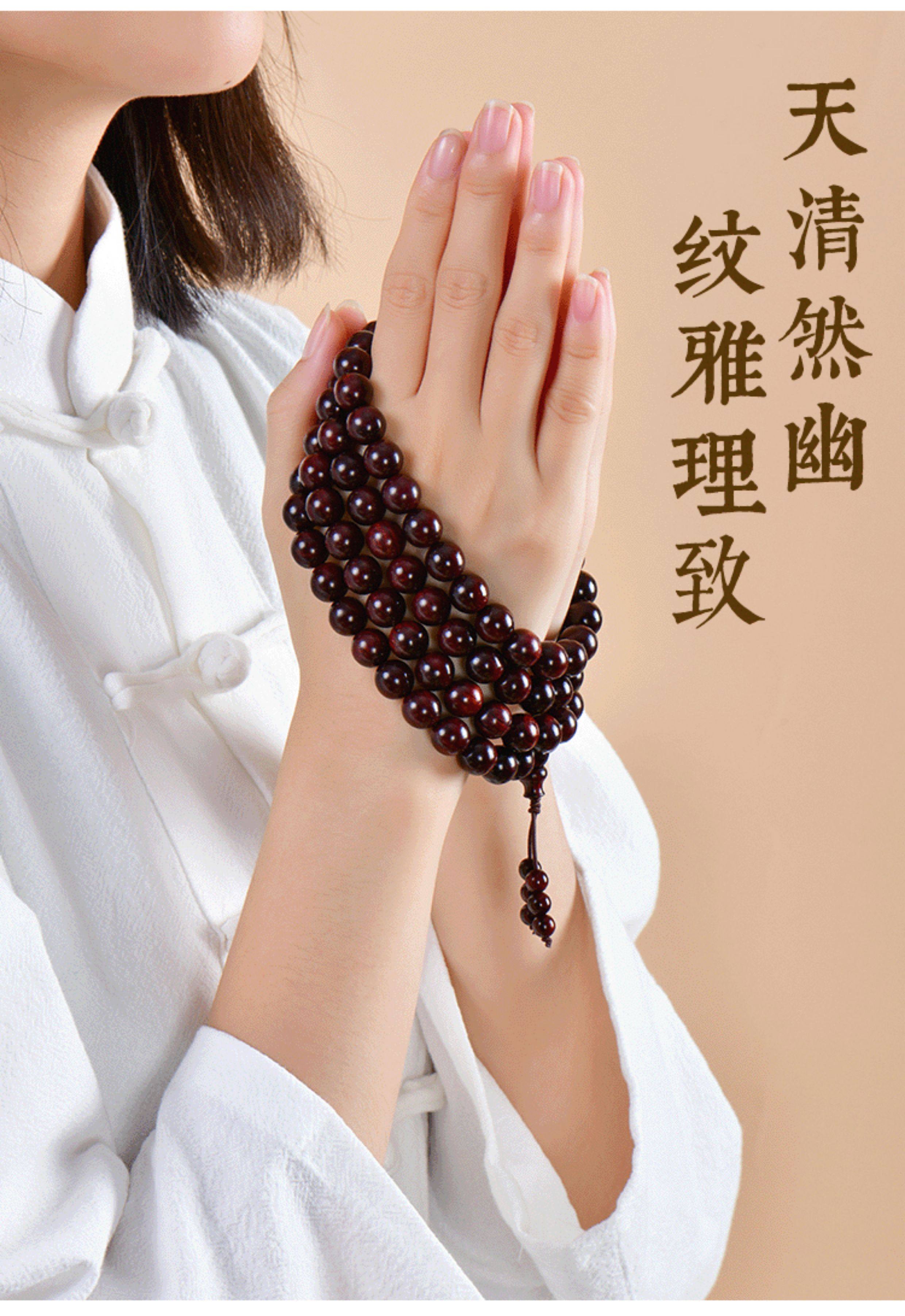 Natürliches kleines Blatt-Palisander-Armband für Frauen, 108 Perlen, hölzernes Sandelholz-Hand-Rosenkranz-Armband, Geburtstagsgeschenk für Männer