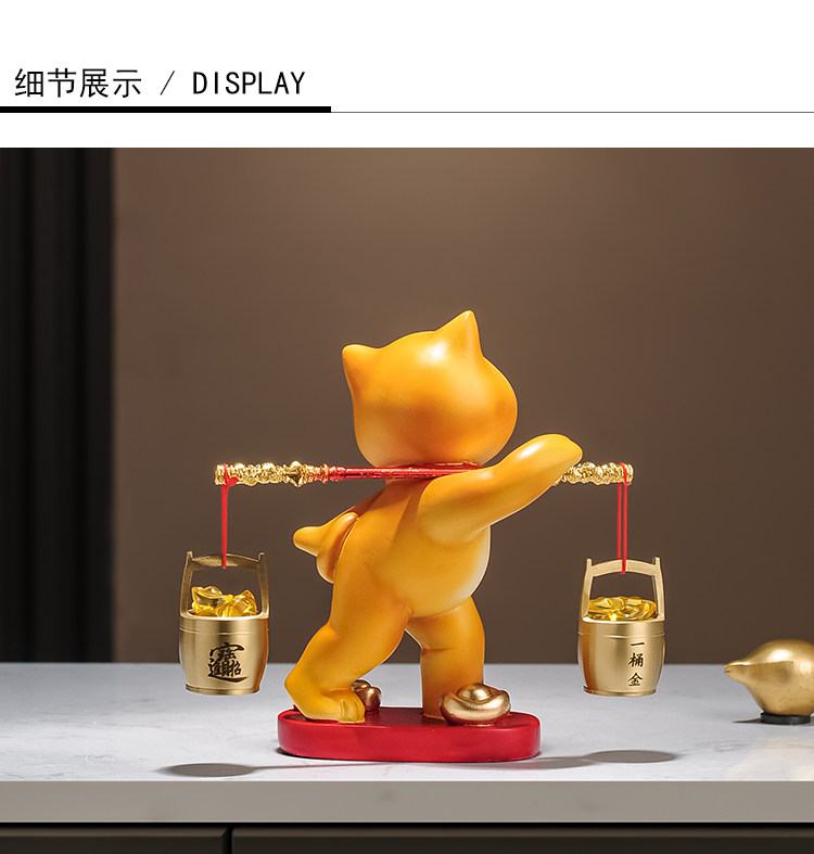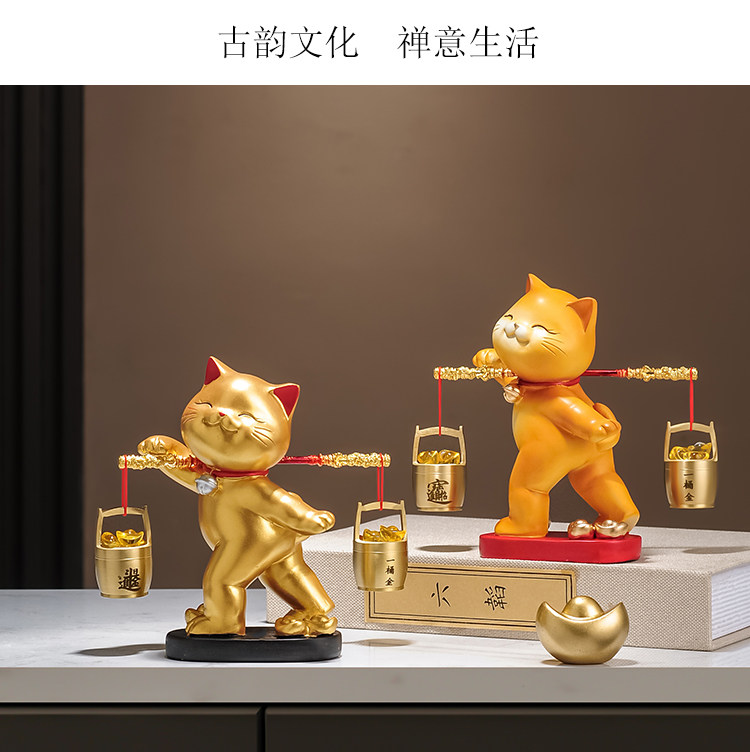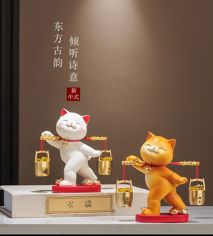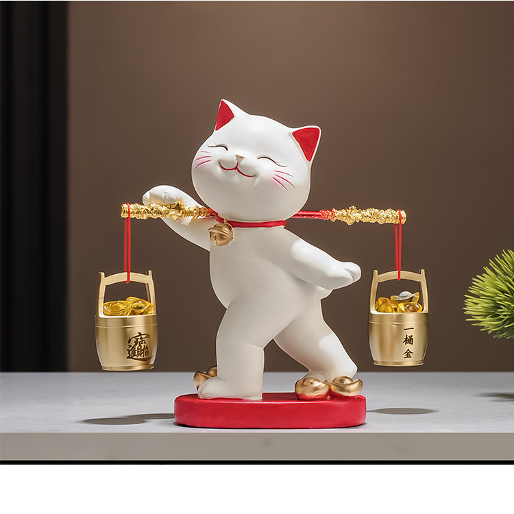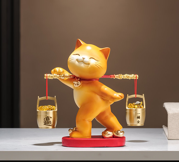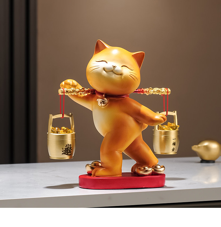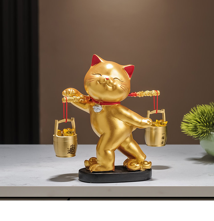 A Bucket of Gold Lucky Cat Figurine, Housewarming and Opening Gift, New Chinese-Style Living Room Tv Cabinet, Company Cashier Counter Decoration