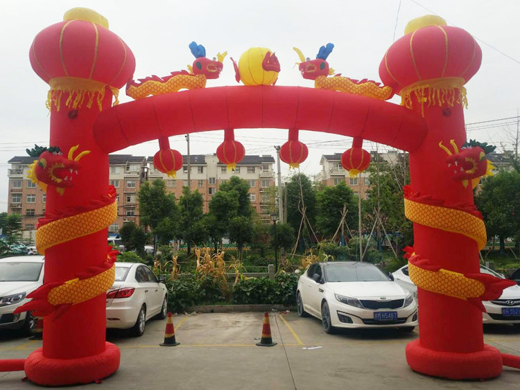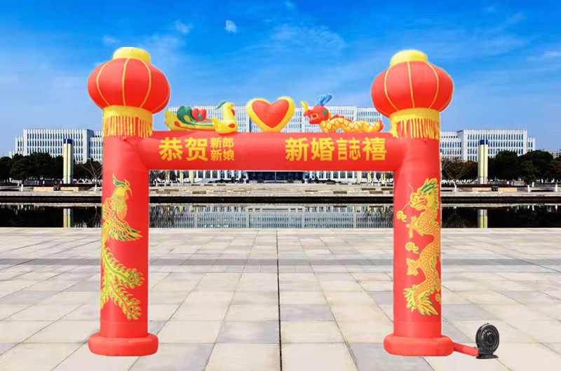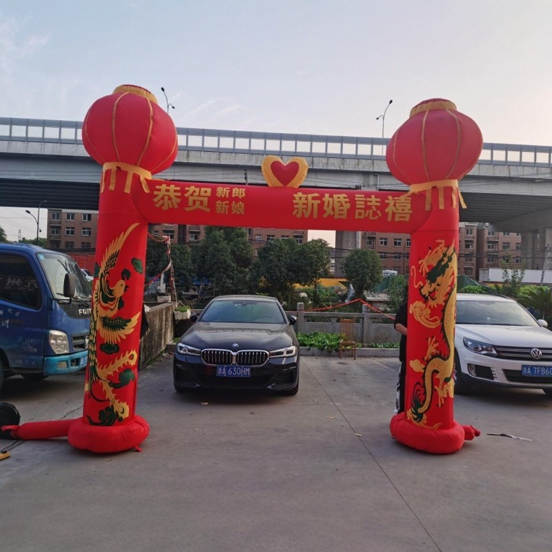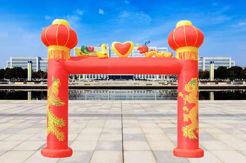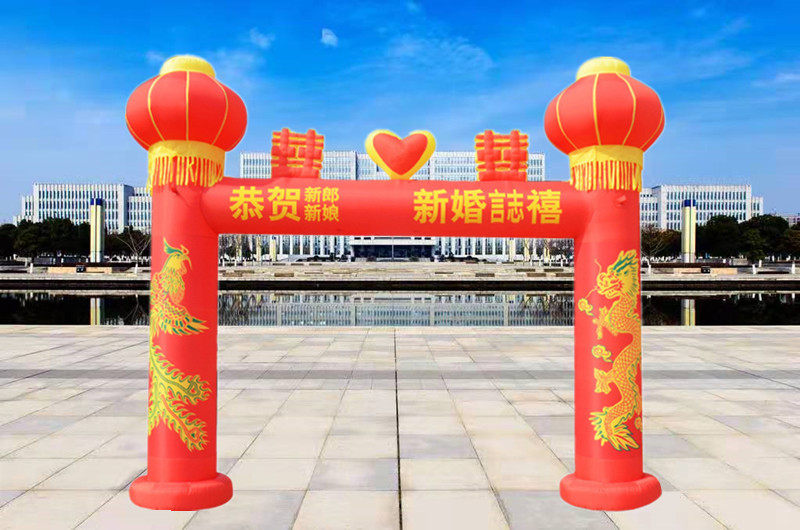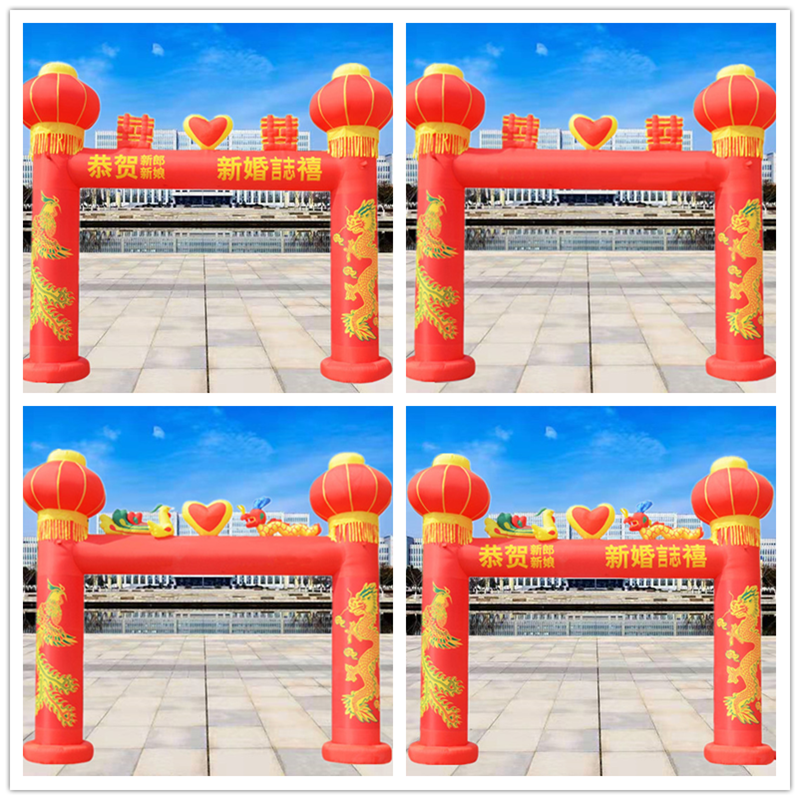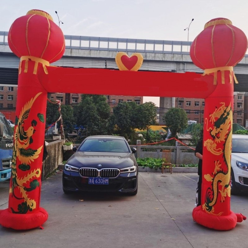 Wedding arch inflatable dragon and phoenix celebration inflatable rainbow door lantern column chinese knot wedding opening double happiness dragon and phoenix