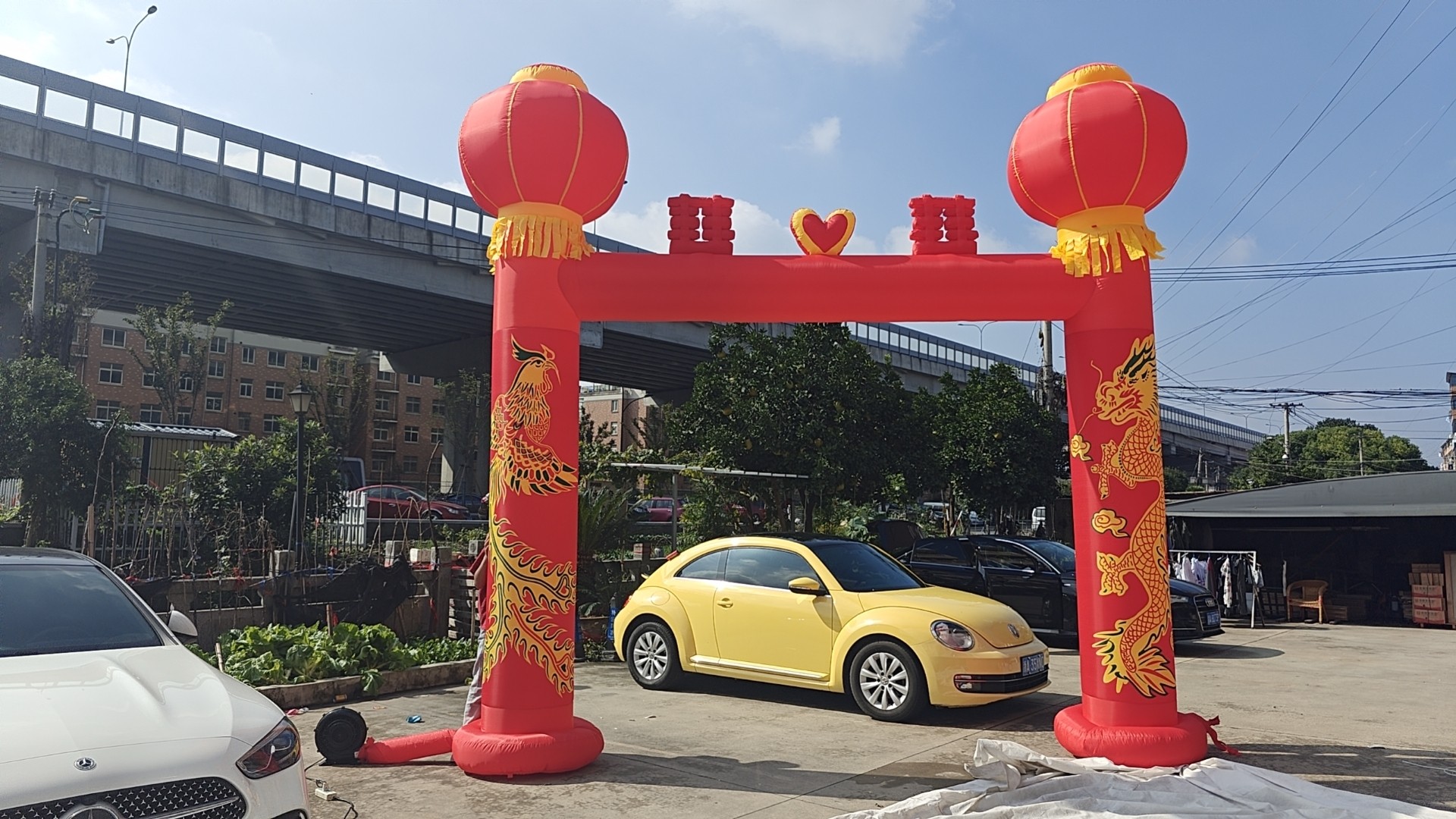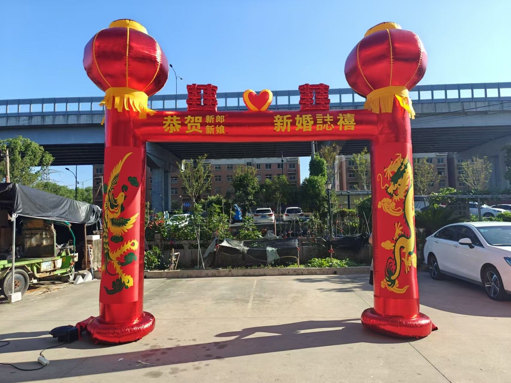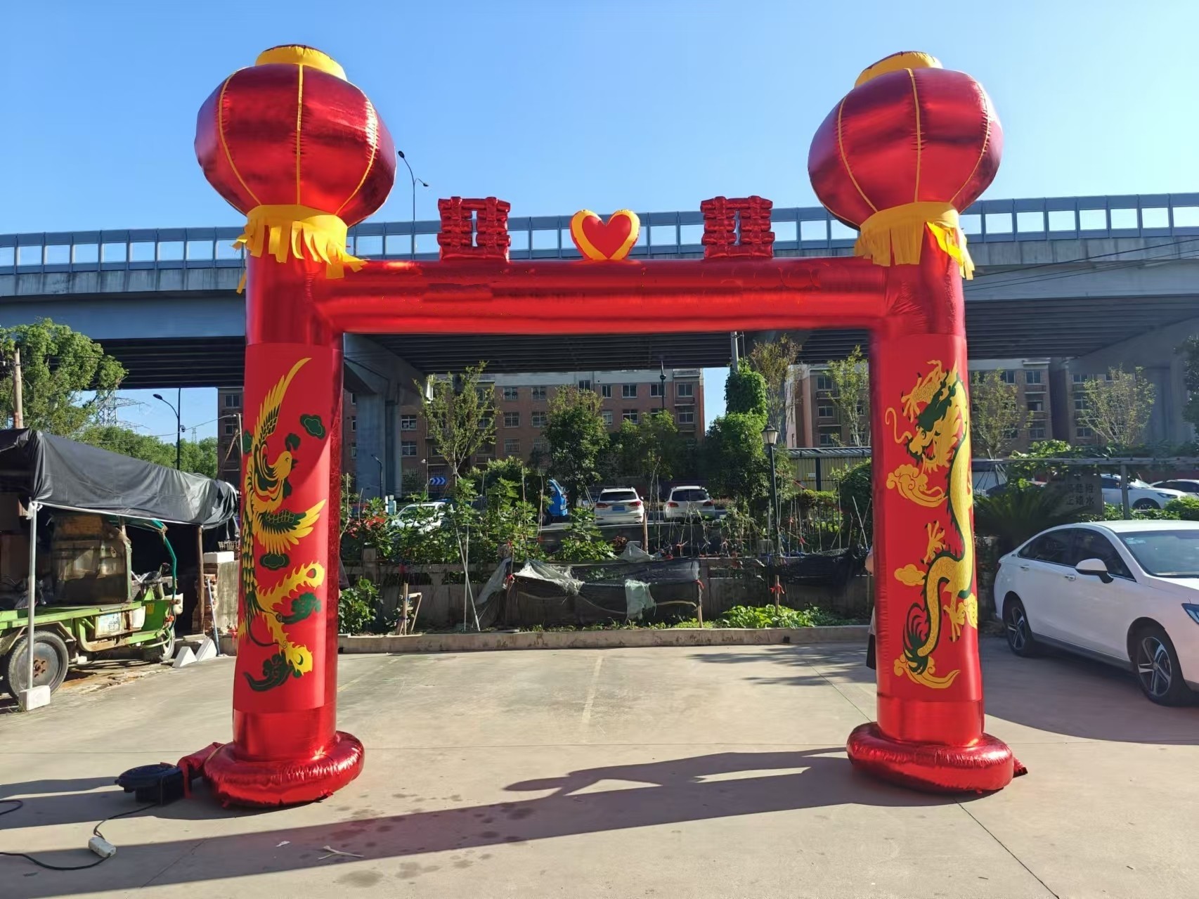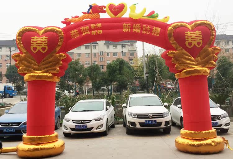 Wedding arch inflatable dragon and phoenix celebration inflatable rainbow door lantern column chinese knot wedding opening double happiness dragon and phoenix