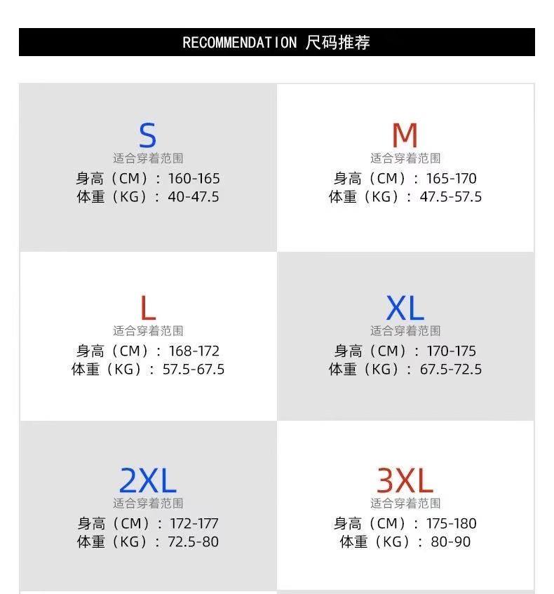 China (cm) 165 / 88-90 170 / 96-98 175 / 108-110 180 / 118-122 185 / 126-130