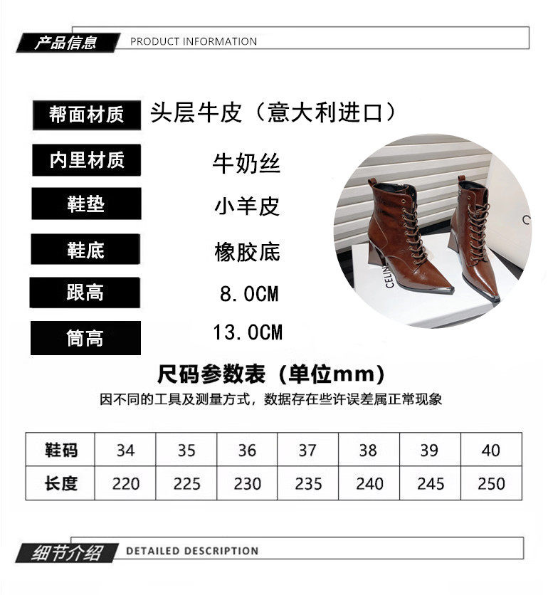 香港法式复古尖头高跟短靴女2025春秋时装靴保暖加绒粗跟及踝靴子
