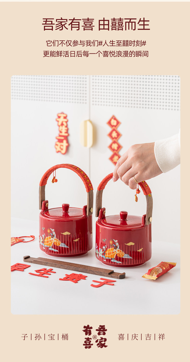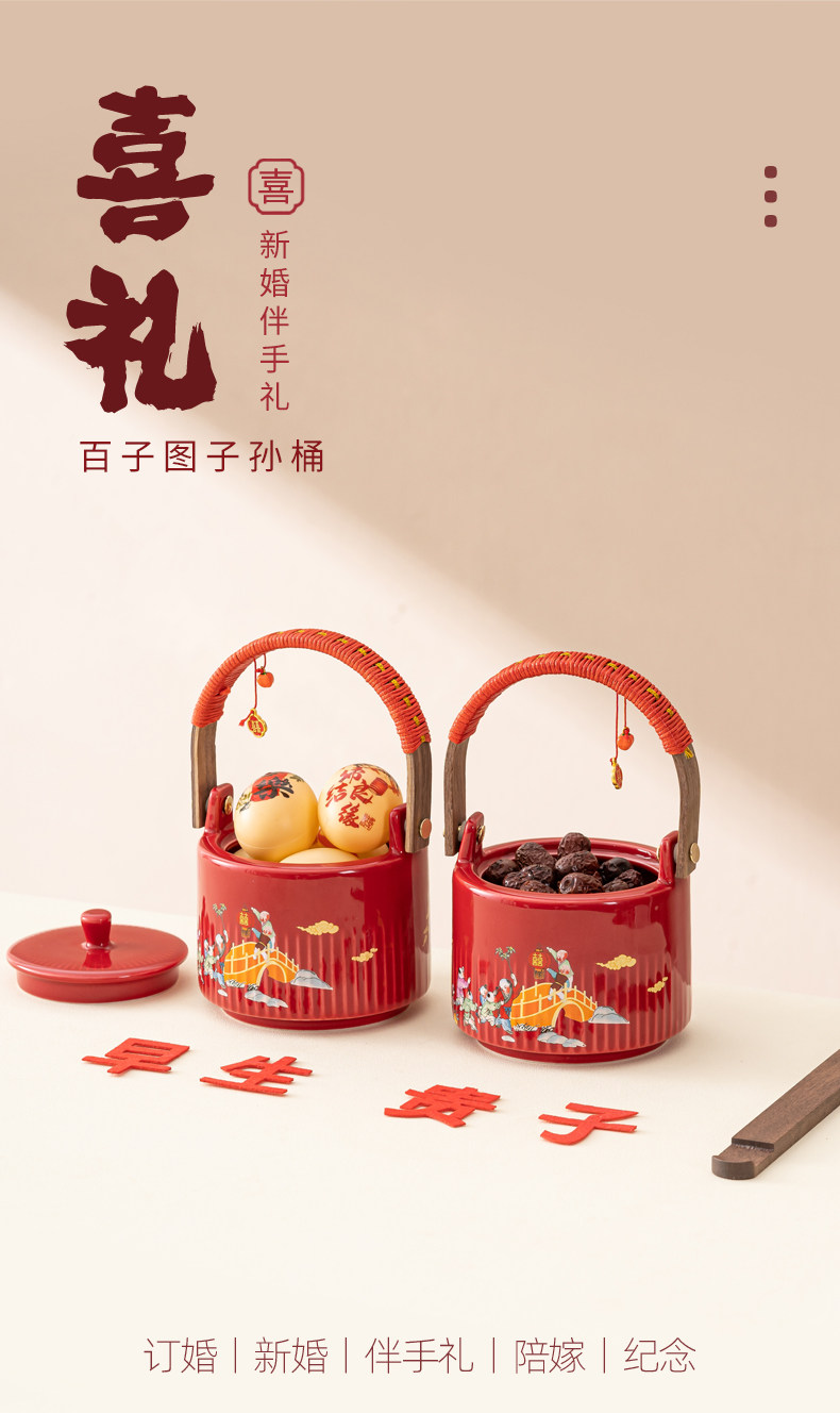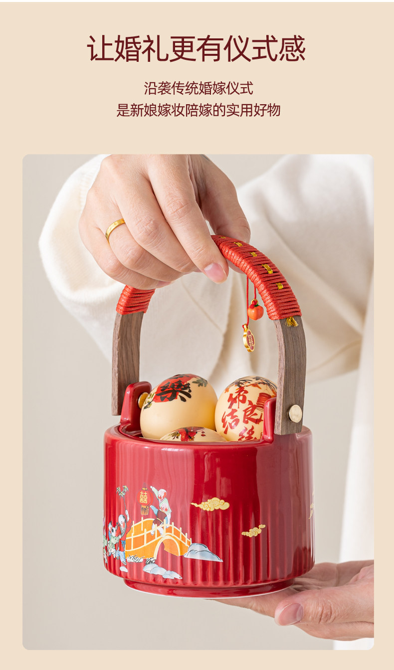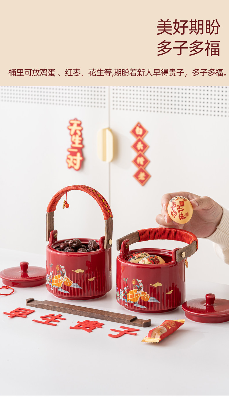 Пара красных свадебных кувшинов для приданого, декоративные элементы, подарочный набор.
